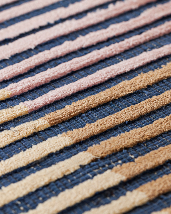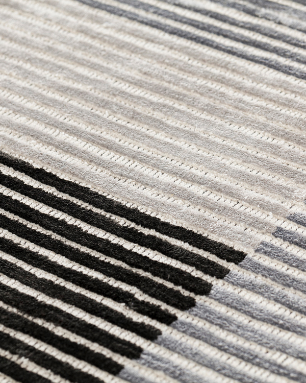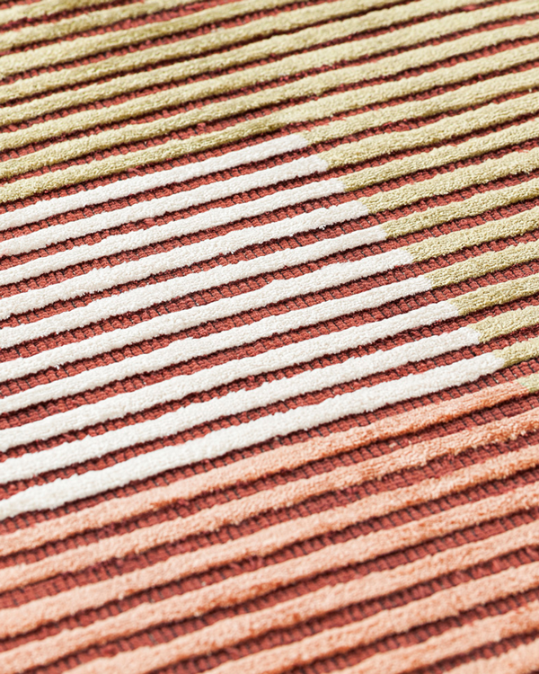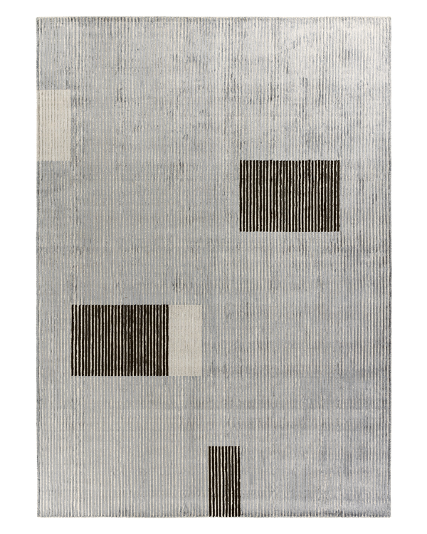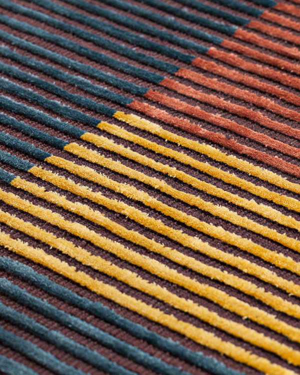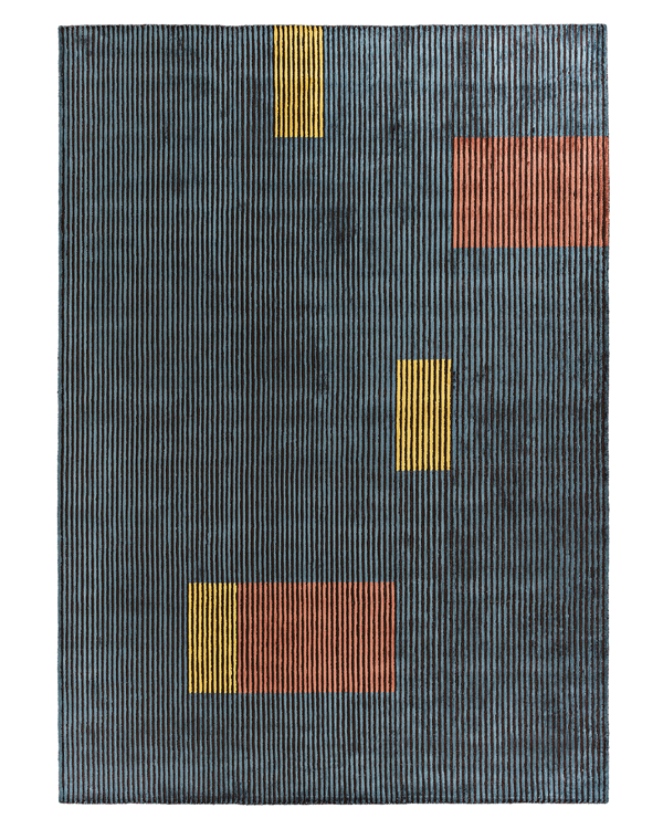 The structured design is embellished with colourful rectangles that break up a series of hand-carved vertical lines in relief. Because of their unique colour palette and ability to be combined, Lines carpets allow for the creation of unique carpets. These rugs are made in India with viscose and are woven by hand. They have a pleasant, velvety texture. The collection offers rugs in a range of colours and sizes, allowing for customization to meet specific requirements and tastes.
