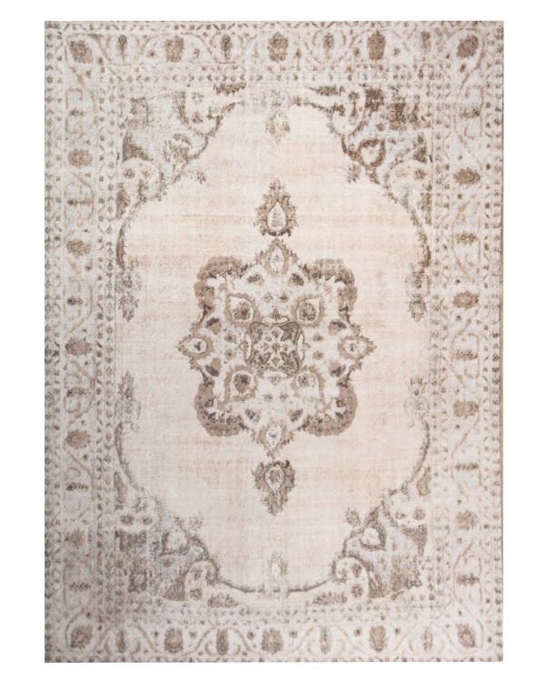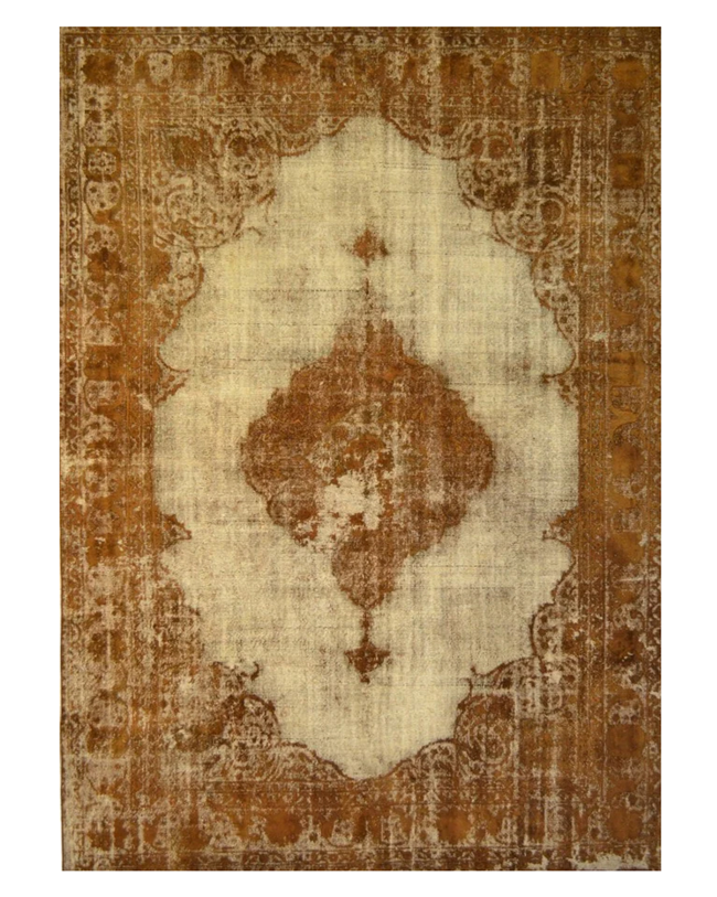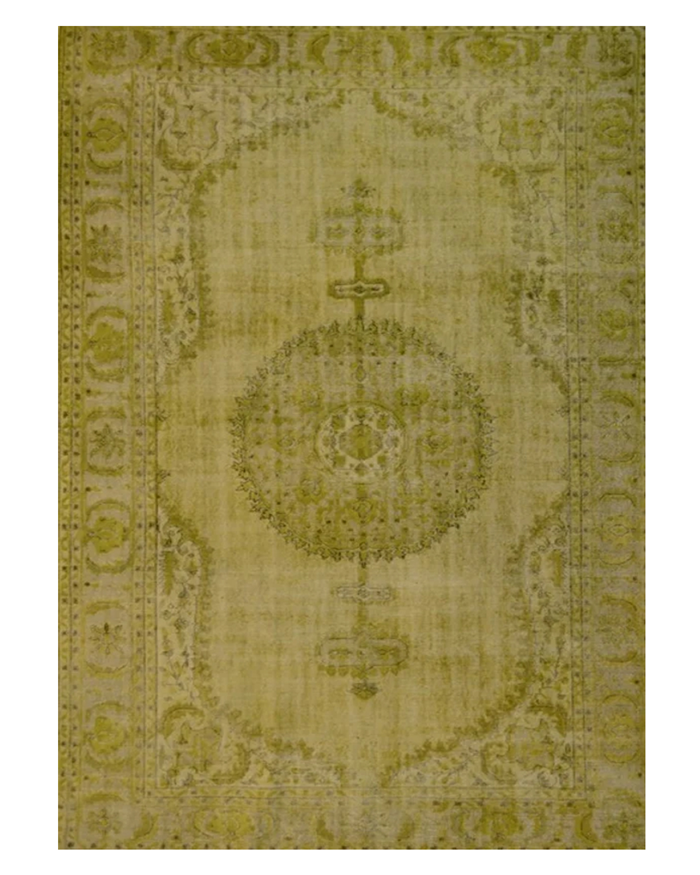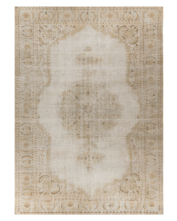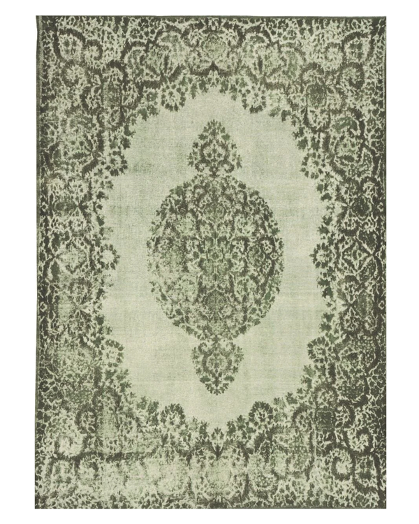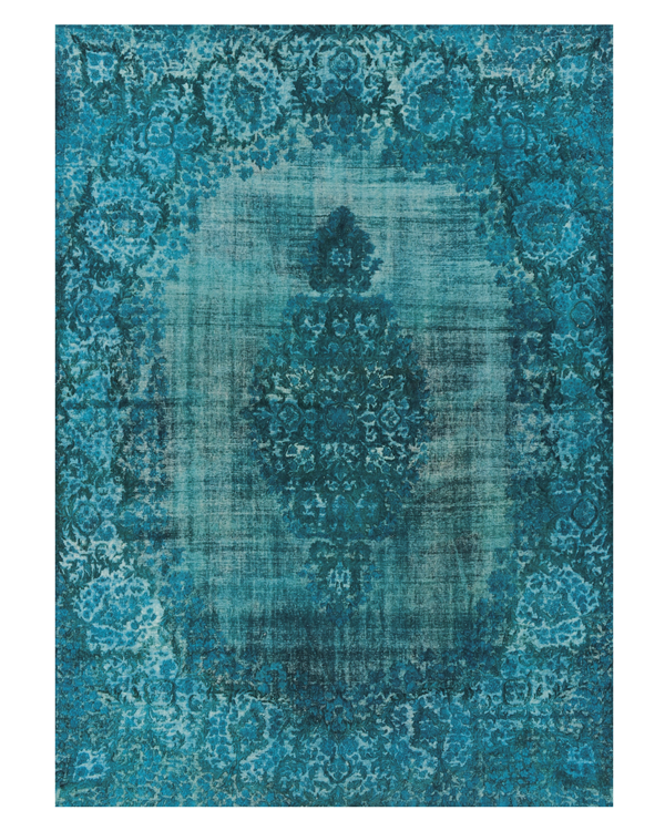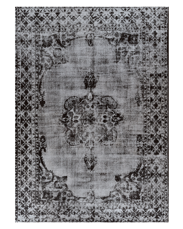 The VINTAGE collection features antique hand-knotted carpets whose classic patterns have been transformed into contemporary pieces. These carpets are given a distinctive and original look by bleaching them first, then dying them in monochromatic hues. To create a worn-in but still very modern look, the hair is shaved entirely or in parts. The original design is still discernible in some models, but it is hardly noticeable in others. The "Vintage 3D" models' relief motifs are hand-carved, giving the finished product a distinct three-dimensional appearance. Every carpet in the Vintage collection is special, priceless, and one-of-a-kind.