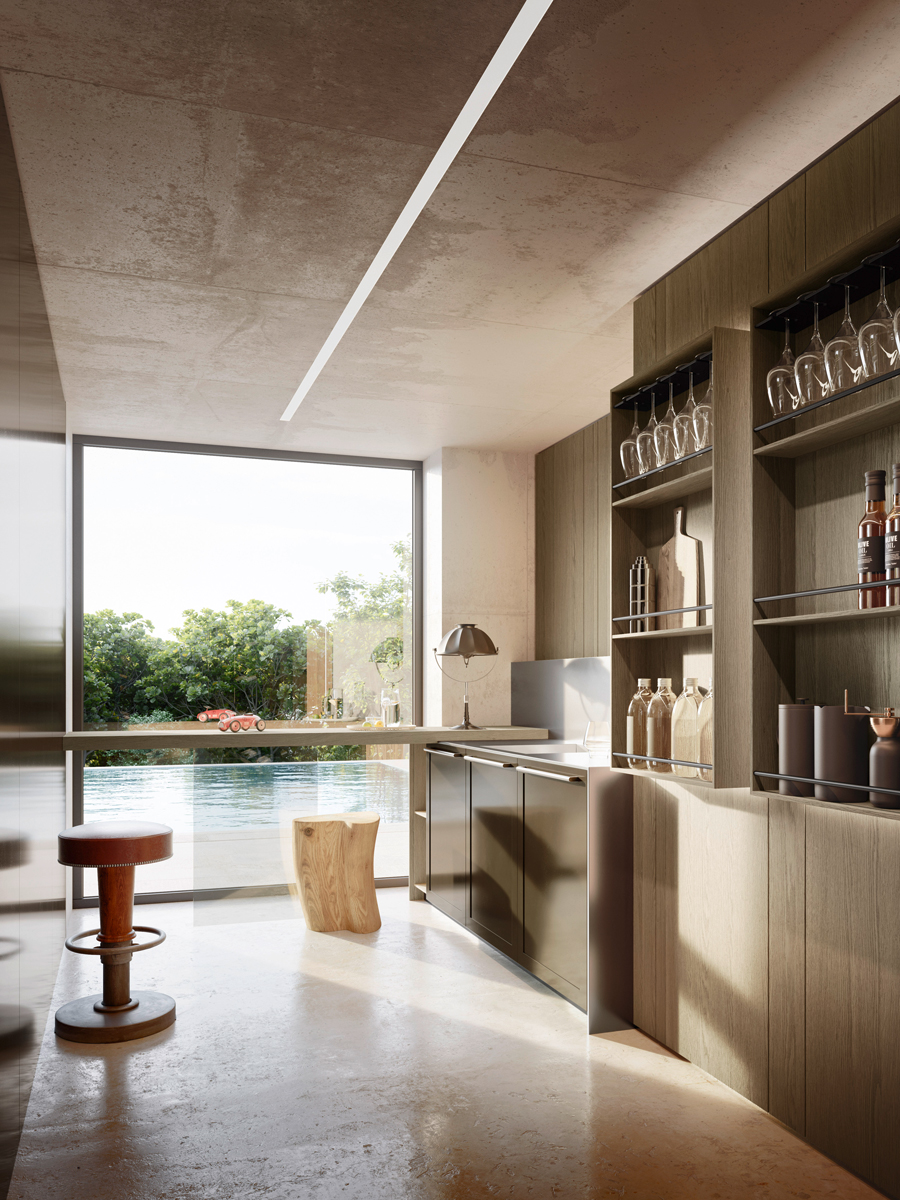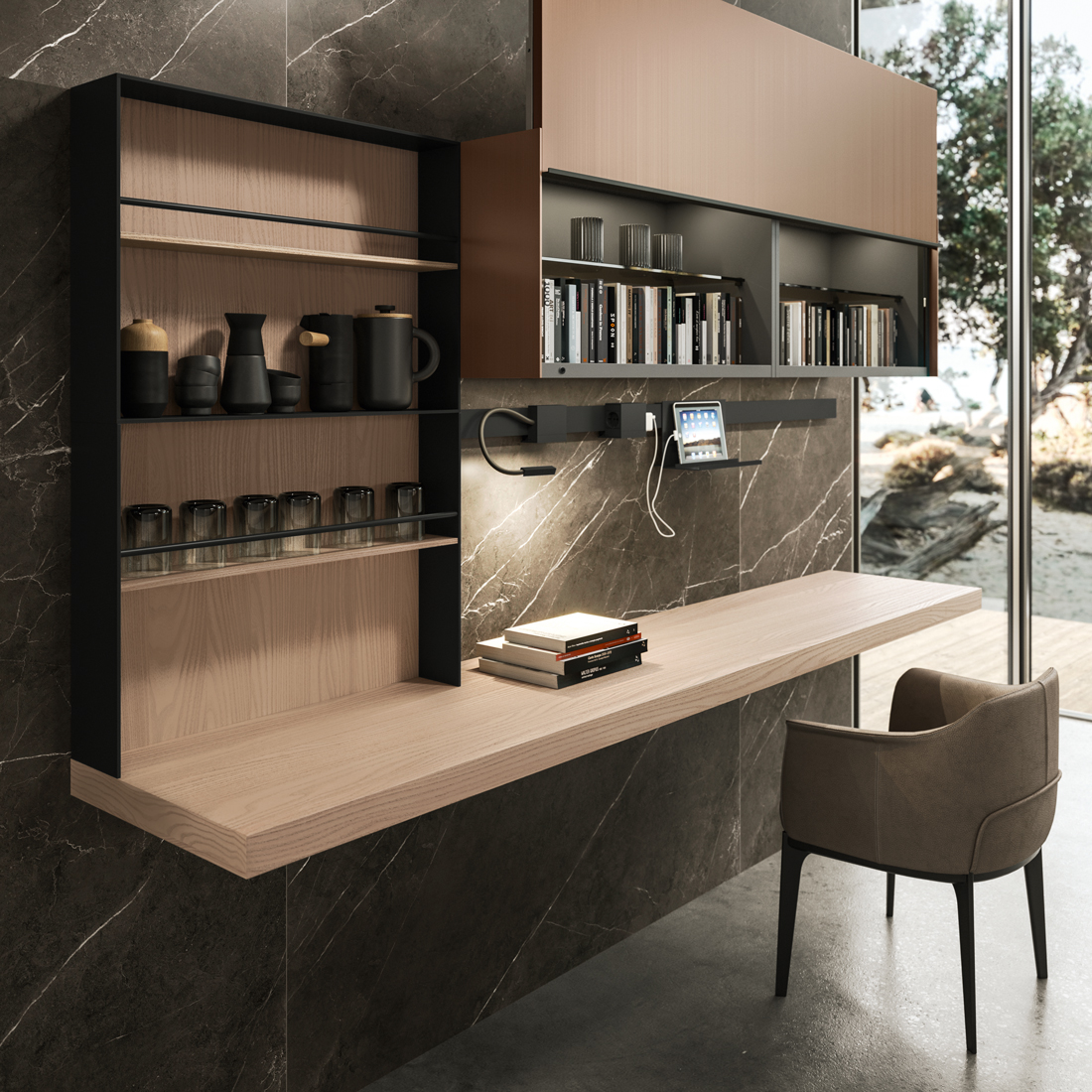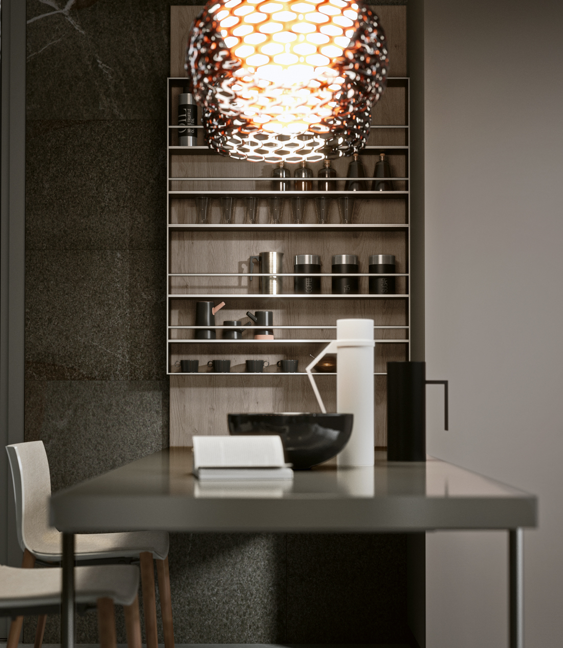 An elegant open-shelving solution that turns storage into a visual statement. Featuring perimeter LED backlighting, the units cast a soft glow that accentuates displayed items, merging practicality with ambient lighting to elevate the surrounding space.