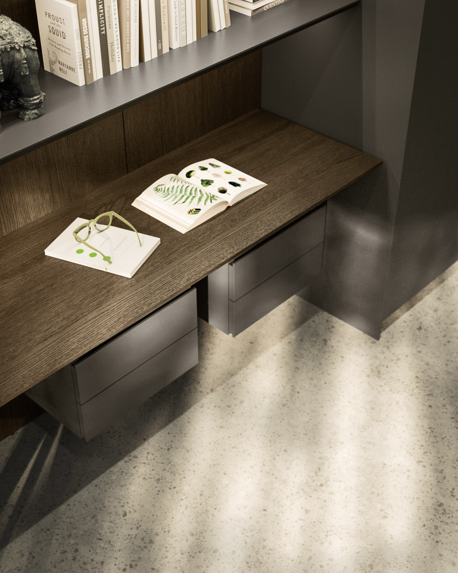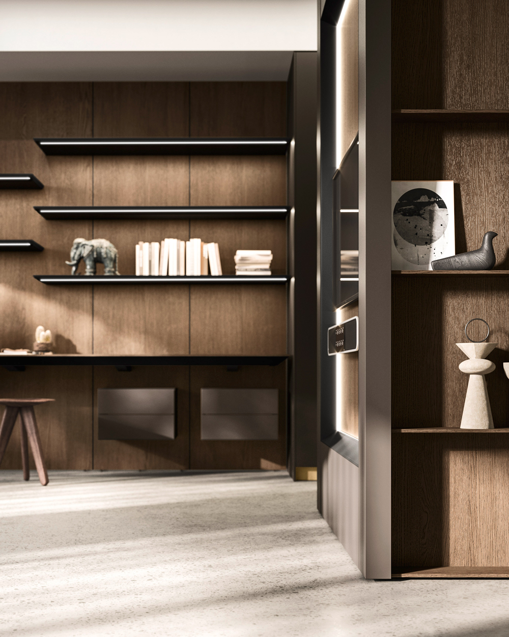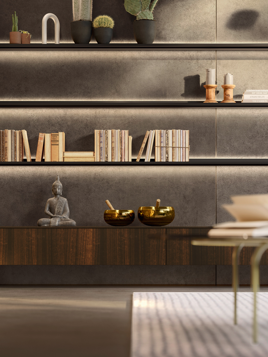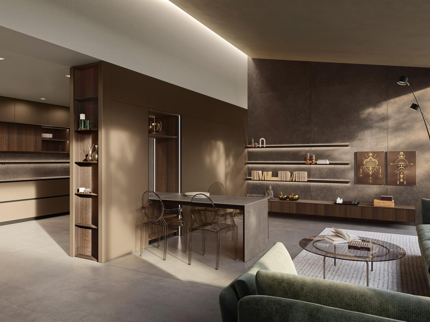 Arrital’s Feeling Home shelves and tops offer versatile surface solutions that blend practicality with sleek design. Whether used for display or function, their clean lines and premium finishes create a seamless transition between kitchen and living areas, enhancing the home with understated elegance and coherence.