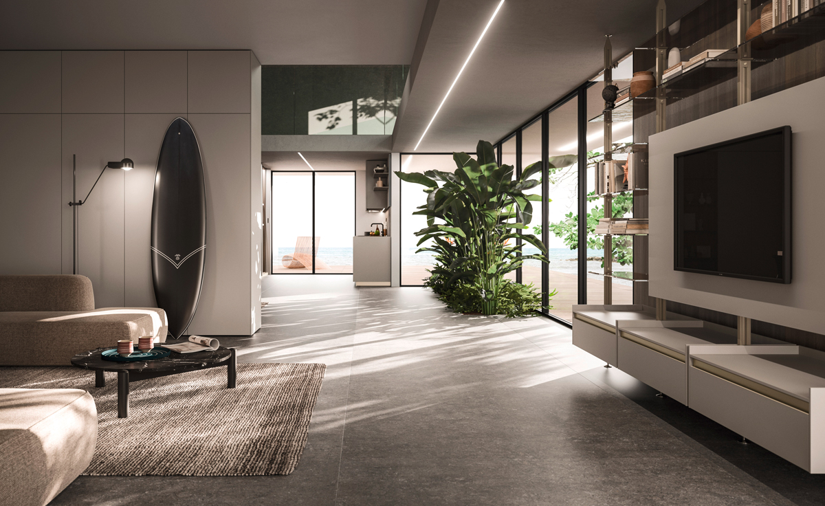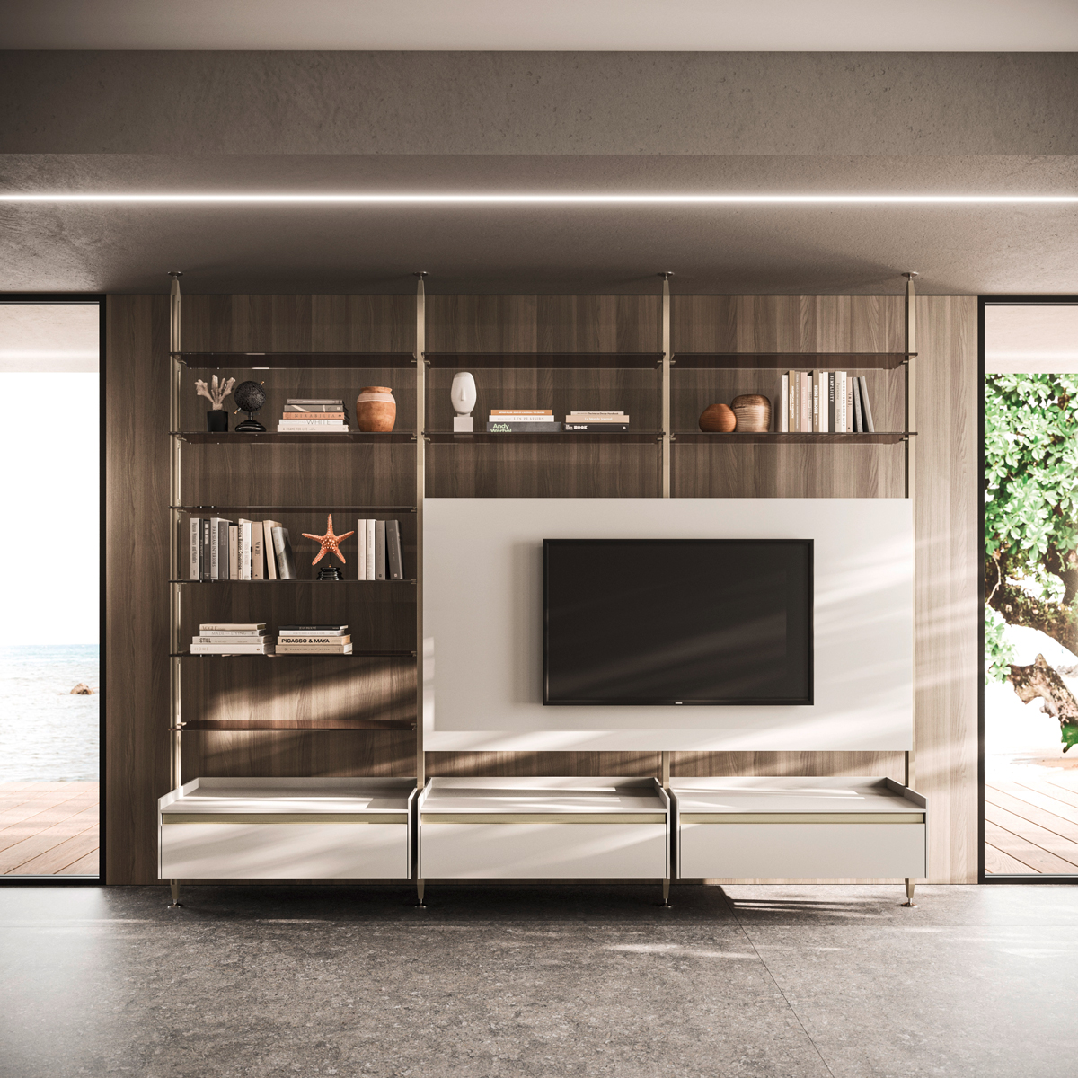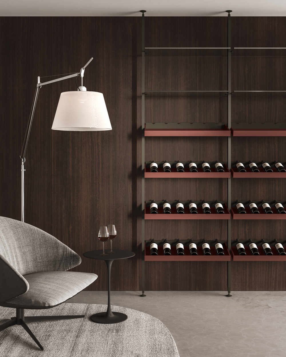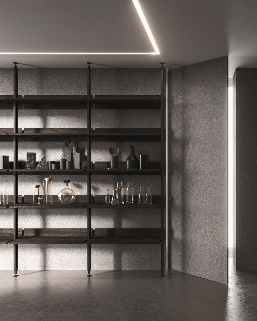 Vertical is a modular shelving system that redefines spatial division with elegance and versatility. Its minimalist aluminium frame creates fluid transitions between kitchen and living spaces, integrating open storage with architectural intent. With various sizes, finishes, and adaptable layouts—from floor-to-ceiling to floor-to-wall—Vertical offers tailored design solutions that transform partitions into stylish focal points.
