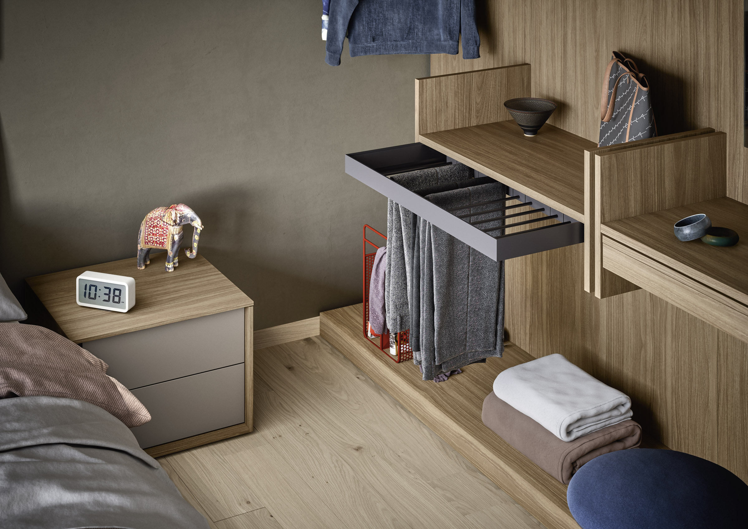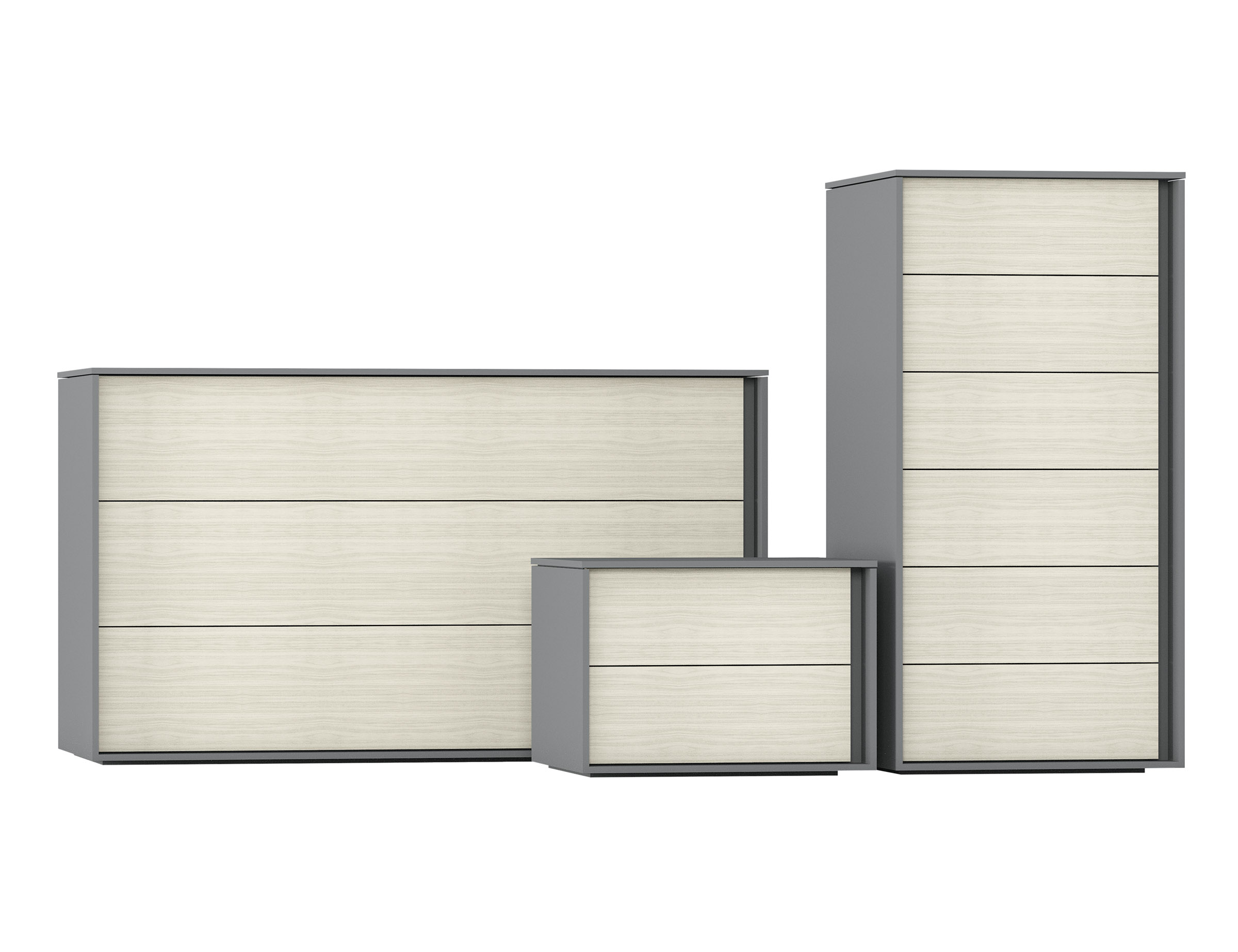 Discover the modern allure of Bilbao bedroom units, defined by their sleek, geometric style, and highlighted by clean lines and a convenient side profile for easy drawer access.