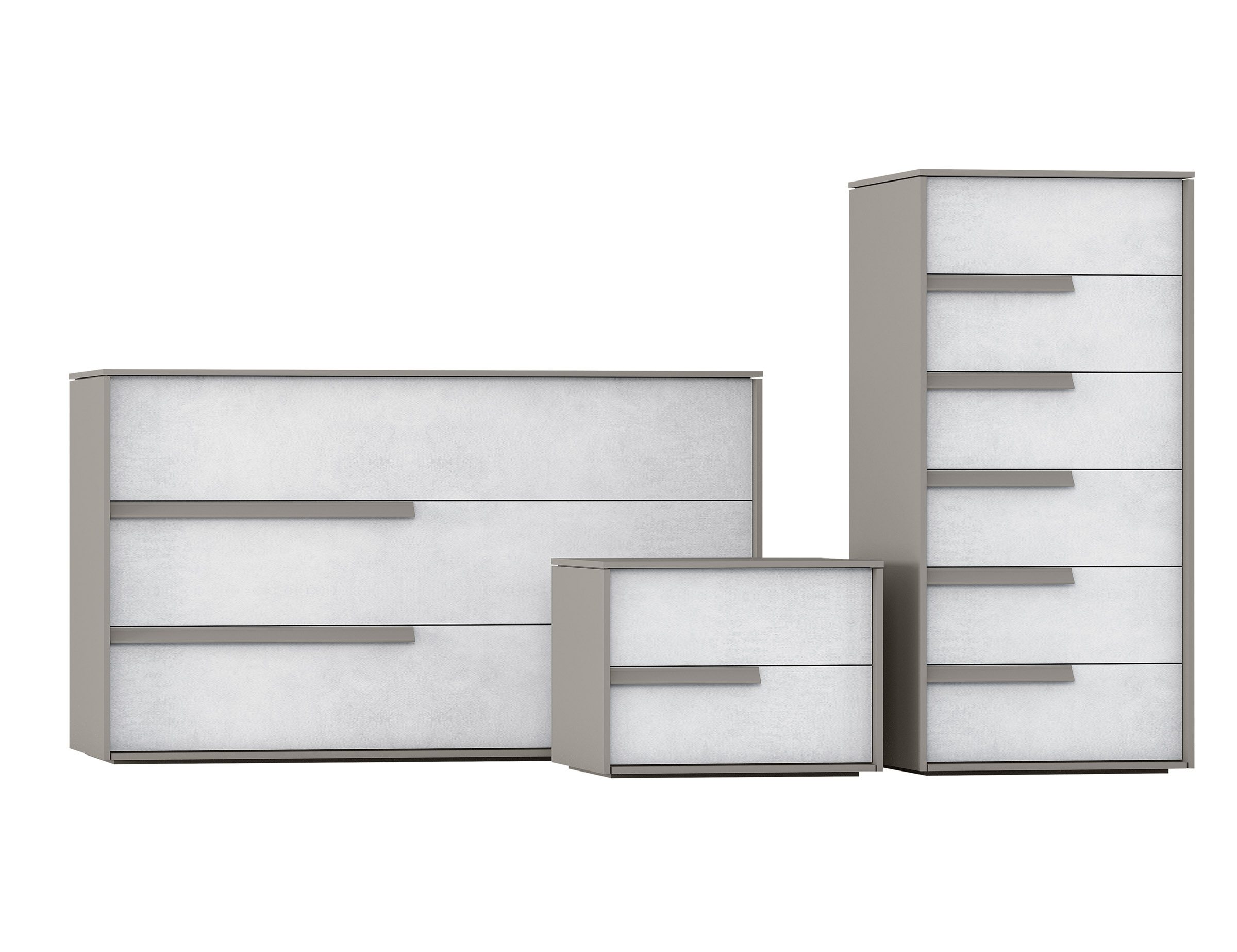A tallboy, chest of drawers, and bedside table are all part of this adaptable set. The top drawer has a push-to-open mechanism for convenience, and the other drawers have soft-close handles for smooth operation.