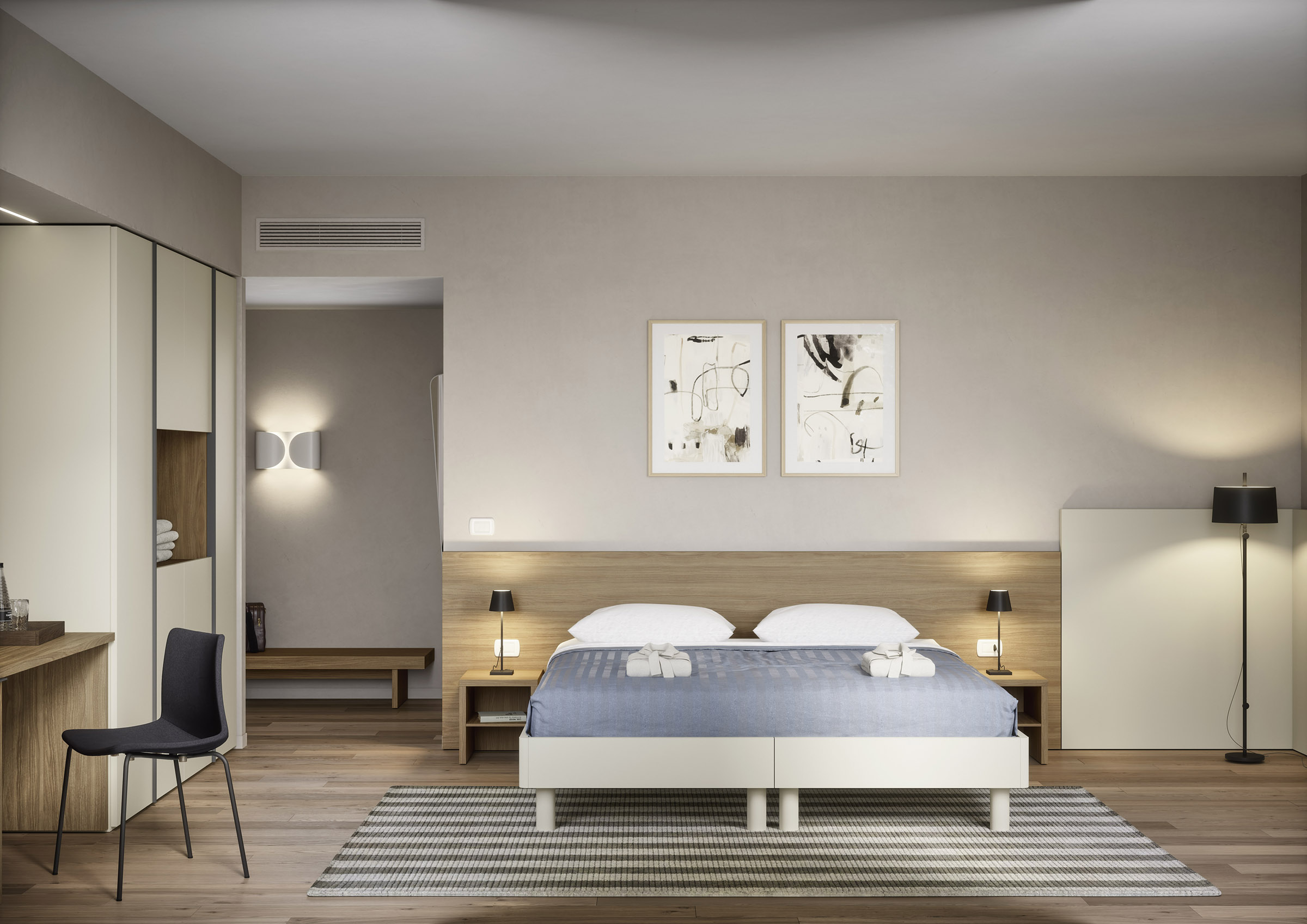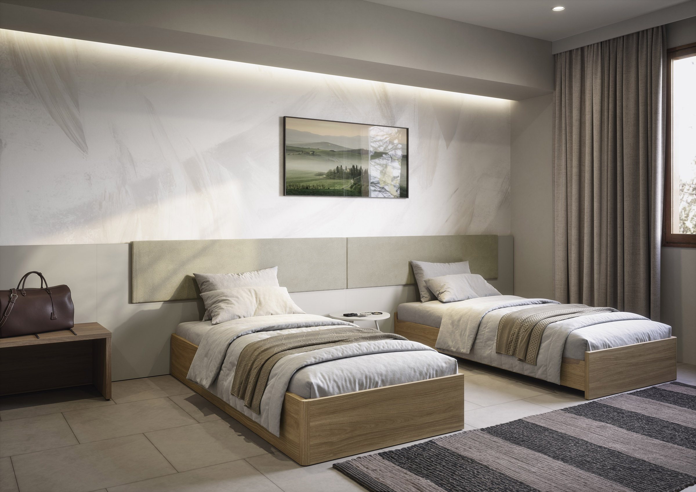 Creative customization of the spacious Cardiff headboard is encouraged, as it allows for combinations with different heights or finishes, bed surrounds, and even options for a padded version or storage base. The padded Singer headboard cover adds style, and the directional LED spotlight offers enhanced functionality. These additions also enhance the headboard's stylish appeal.