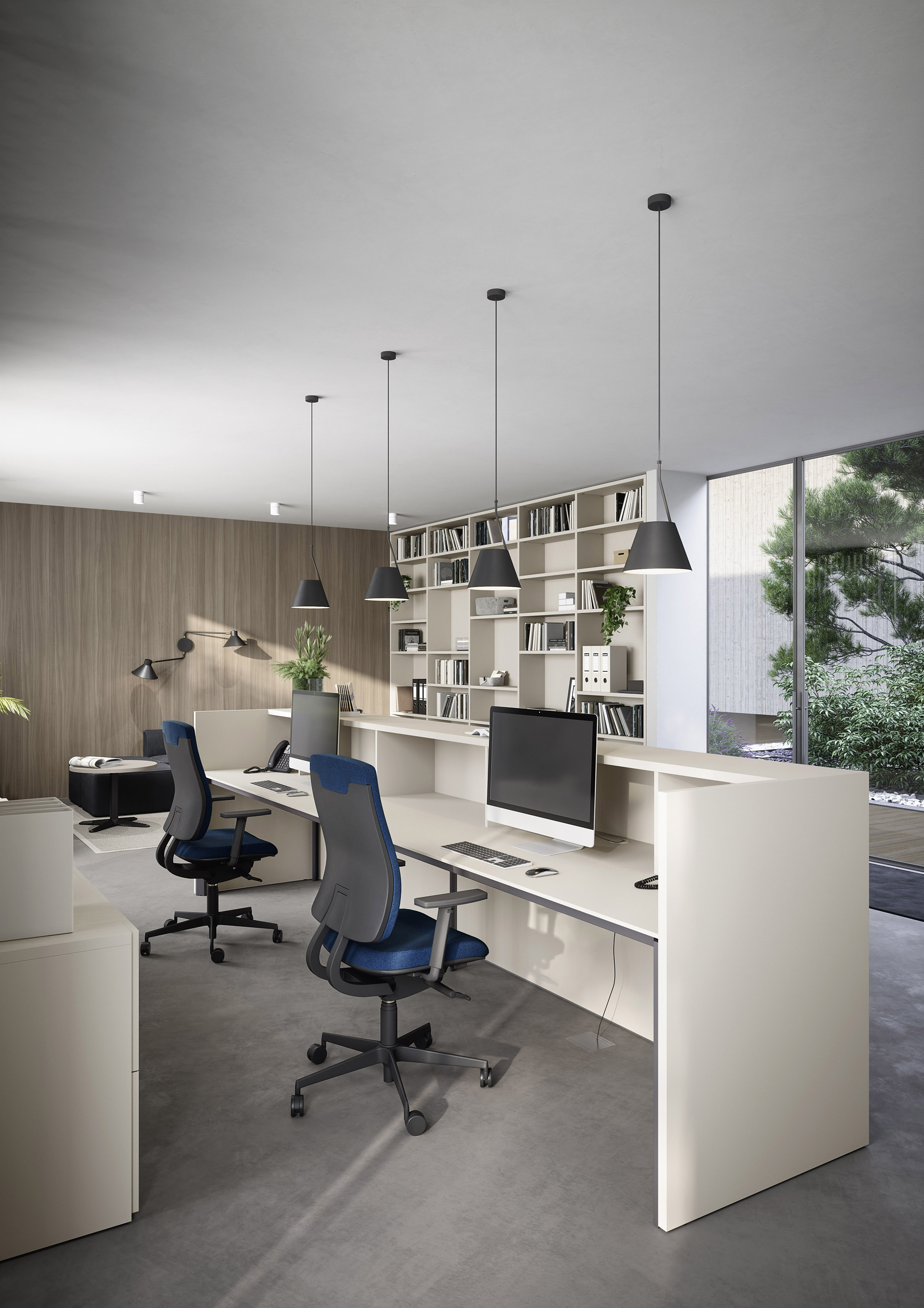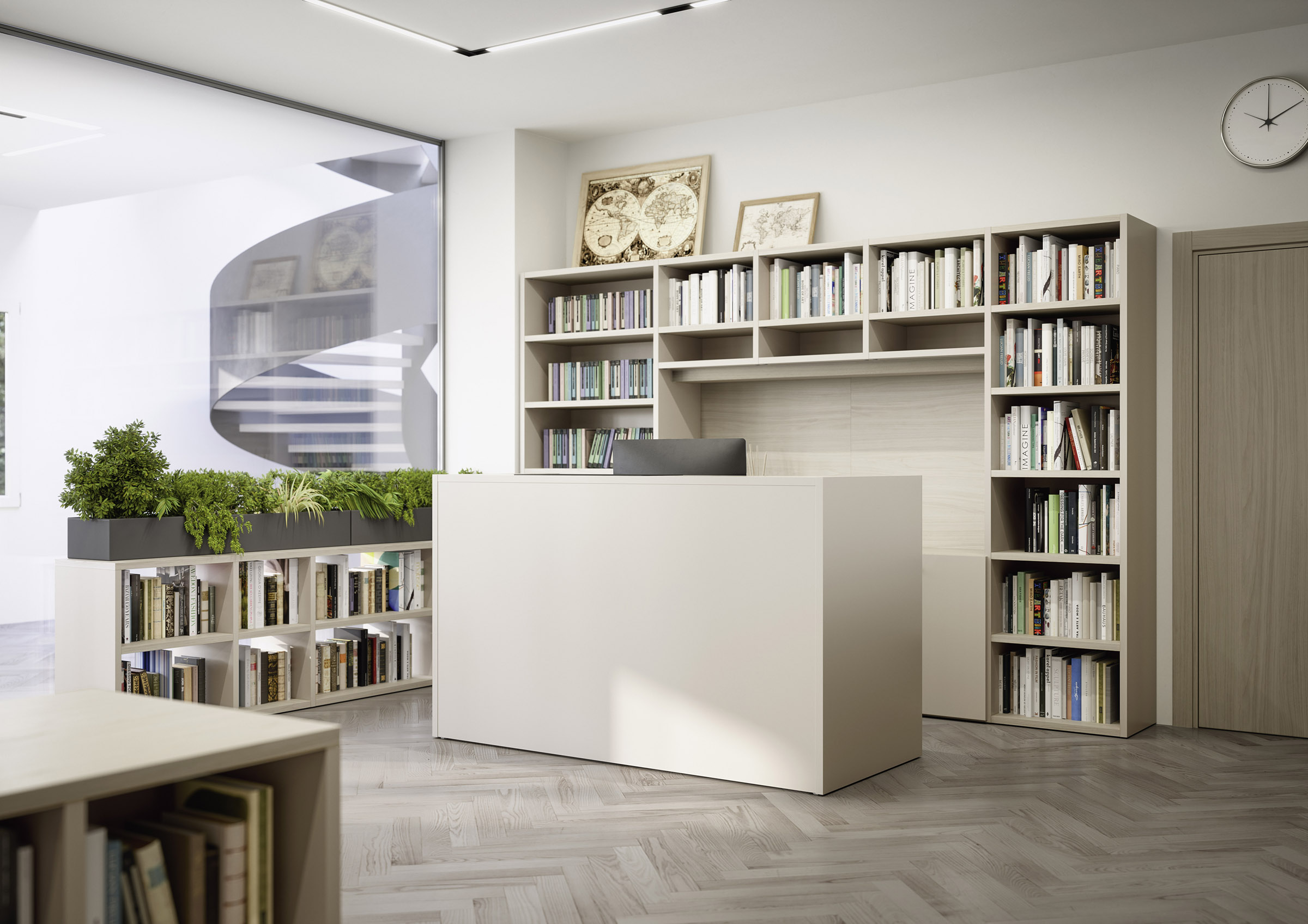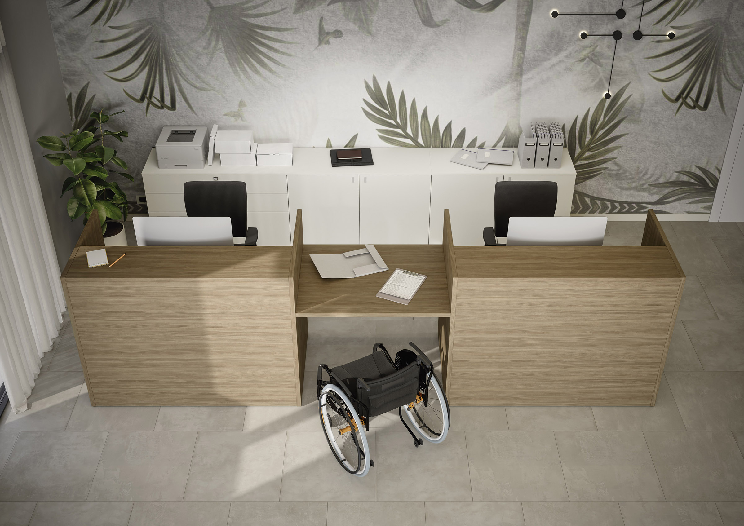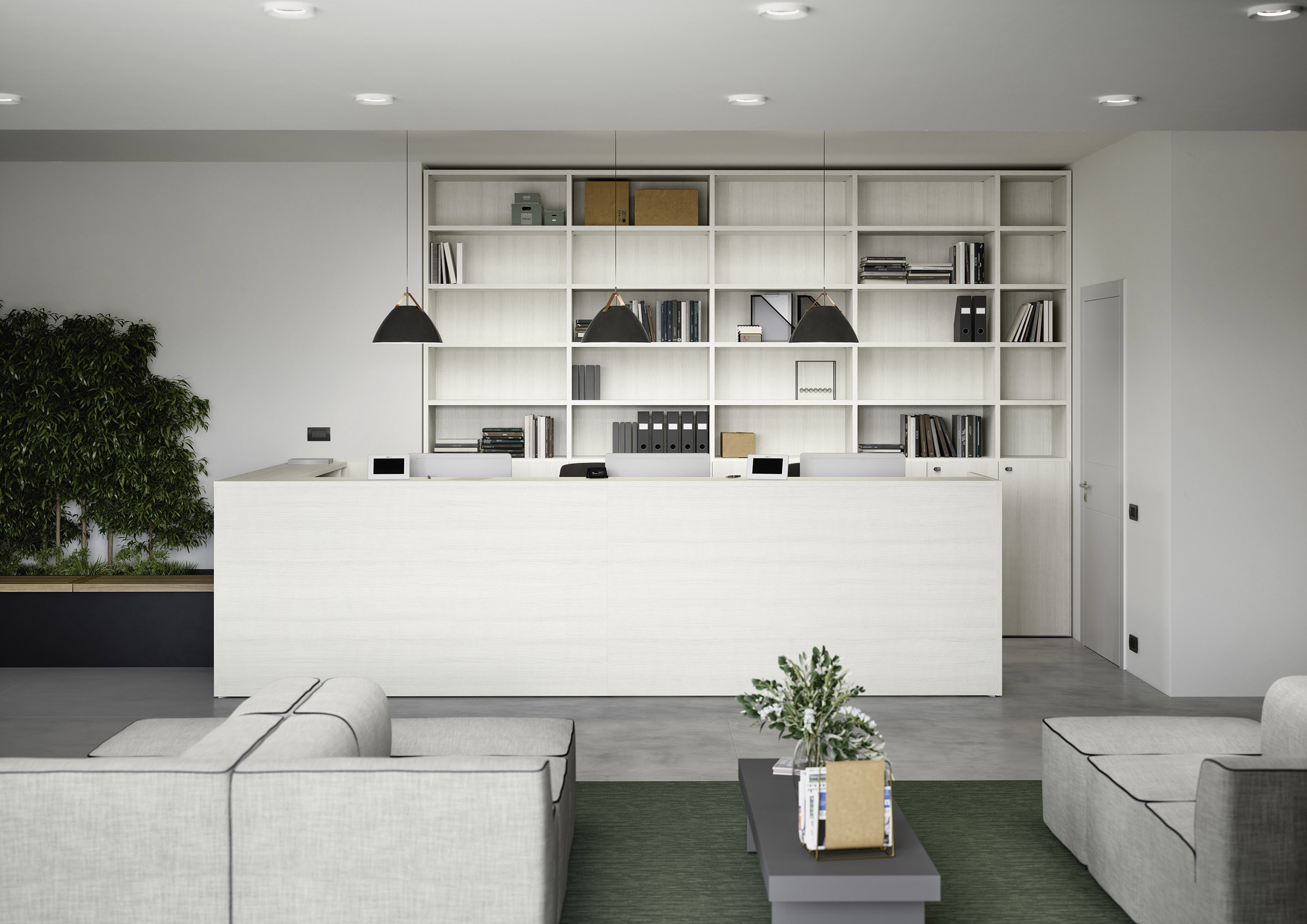 Reception desks, including corner models, are essential pieces of furniture for waiting rooms and reception areas, offering effective fit outs customized to your requirements. Customize the reception desk with a variety of available elements to match the size of the room and your interior design.Select from a variety of finishes in the catalogue to create reception areas that meet a range of needs in a seamless way. ideal for commercial spaces, contract markets, and the hospitality sector.