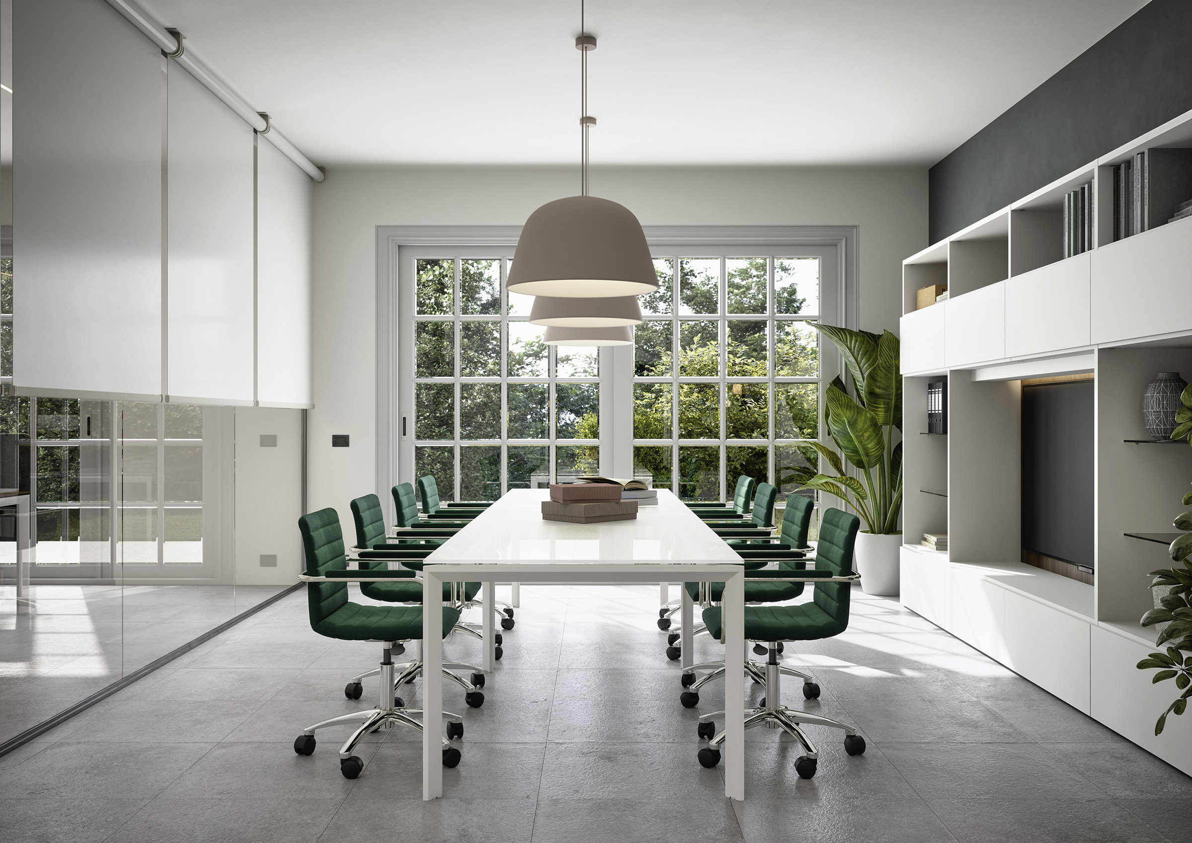 The Nice chair combines daily work comfort with stylish design, featuring padded upholstery highlighted by detailed stitching.