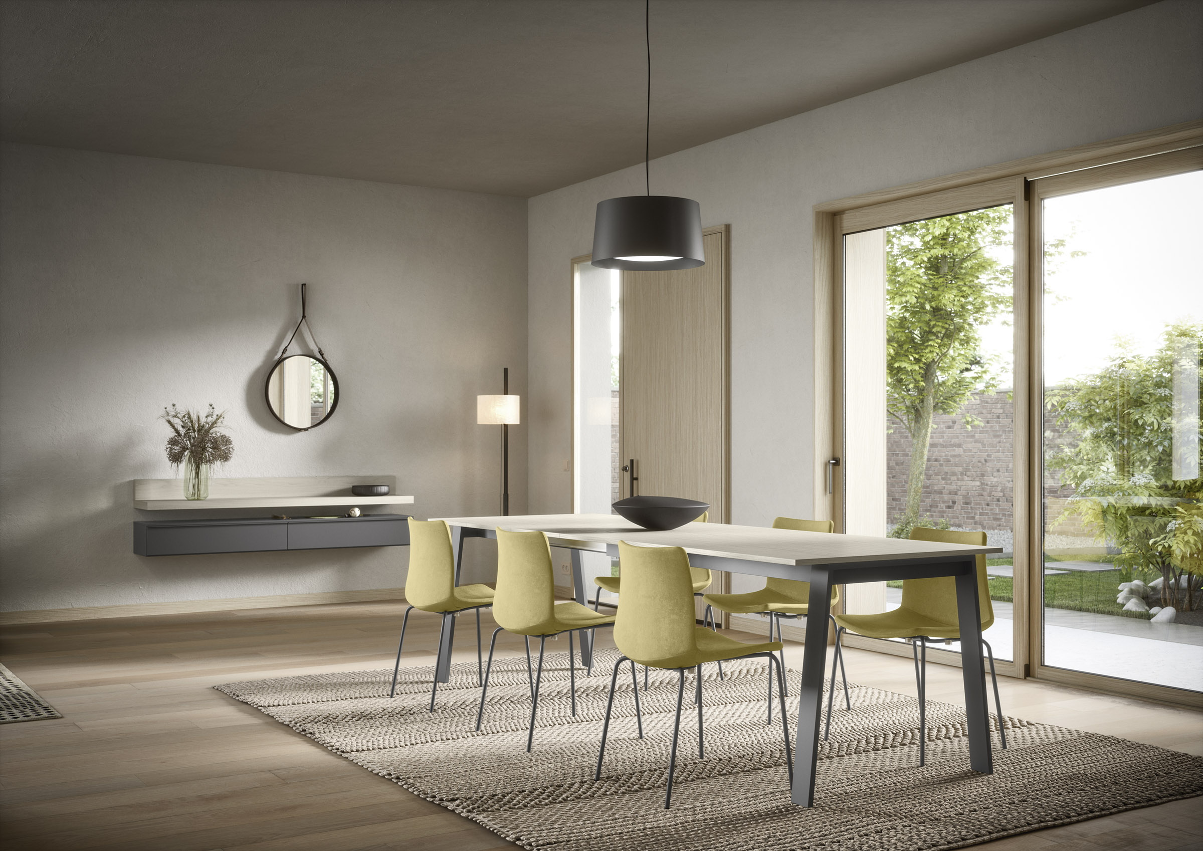 The modern silhouette of the Sneek chair make it a versatile addition to any interior design. It is made of lightweight yet durable techno-polymer, which ensures robustness without adding bulk. The Sneek chair also comes in an upholstered version for those looking for refinement and comfort. This version combines modern design with the comfort of soft, enveloping seating.