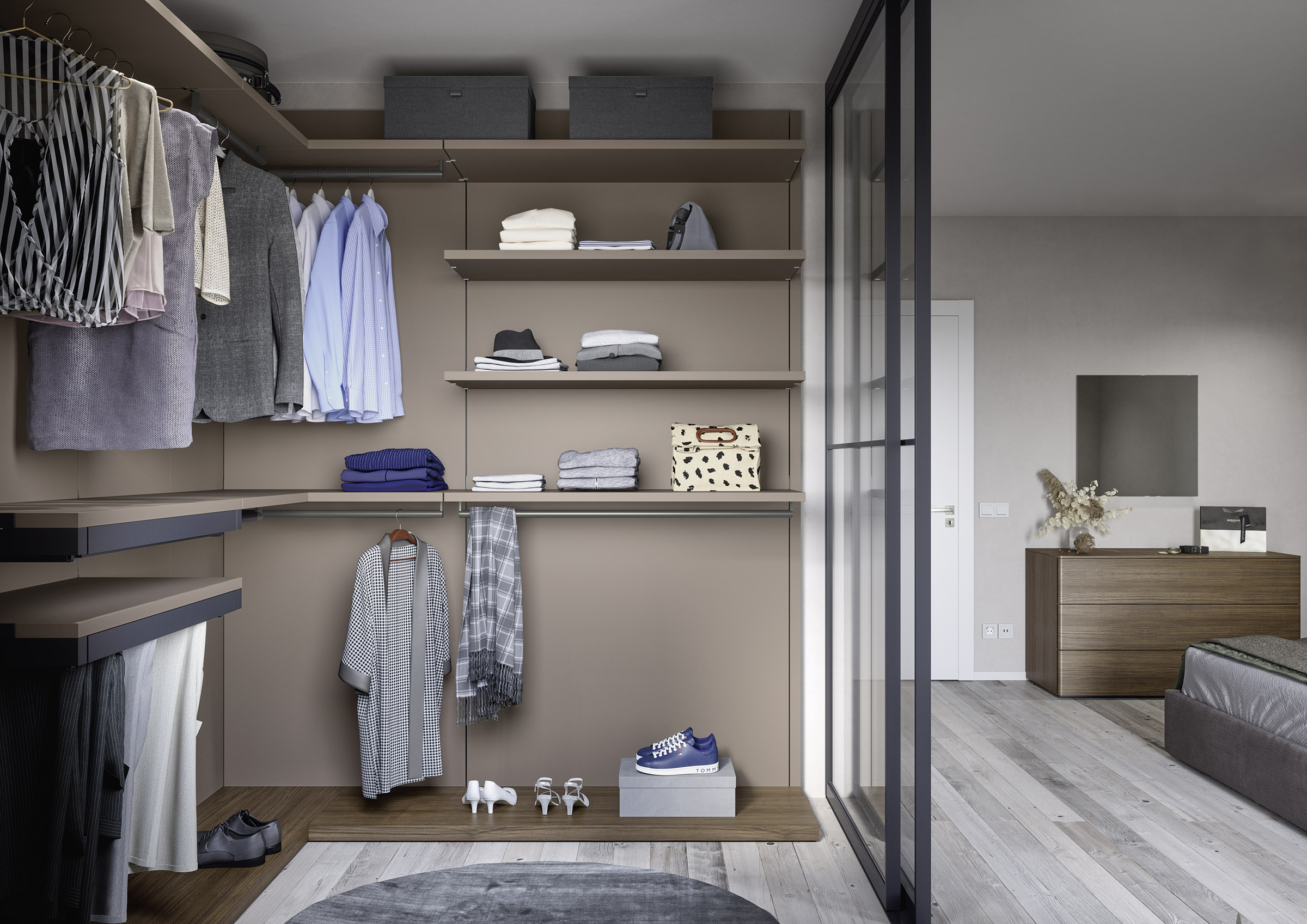 Trying to maximize and streamline your space? Discover the world of the walk-in closet with slotted rails, a clever option for anyone desiring a well-curated closet. This system is great for business use as well as home use because it is simple to assemble and comes in a range of finishes and colour options. Its adaptable and interchangeable design offers countless opportunities for personalization and improvement.