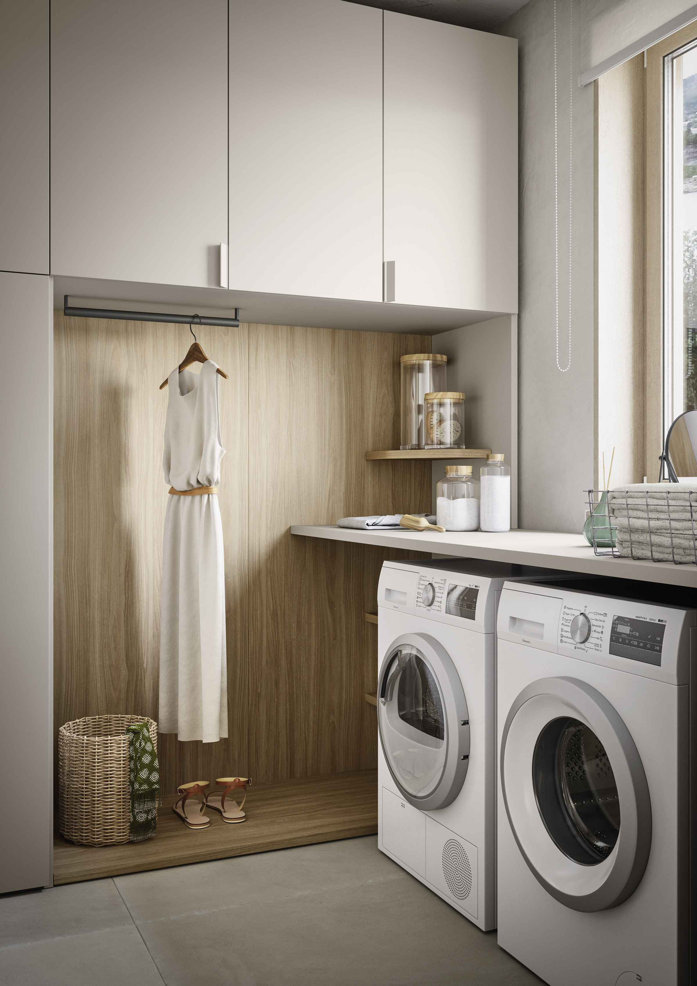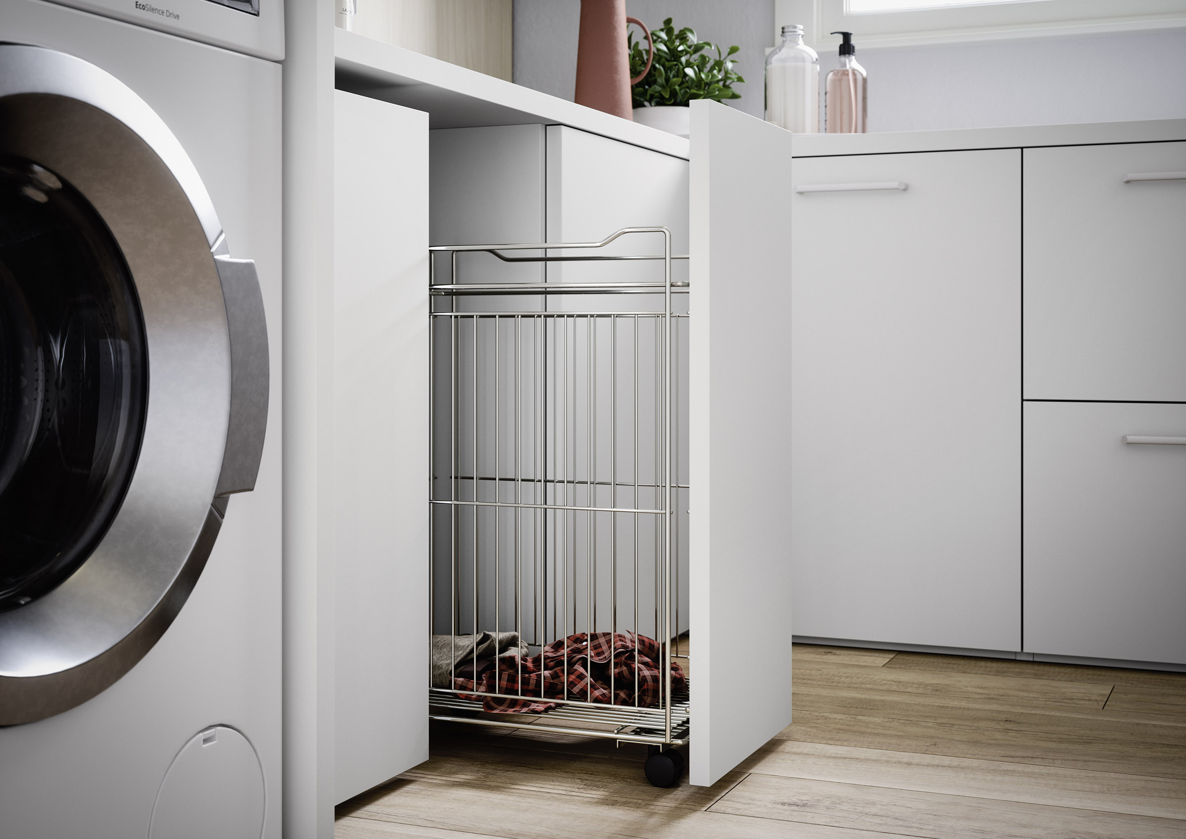 Uncover the ultimate space-saving organizer that promotes tidiness and order. Introducing the Service cupboard, designed to house cleaning supplies and appliances and elevate utility spaces. This adaptable cabinet's color and finish palette blends well with a variety of settings, and its superior materials and modular design provide optimal solutions. Select from a variety of door options—hinged, folding, or porthole—to flawlessly complete your design in areas where every inch counts. Add the finishing touch to your service cabinet with well-considered accessories like a laundry basket and a handy drop-down ironing board.