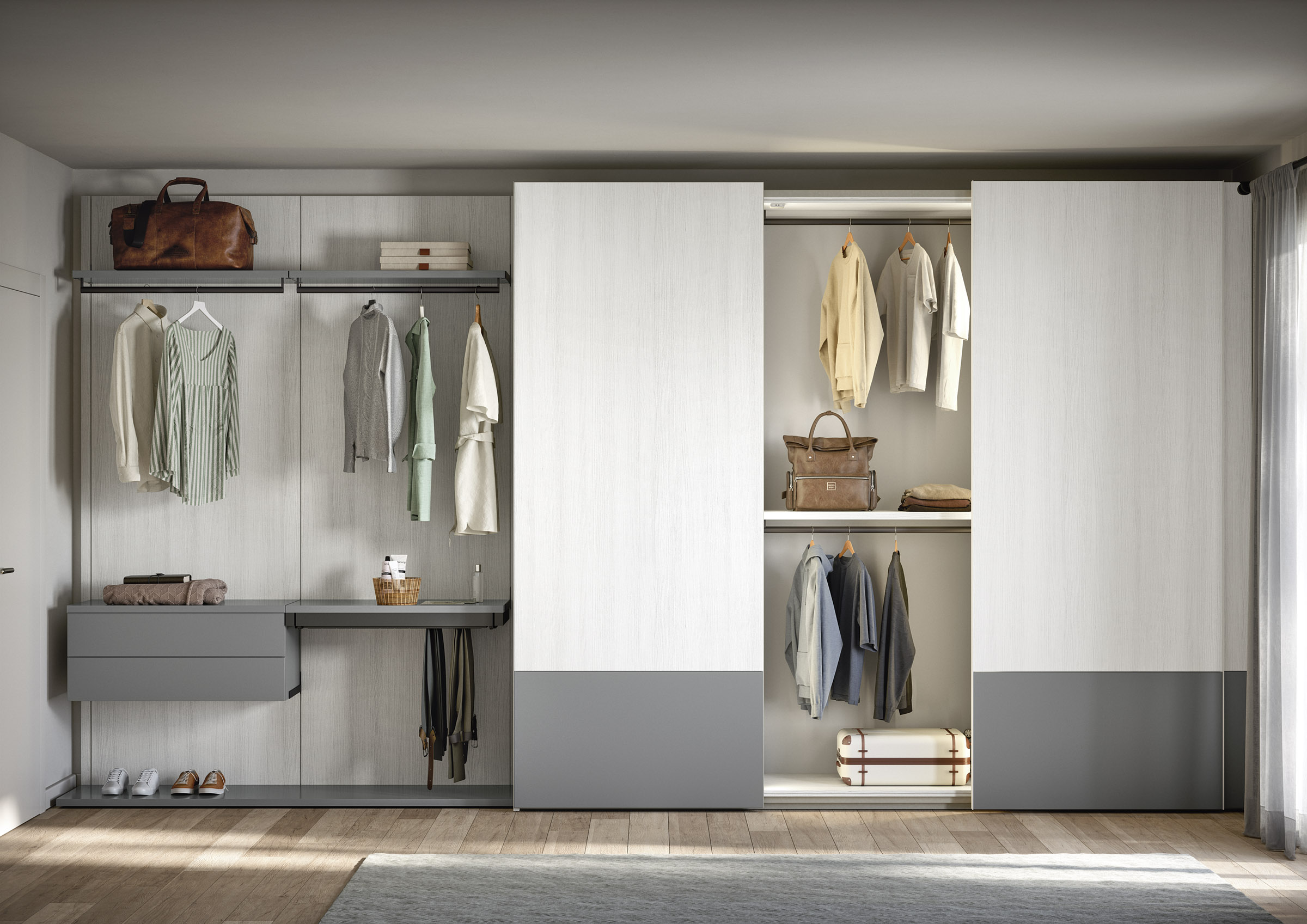 Find a clever, room-saving solution with lots of storage and a contemporary flair. For those looking for a minimalist wardrobe design, the sliding door stands out as a classy option. With the ability to integrate colors and finishes seamlessly, our large sliding doors provide a great deal of stylistic variety. This allows you to create a unique and customized wardrobe design. Using its modular and useful interior accessories, our wardrobes will help you to efficiently manage your everyday routine. Make the most of your available space and keep your surroundings neat and orderly by allocating specific areas for all of your needs!