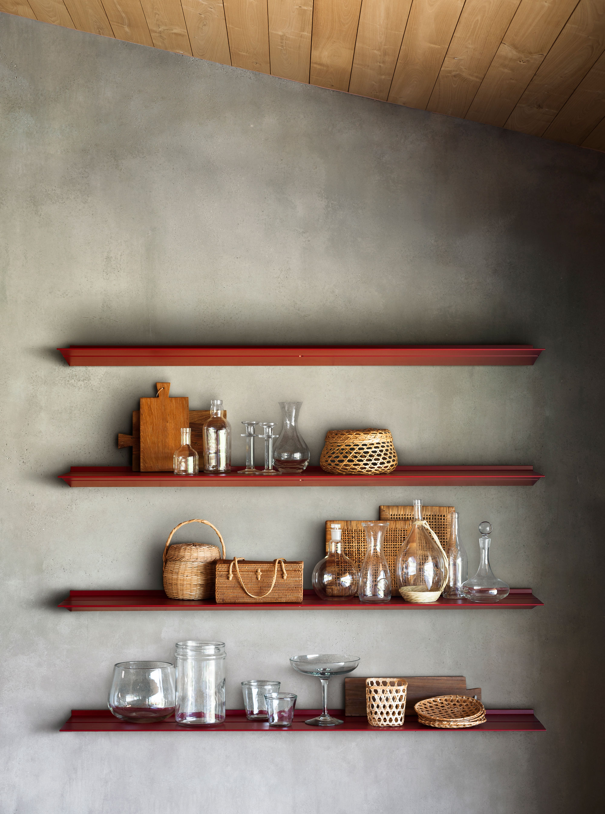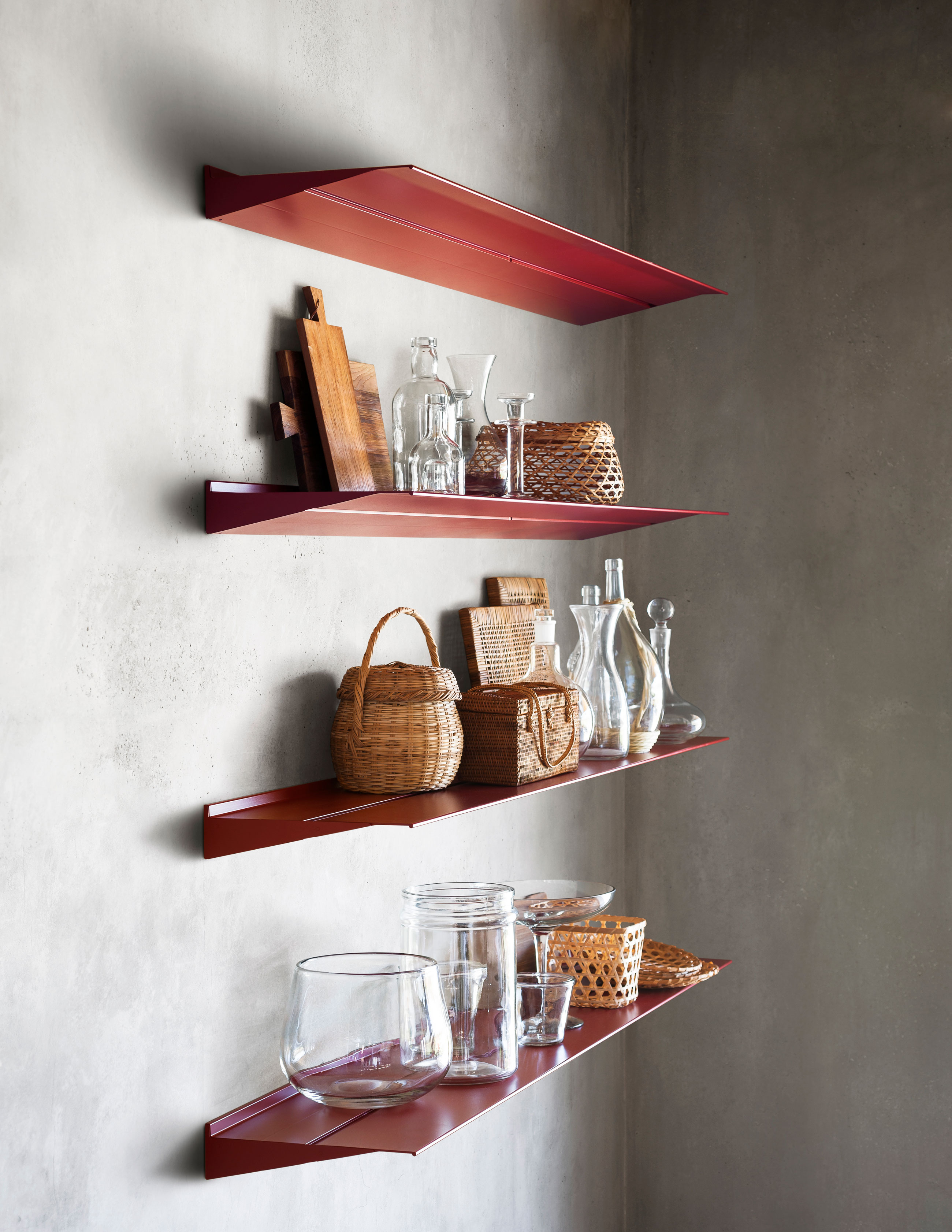 With its technological prowess, modular design, and adaptable accessories, the Hang shelf offers countless options. This shelving system, which is made of extruded aluminium, has two unique slots for adjusting the location of accessories: one on the upper side and one underneath.It can be seamlessly integrated into any space because it has a regulation mechanism that ensures a precise 90° angle to the wall. Because of its modular design, it can be assembled in a variety of ways with no length restrictions. For example, it can be assembled into large shelves that can occupy an entire wall or reach infinitely in a line.