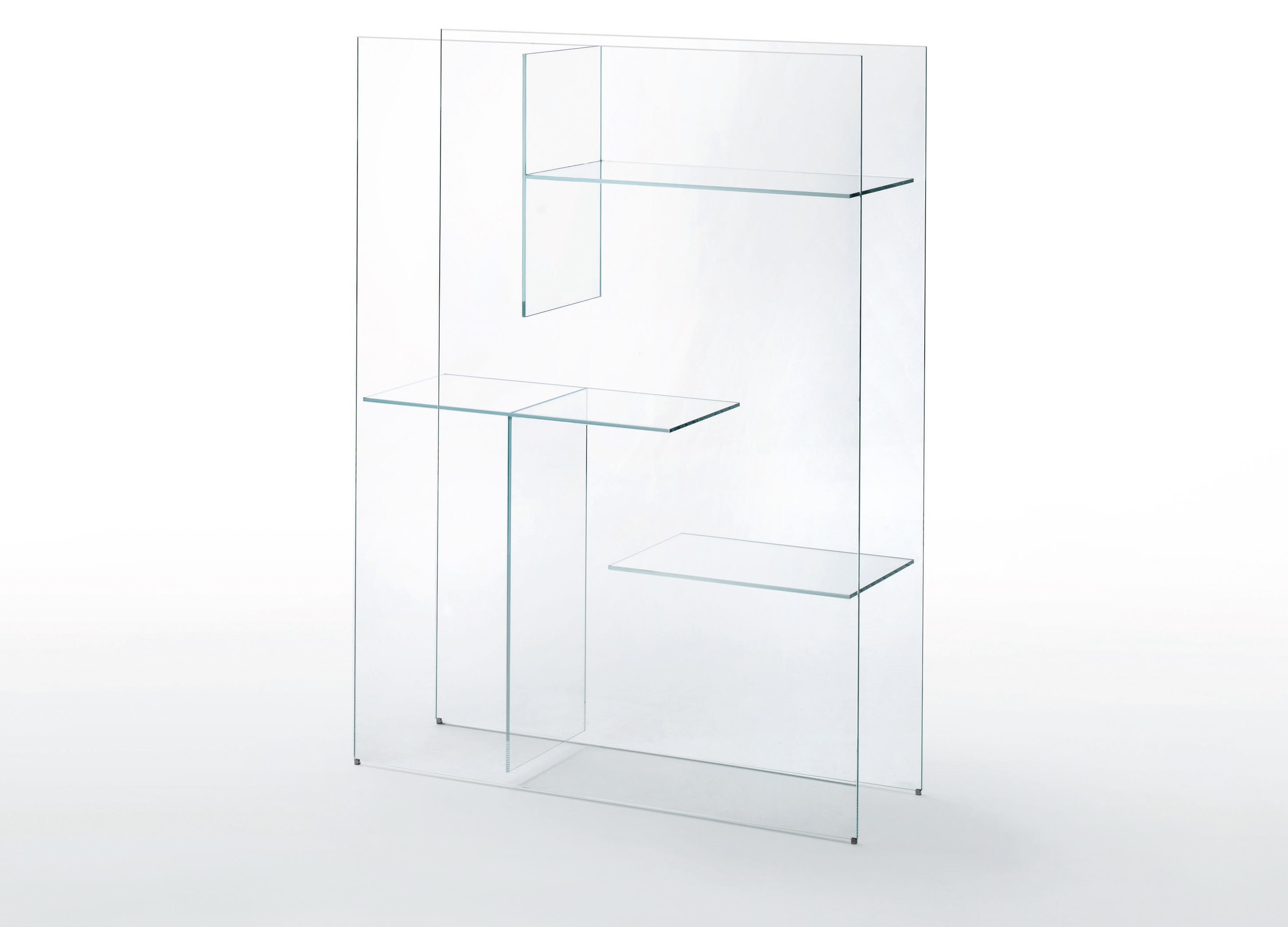 By bonding laminated 5+5mm glass slabs, this versatile display and storage unit also serves as a partition, dividing, and screening space. To suit your space and style, choose from options in transparent extra light glass or transparent coloured glass.