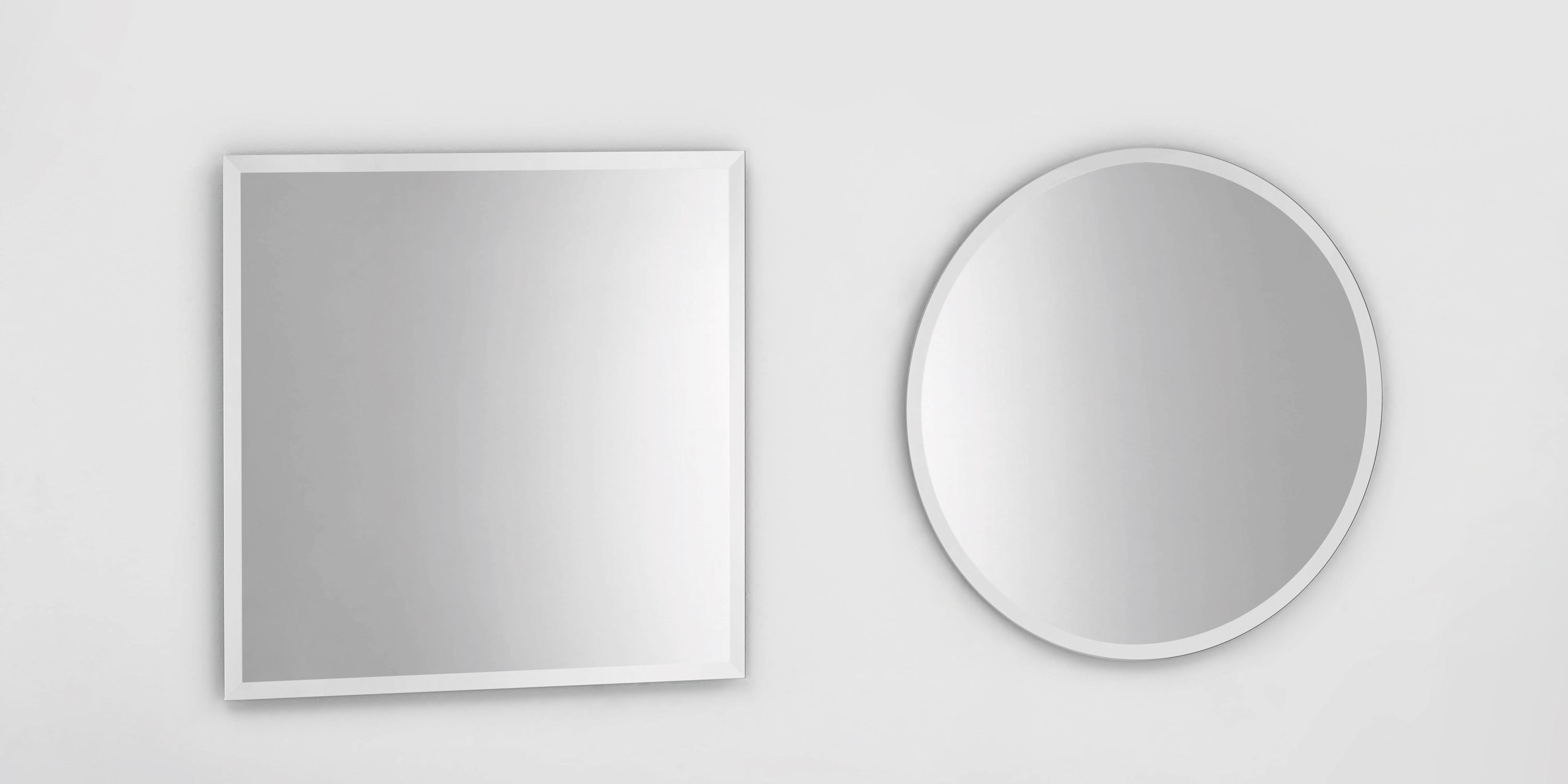 This set of mirrors has external borders that are 3 cm deep with chamfered edges. For a variety of installation options, the oval and rectangular mirrors come with a dual horizontal and vertical mounting system.
