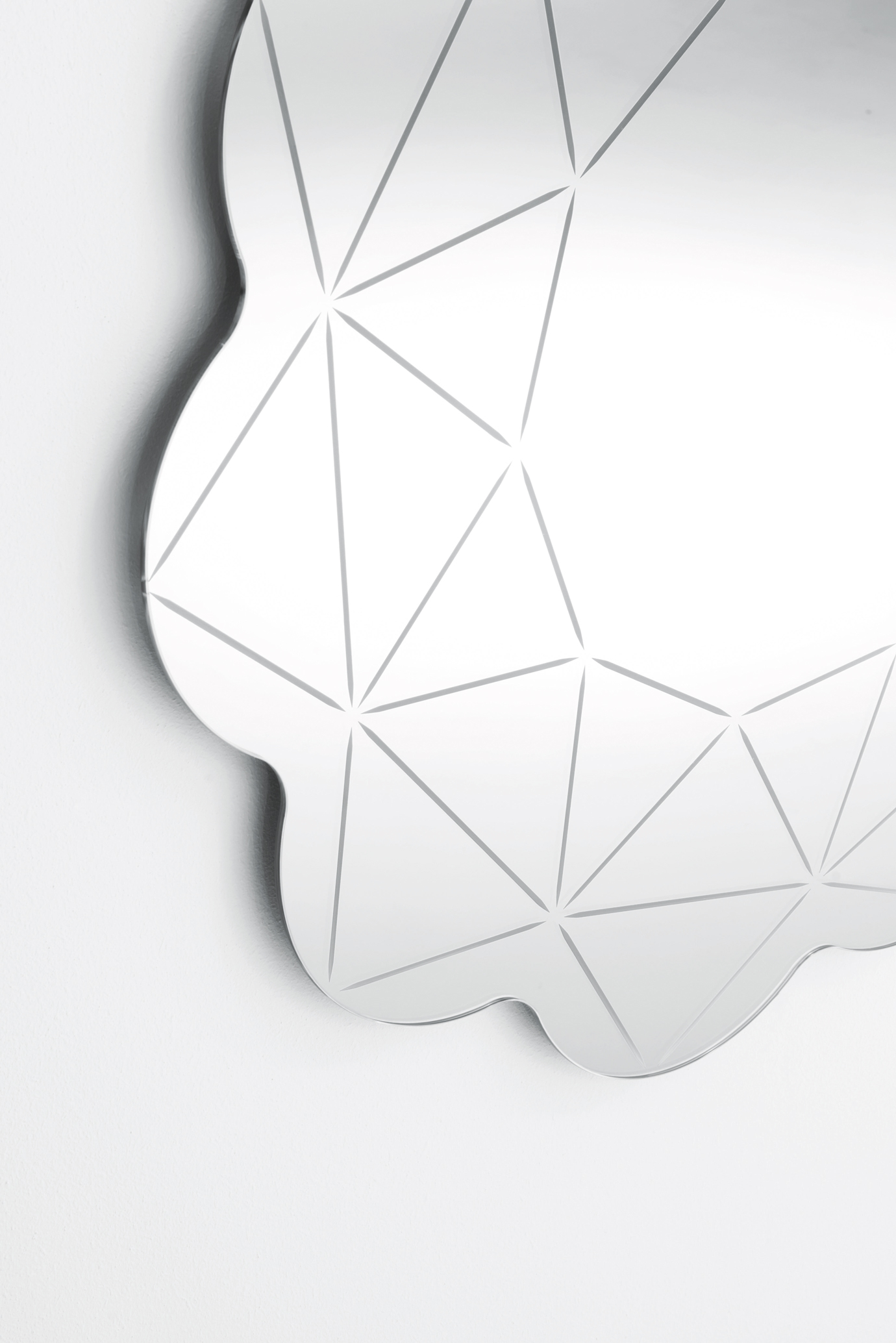 This collection features mirrors made of shaped crystal that have been elegantly adorned with delicately engraved decorations.