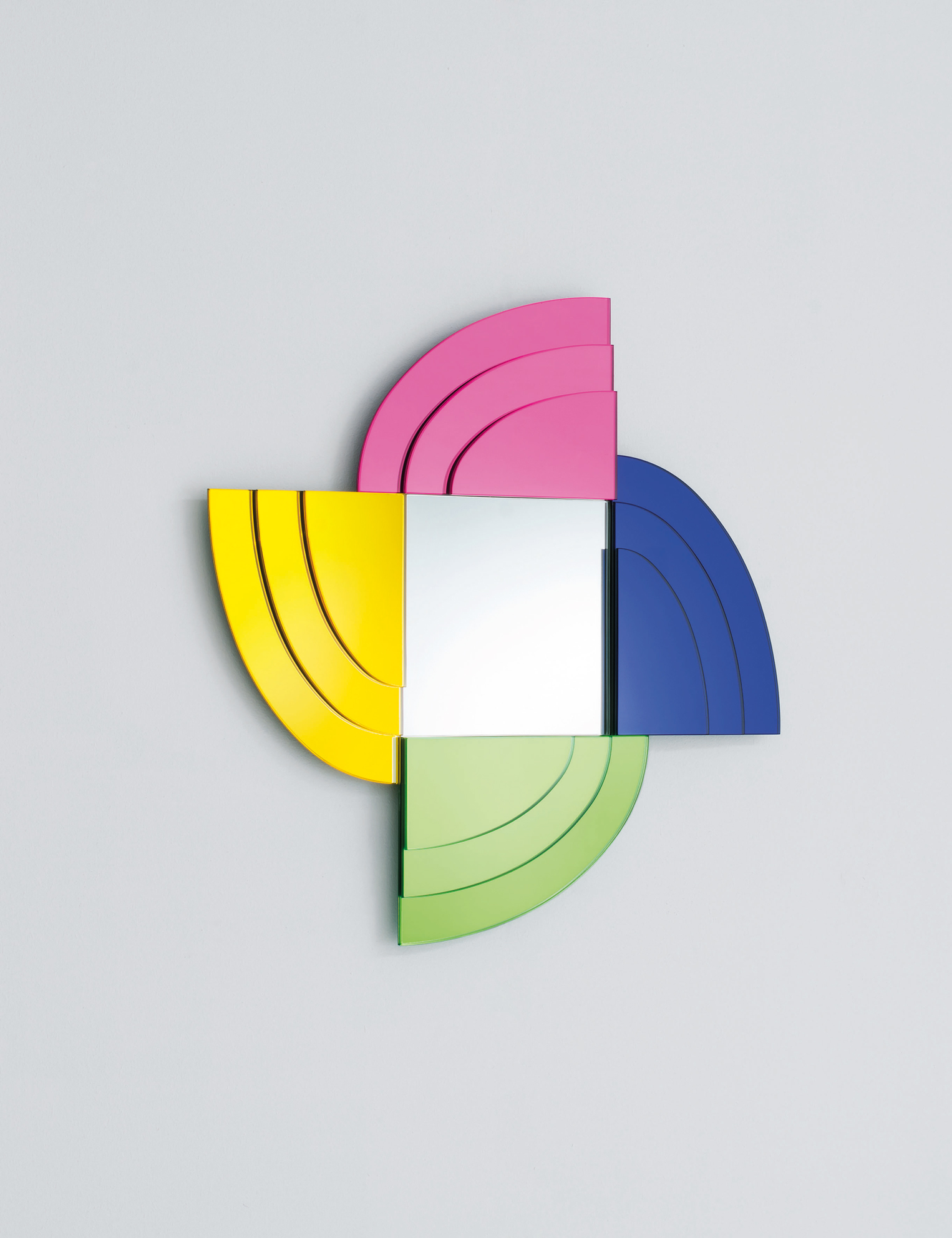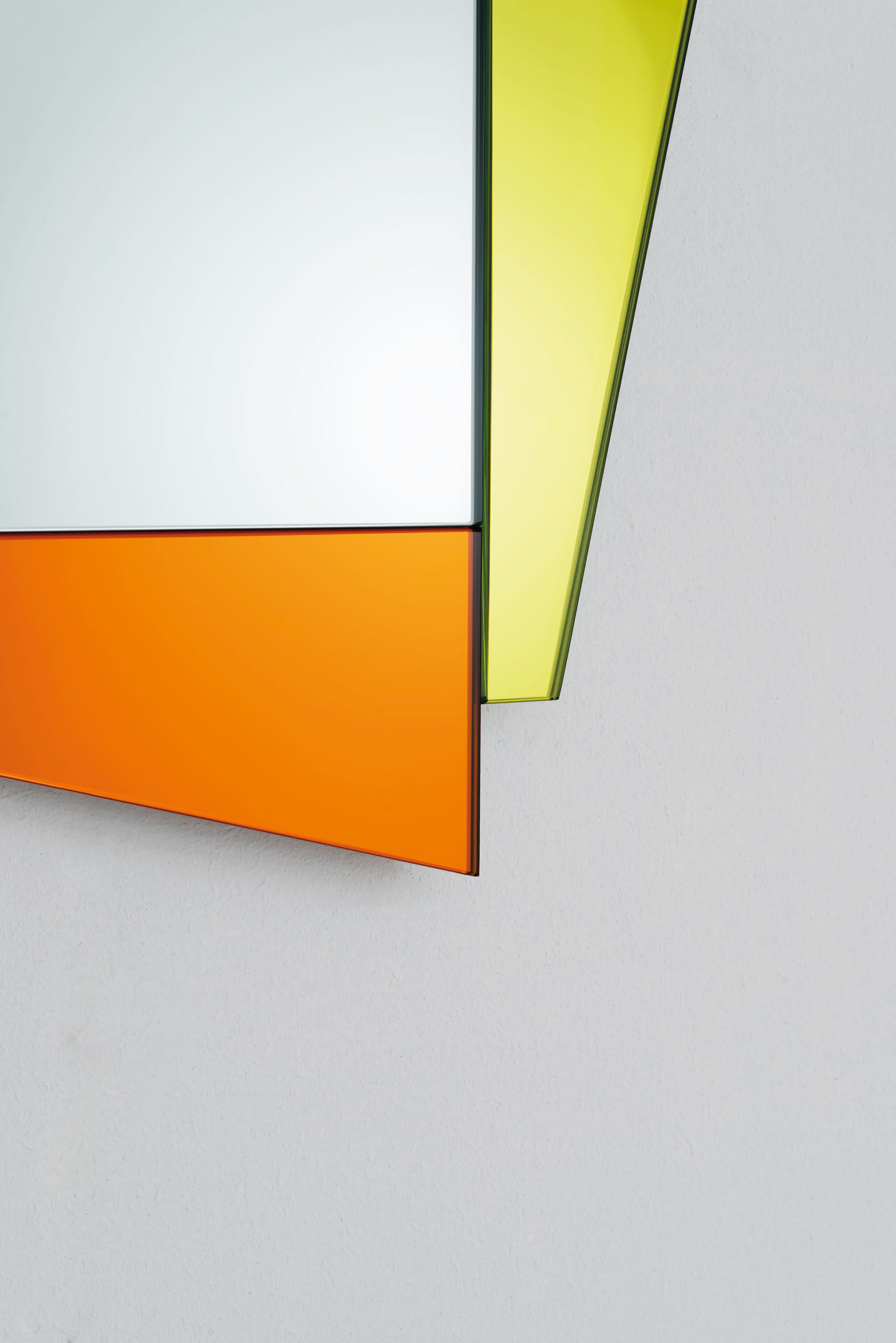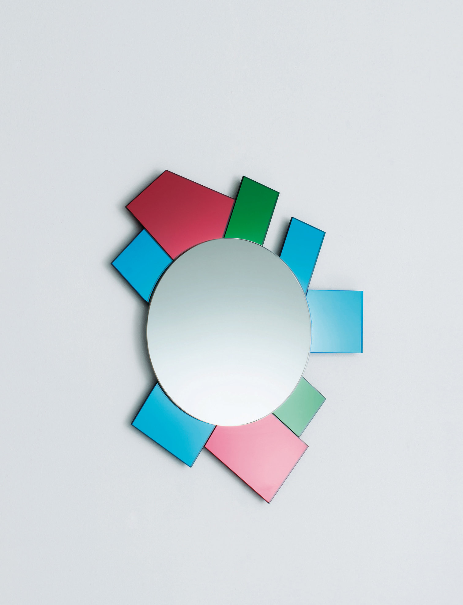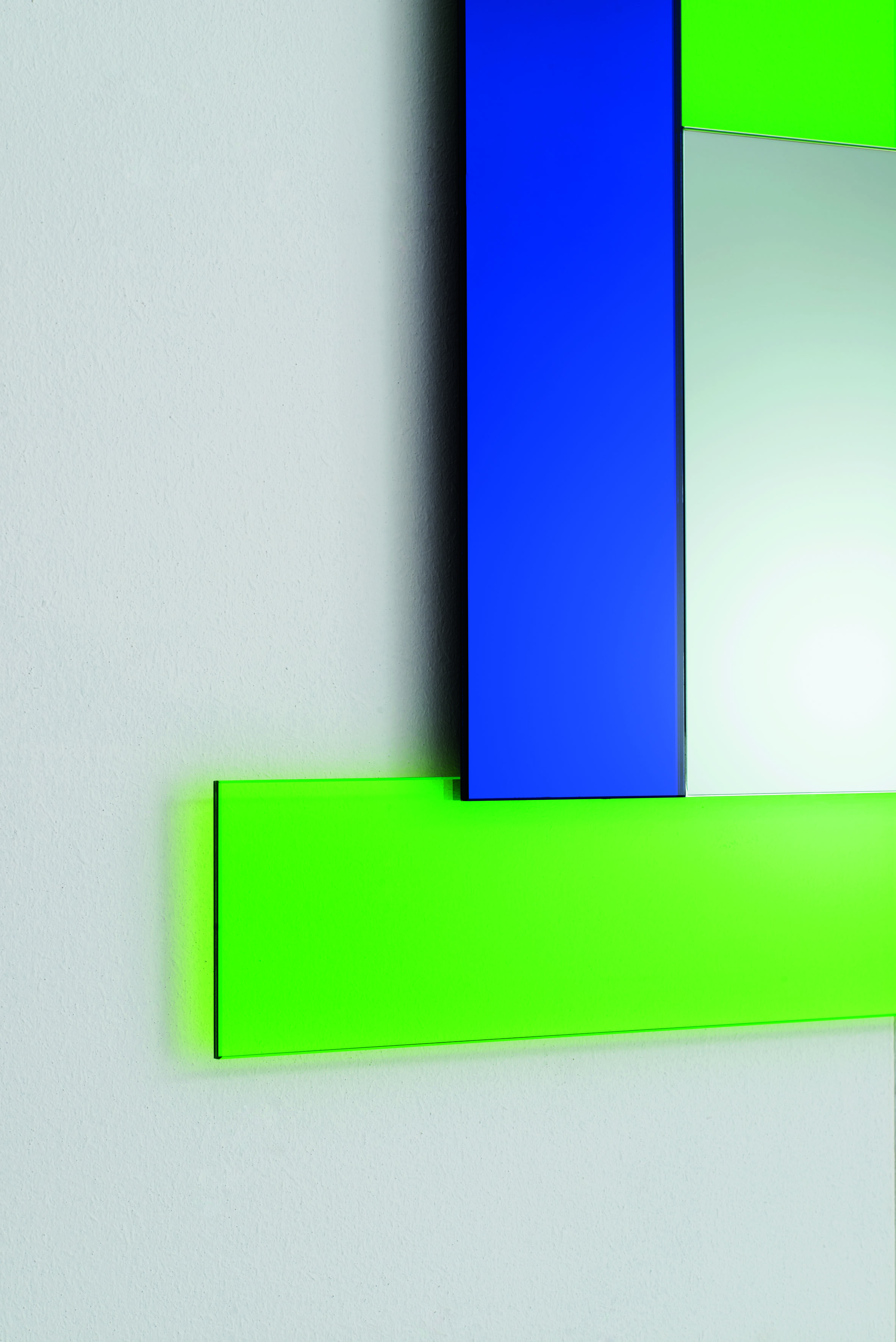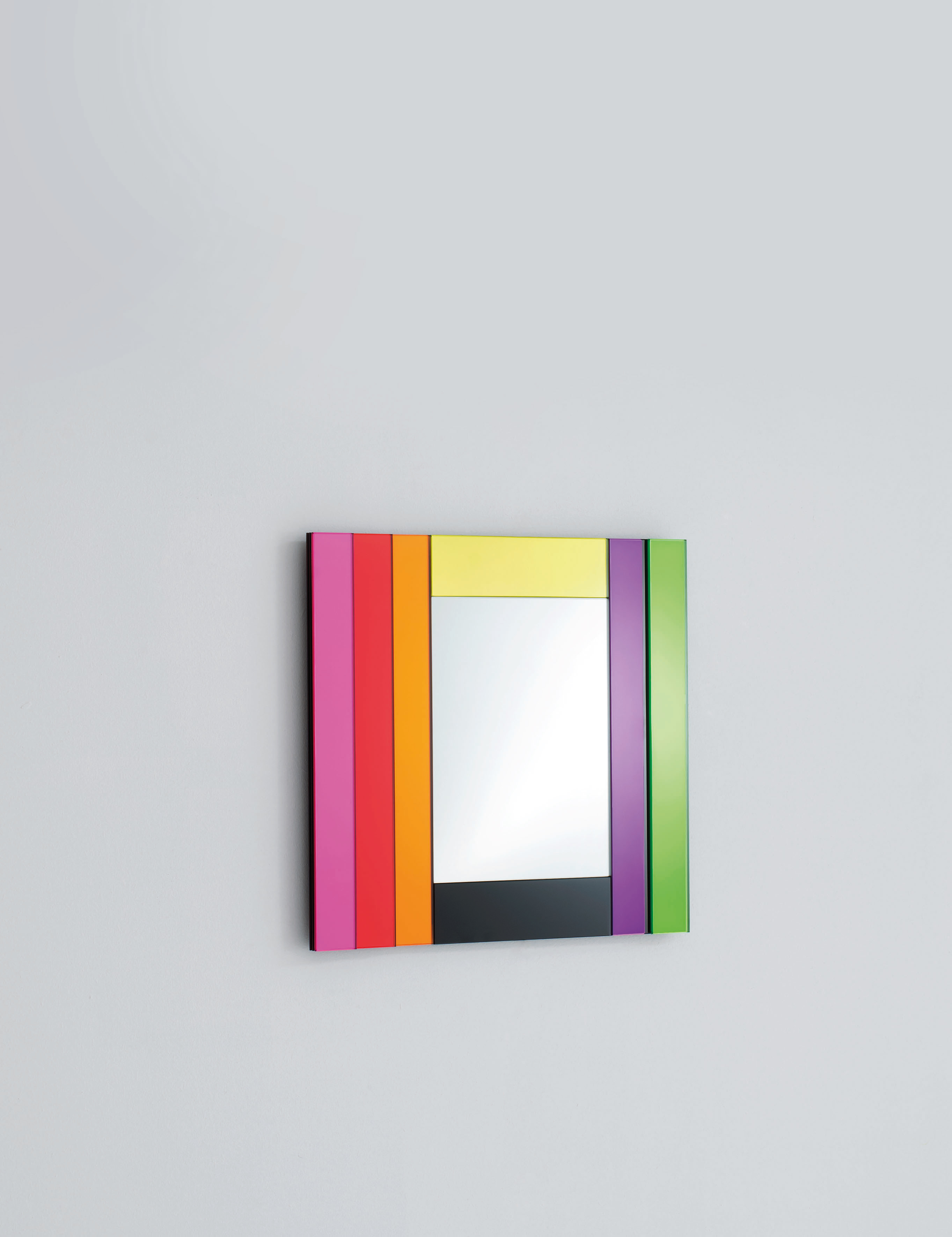 Discover our selection of six different wall mirrors, each with a frame that is colourful and multicoloured and features a distinctive shape and size. These frames add a striking array of hues and styles to your space because they are made from a combination of materials such as coloured laminated glass, lacquered glass, and laminated coloured mirror.