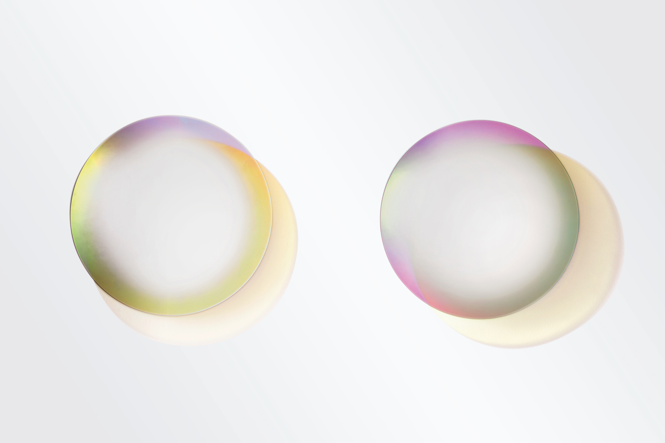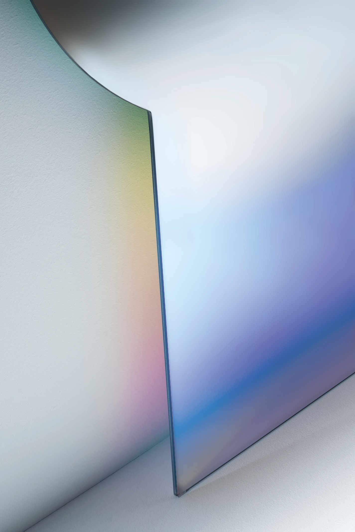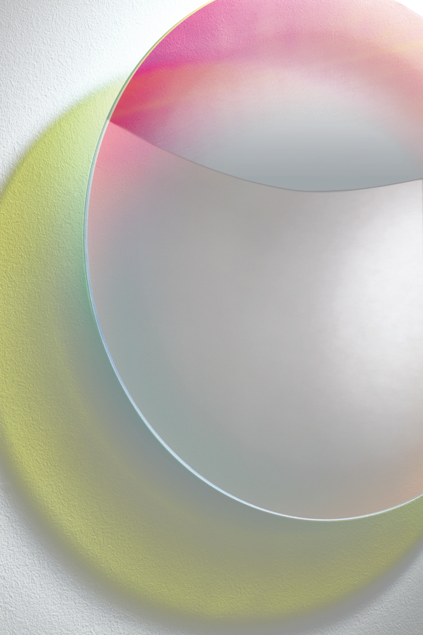 This collection features mirrors made of extra light glass, with sophisticated techniques used to achieve a gradient shading in silvering and the mesmerizing iridescent multichromatic finish that is unique to the Shimmer collection. These mirrors enchant with their magical, ever-changing appearance, displaying a dynamic play of colours influenced by light angles and viewing angles.
