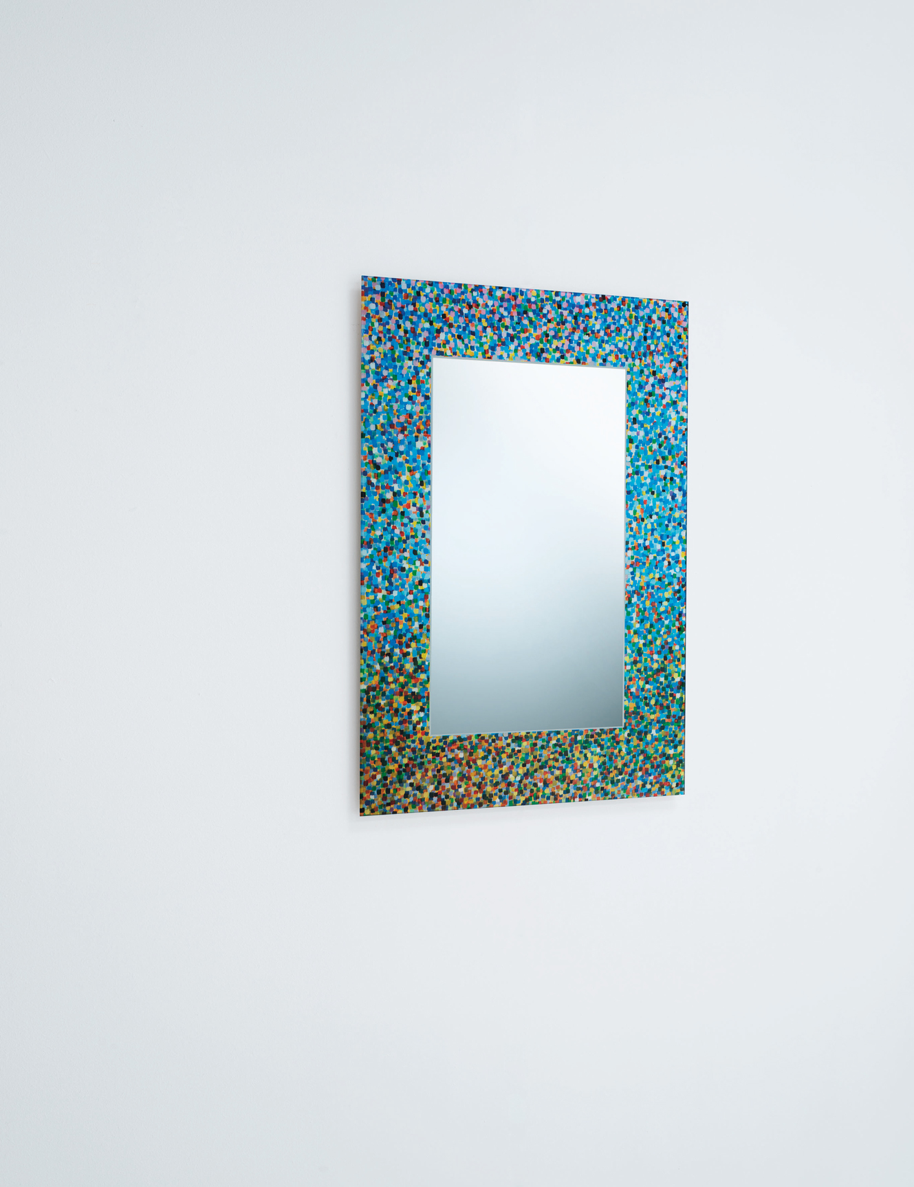 Investigate our rectangular-shaped mirror, which features a polychrome frame with a striking texture of painted strokes. Each mirror has double vertical and horizontal fixtures for versatile installation.