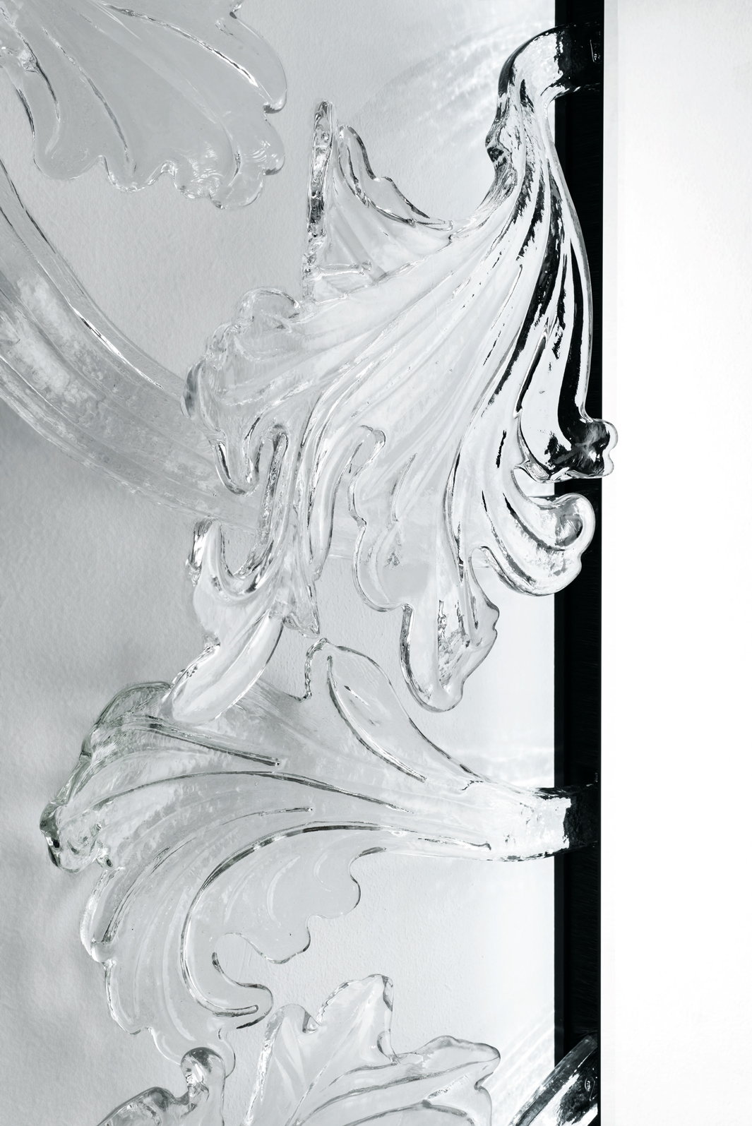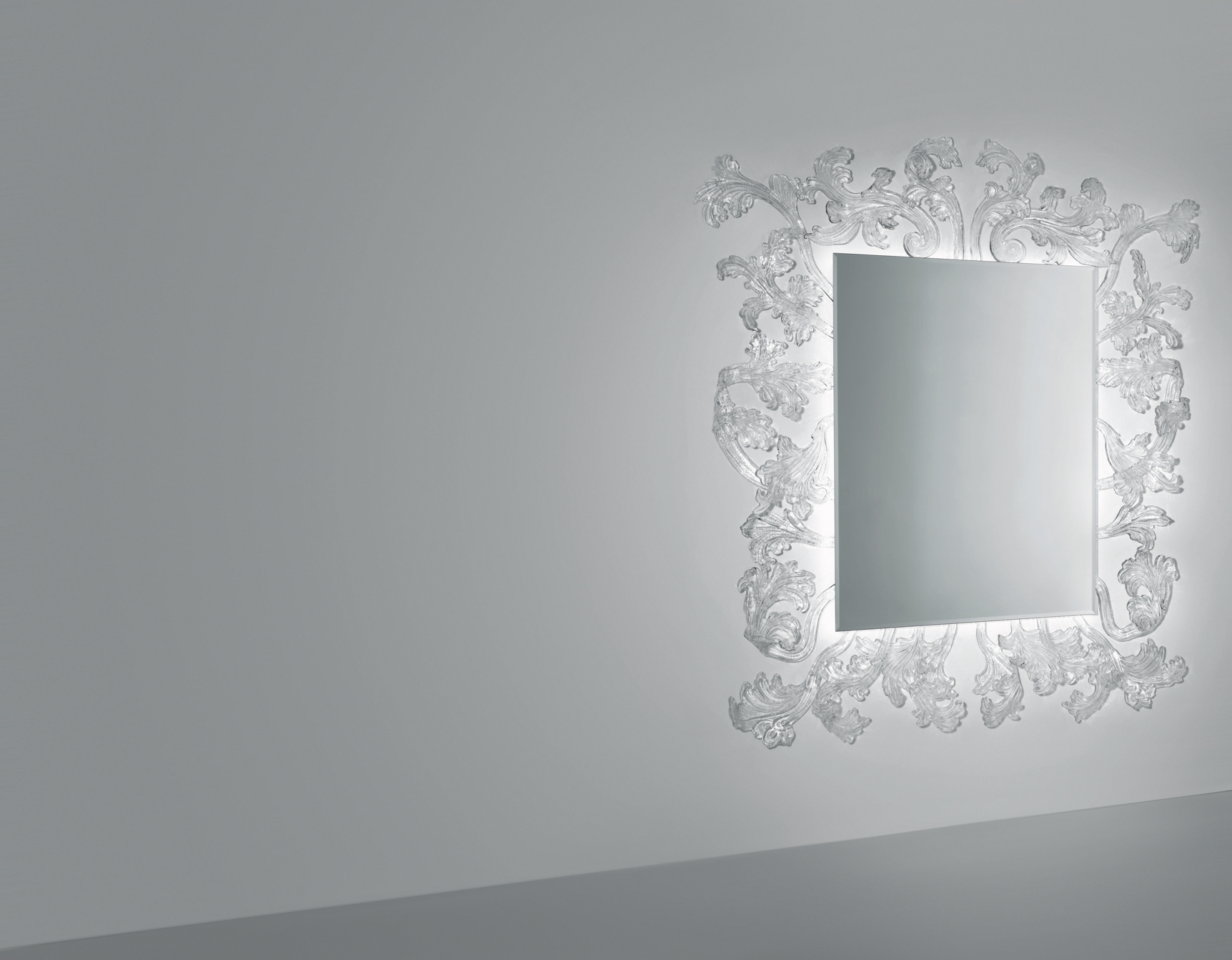 Experience the magnificence of our mirror with a Murano glass frame, meticulously crafted through an intricate handmade process that makes each piece unique and one-of-a-kind. This mirror incorporates a 5mm chamfered mirror and is composed of multiple elements attached to a wall hanging structure. It is also available with an optional LED lighting system, which enhances and elevates the frame's exquisite beauty.