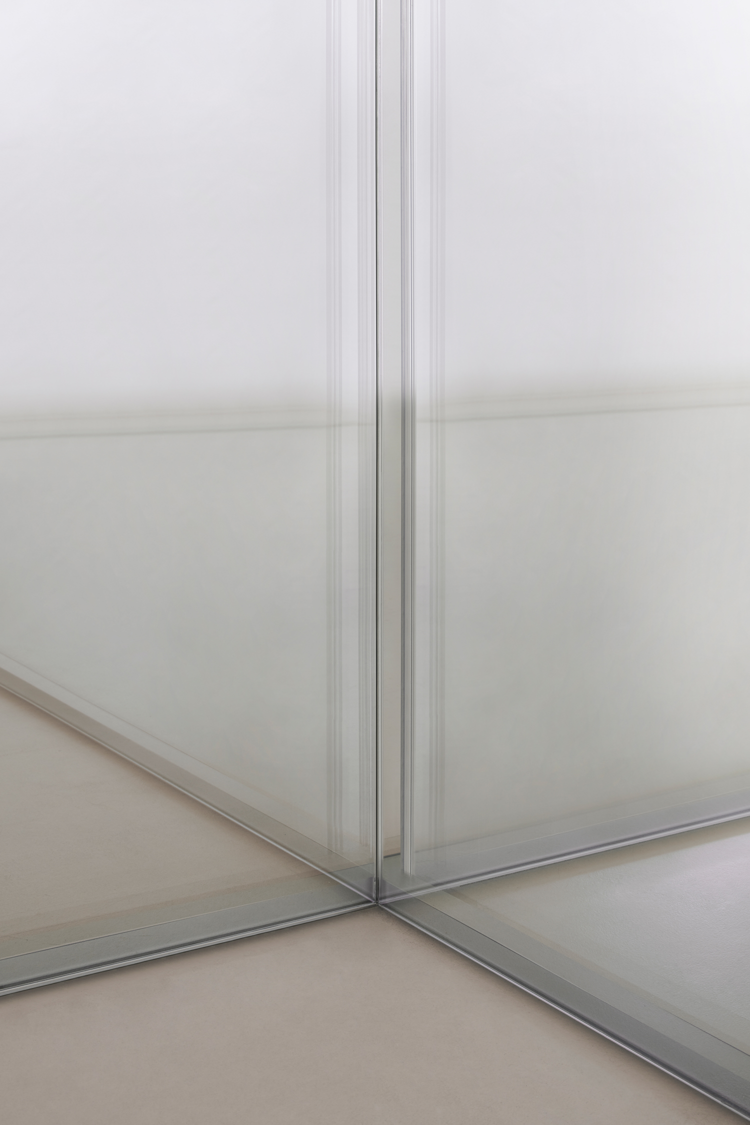 ALADIN WALL DUO: Double laminated glass (5+5 mm or 4+6 mm) applied on both sides of the frame, forming an internal air chamber with flush surfaces on both sides.