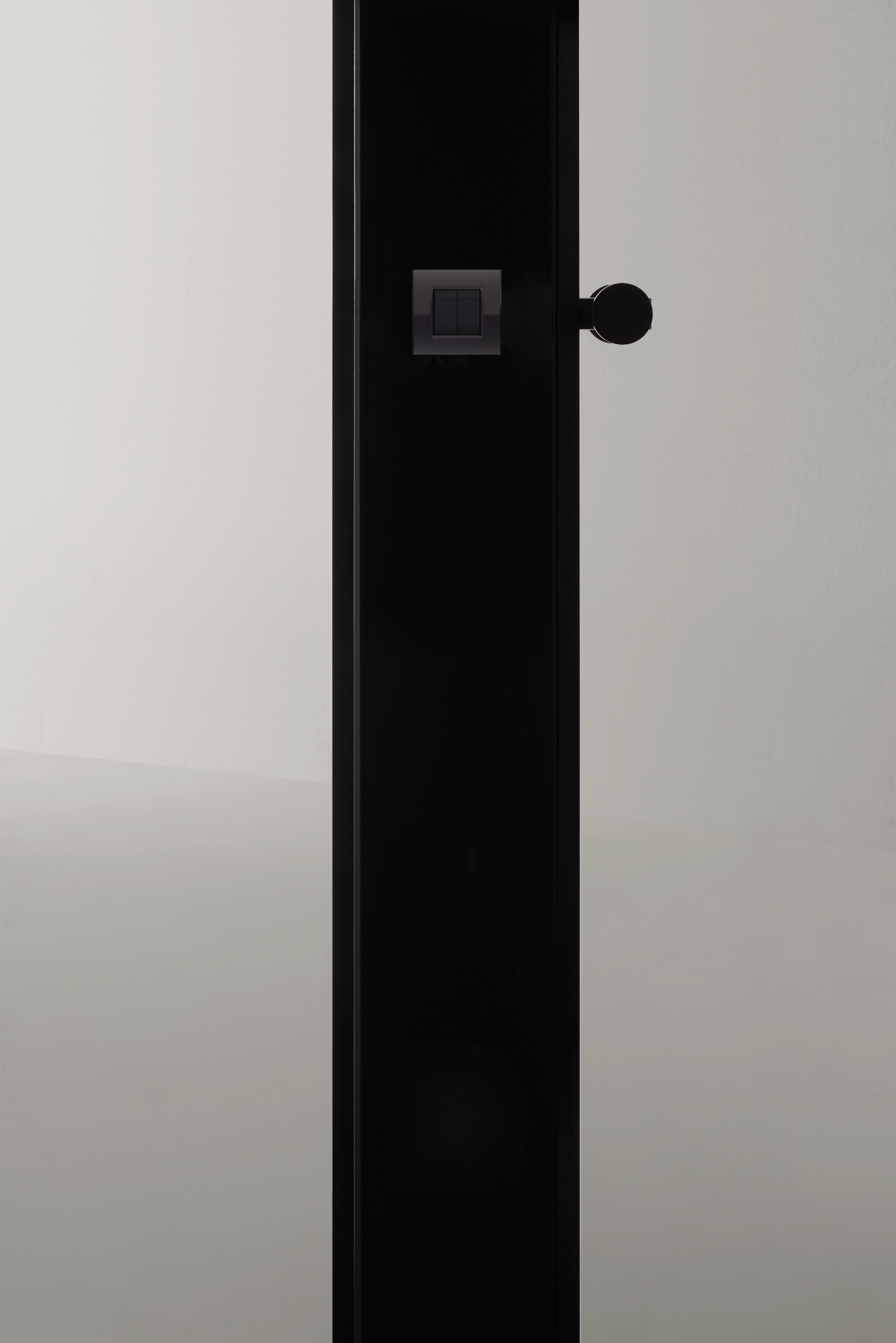 ALADIN WALL MONO: Single laminated glass panel (5+5 mm or 4+6 mm) applied on one side of the aluminum frame, creating a flush surface on one side and a recessed surface on the other.