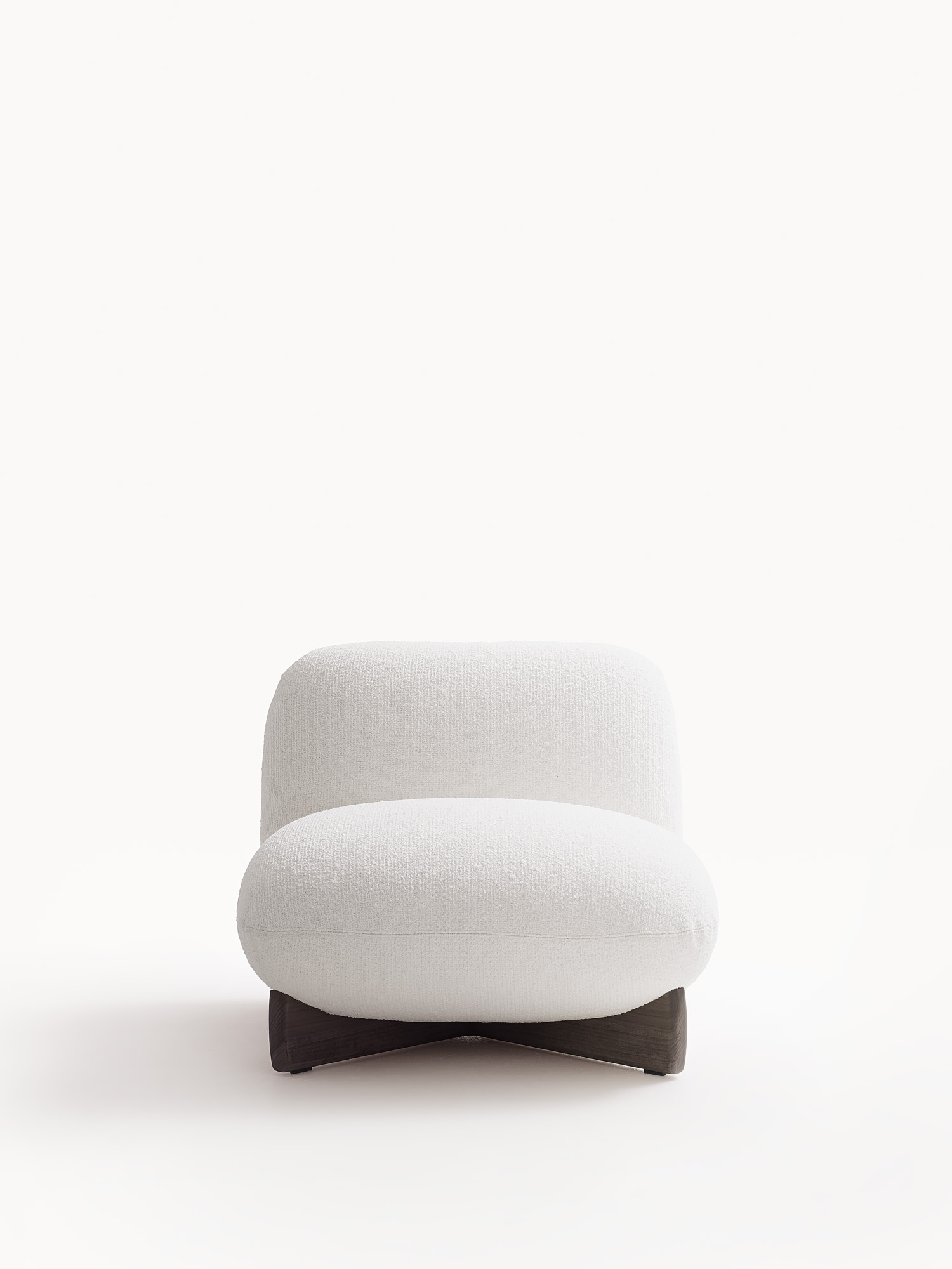 Hasu, designed by Ludovica Palomba + Roberto Serafini, is a compact armchair with soft, enveloping three-dimensional volumes. Named after the elegant lotus flower, it blends refined simplicity with perfect seat-to-backrest proportions and visual purity. Light and soft, yet stable and solid thanks to its wooden frame, Hasu is both functional and decorative. Available in a wide range of removable fabric covers, it offers a cozy, stylish retreat defined by clean aesthetics and precise design.
