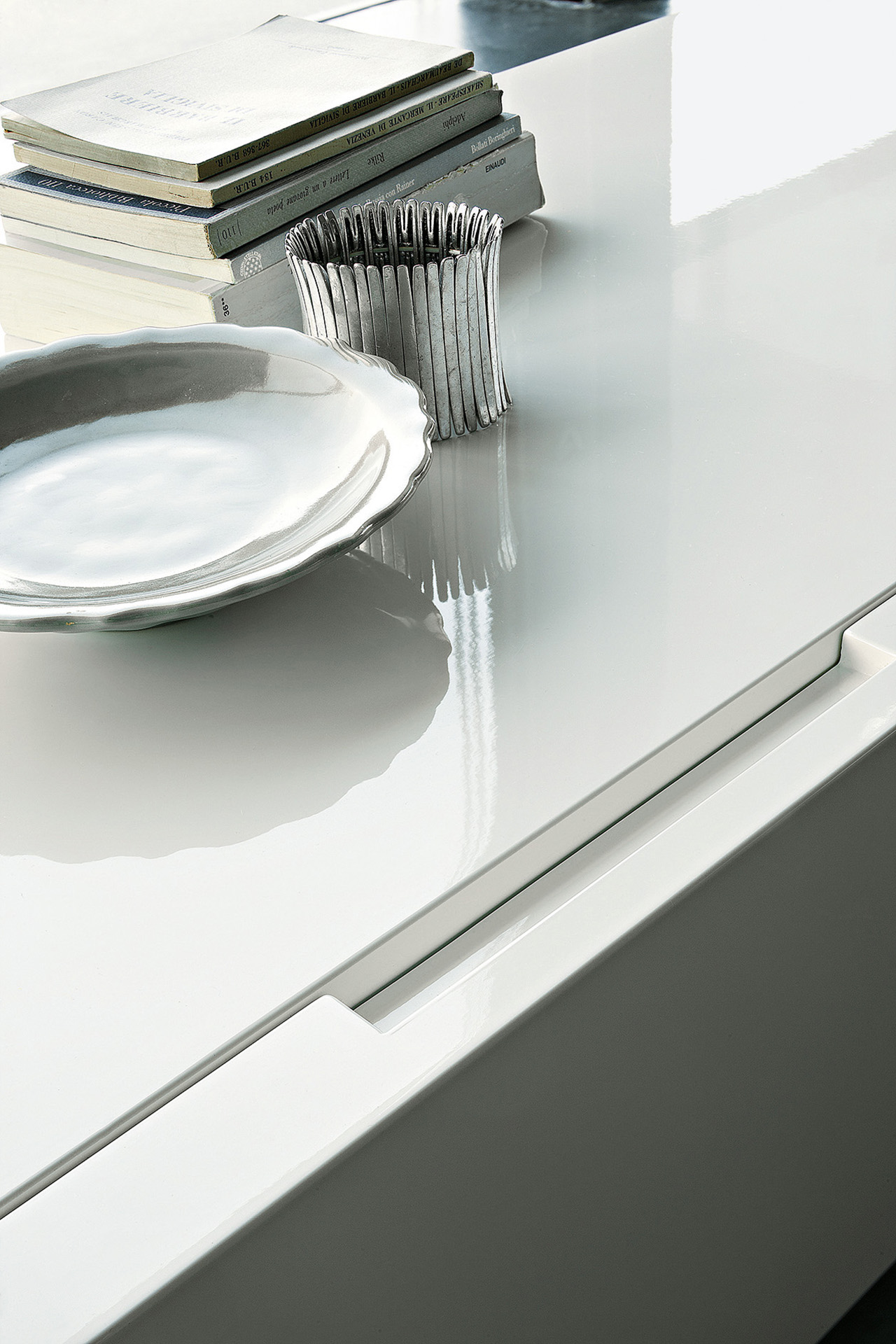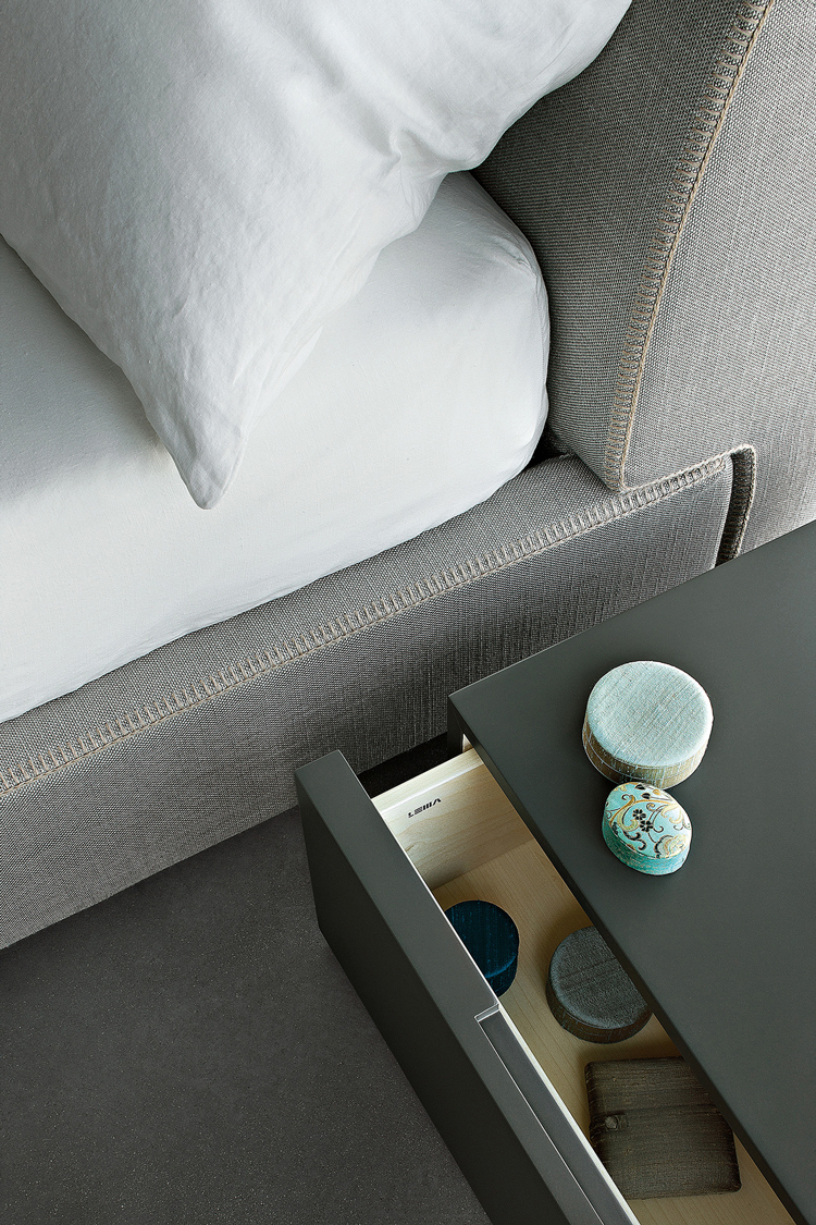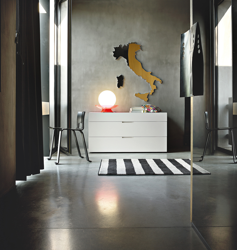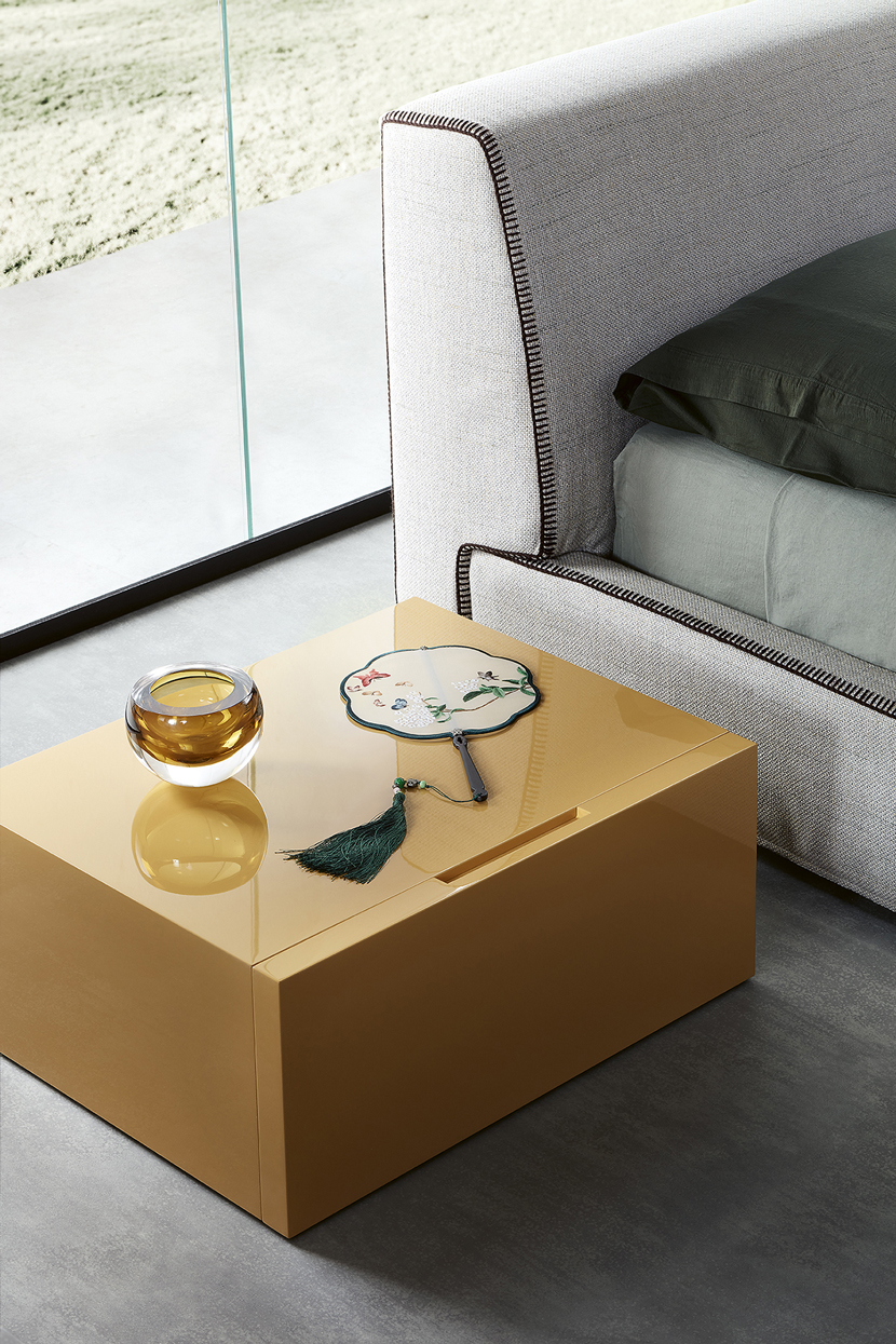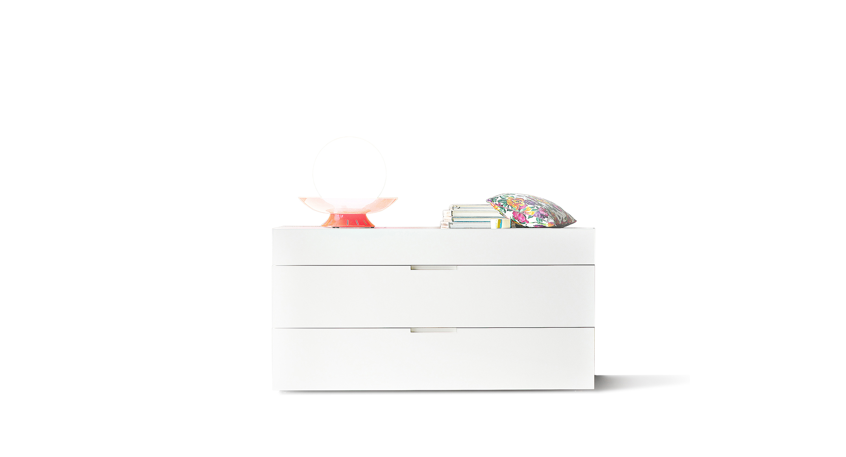 Flin is a classic, elegant storage system for the bedroom. Available as a bedside table and drawer units, it comes in different sizes, different volumes and two different finishes, lacquered matt or glass.