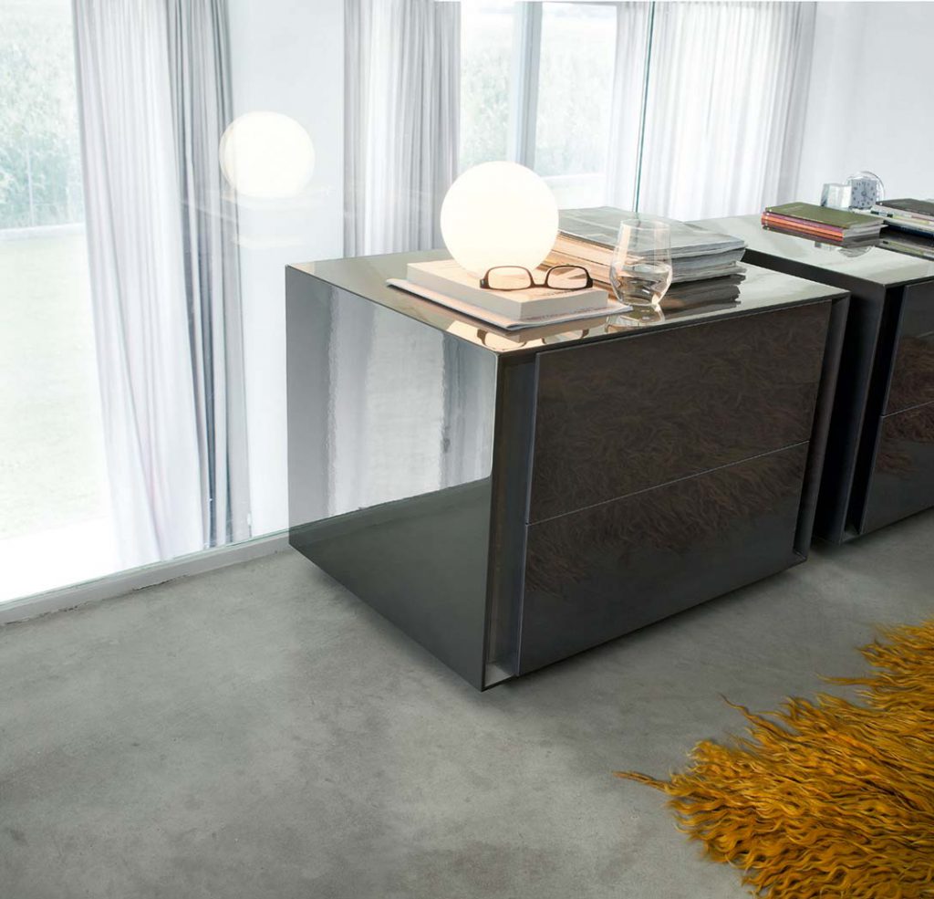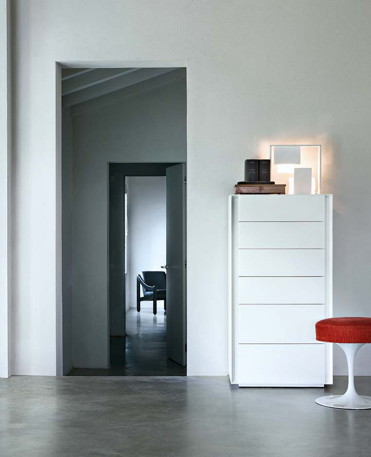 Luna is a family of container systems consisting of a bedside table and high and low drawer units. Its delicate lines are enhanced by its lateral incisions and refined 45° joints. Available in lacquered matt or glass finishes in over 40 colours from the Lema collection.