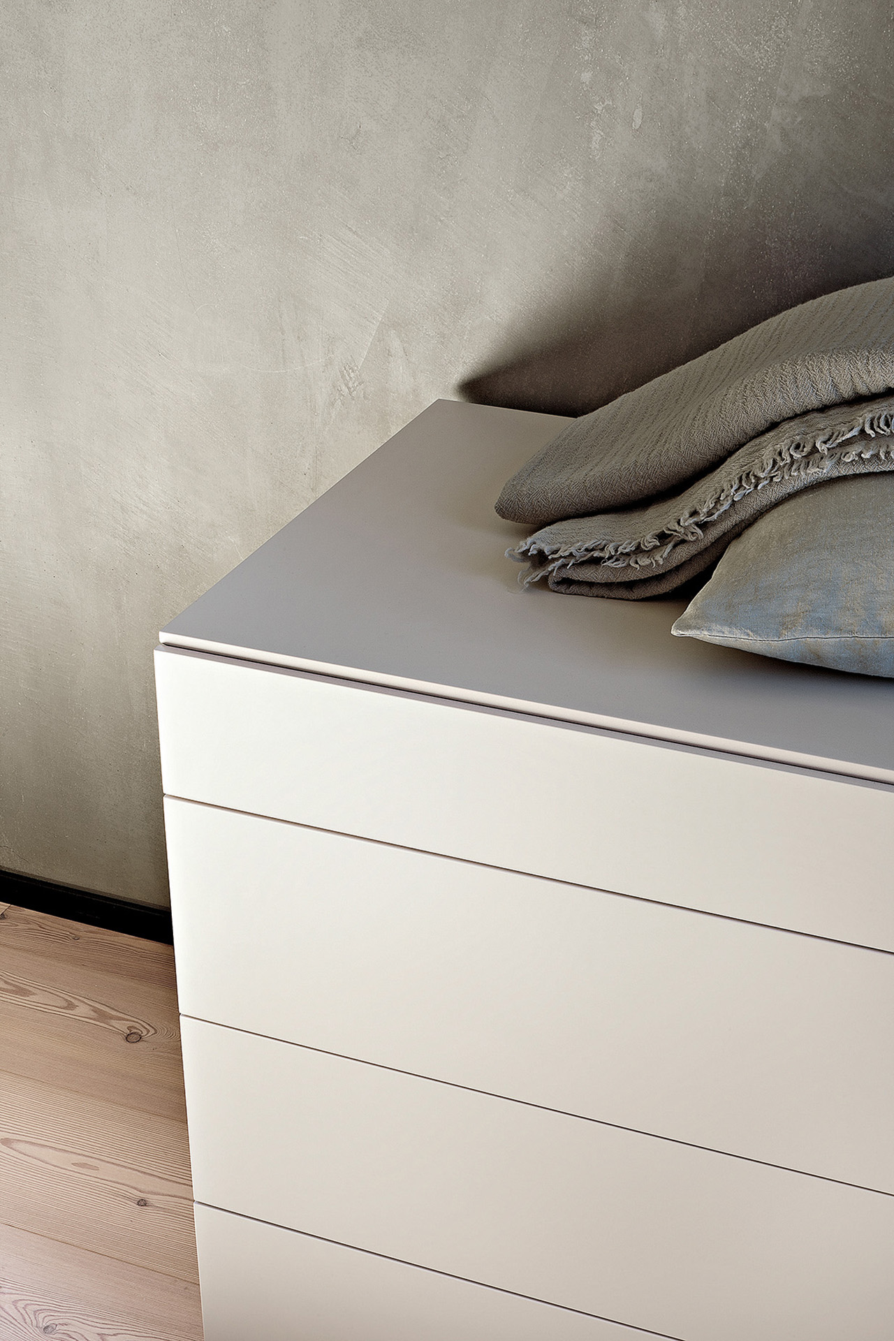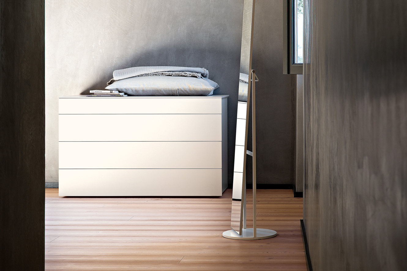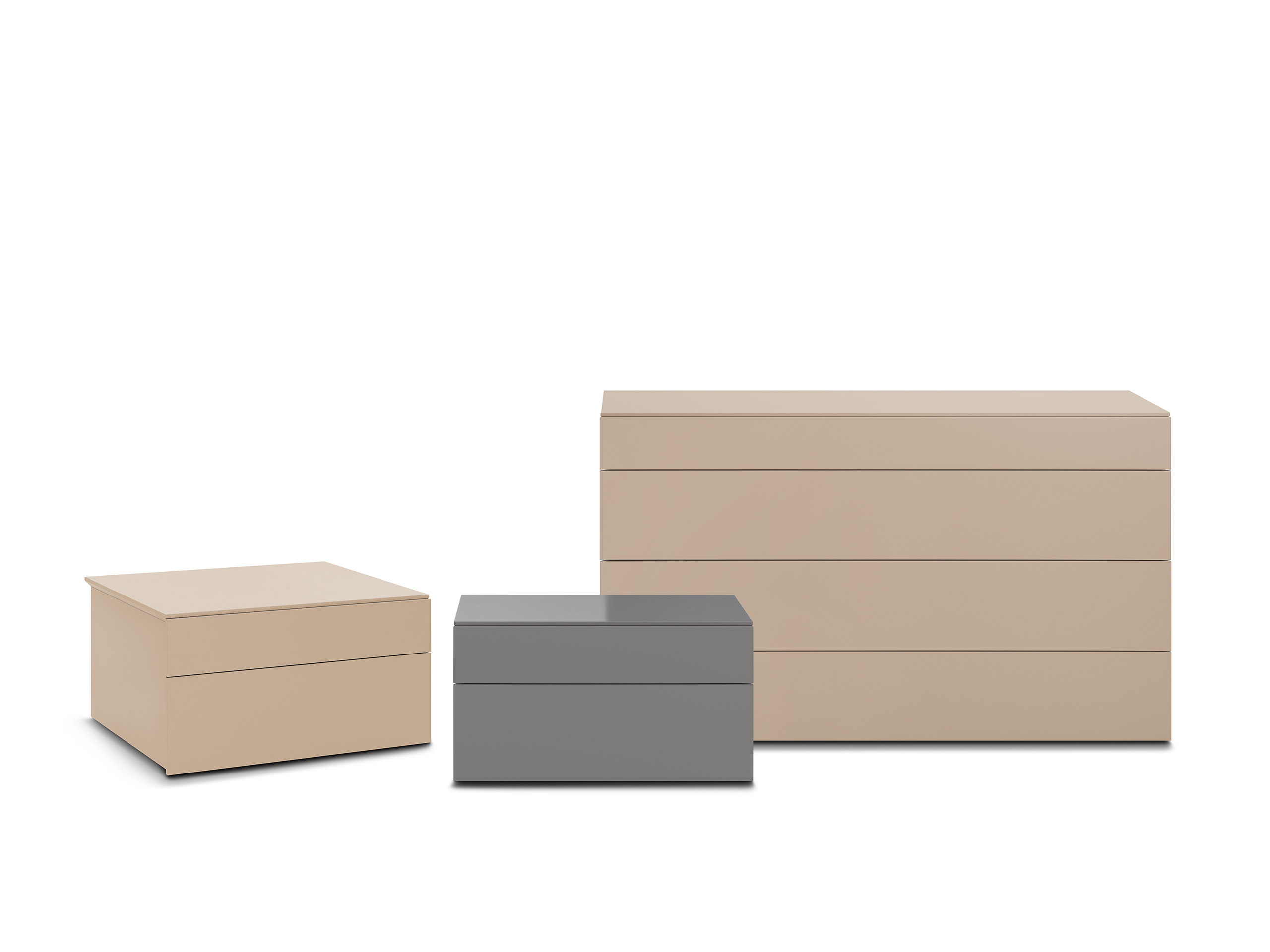 Quarantacinque by Officinadesign Lema offers stylish bedroom containers including side tables and chests of drawers, named for their precise 45° joints and available in sleek matt lacquer finishes. Integrating artisanal craftsmanship with modern industrial techniques, they blend form and function seamlessly for versatile use in any setting.