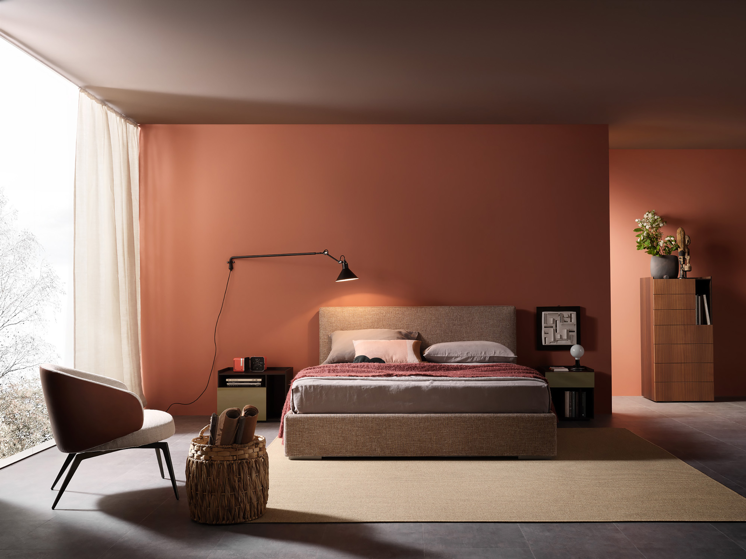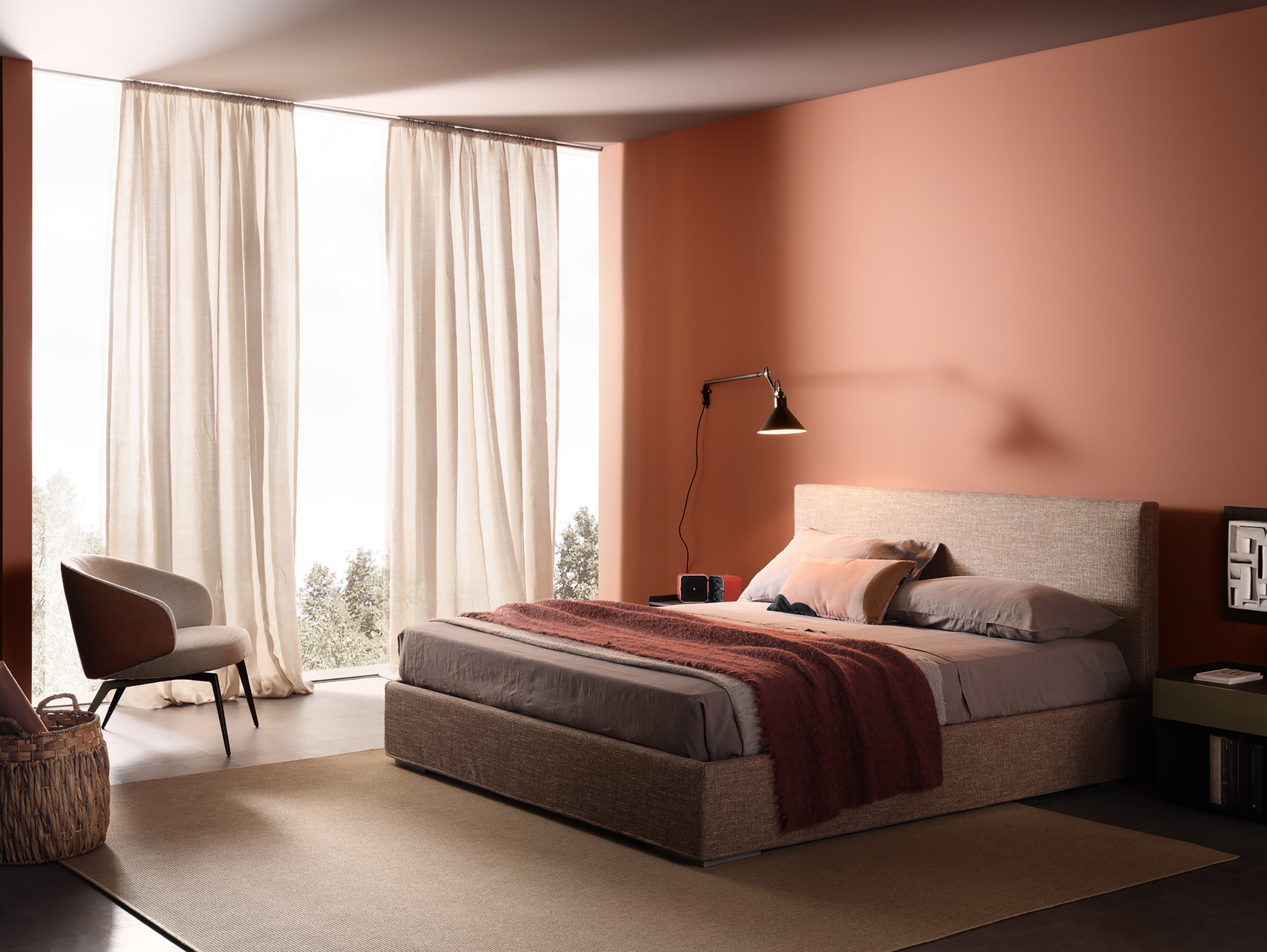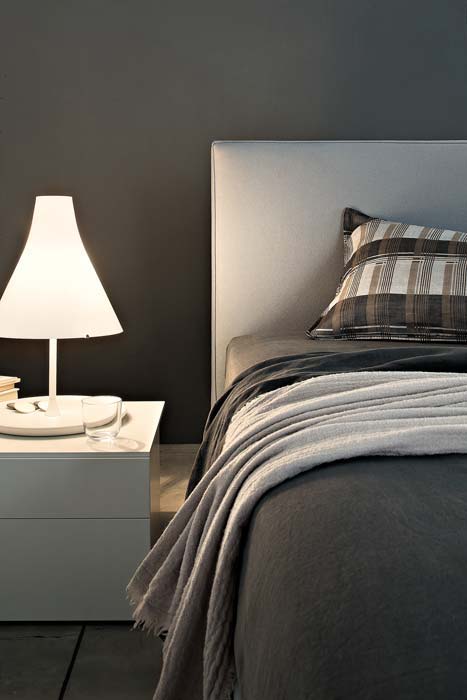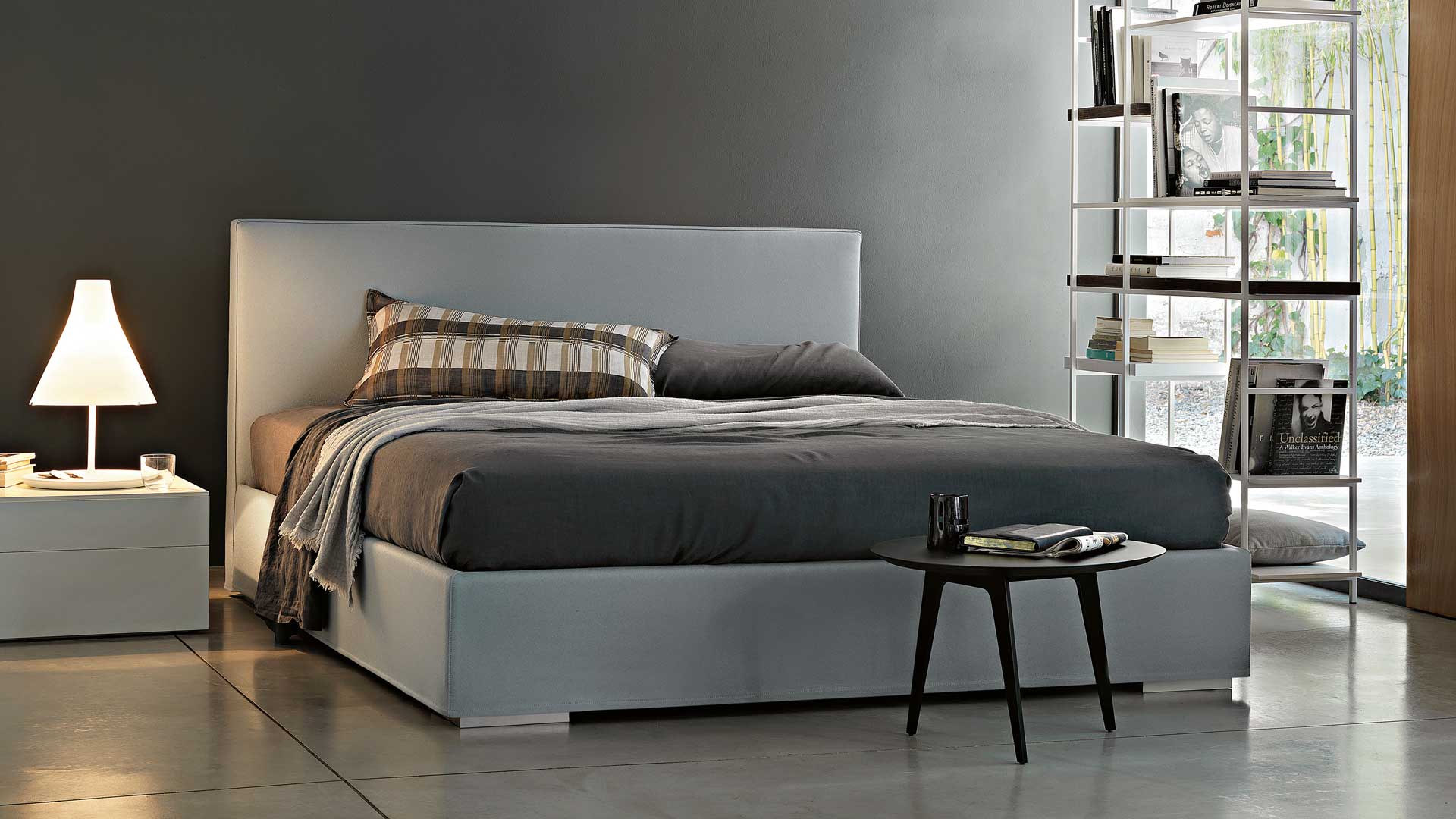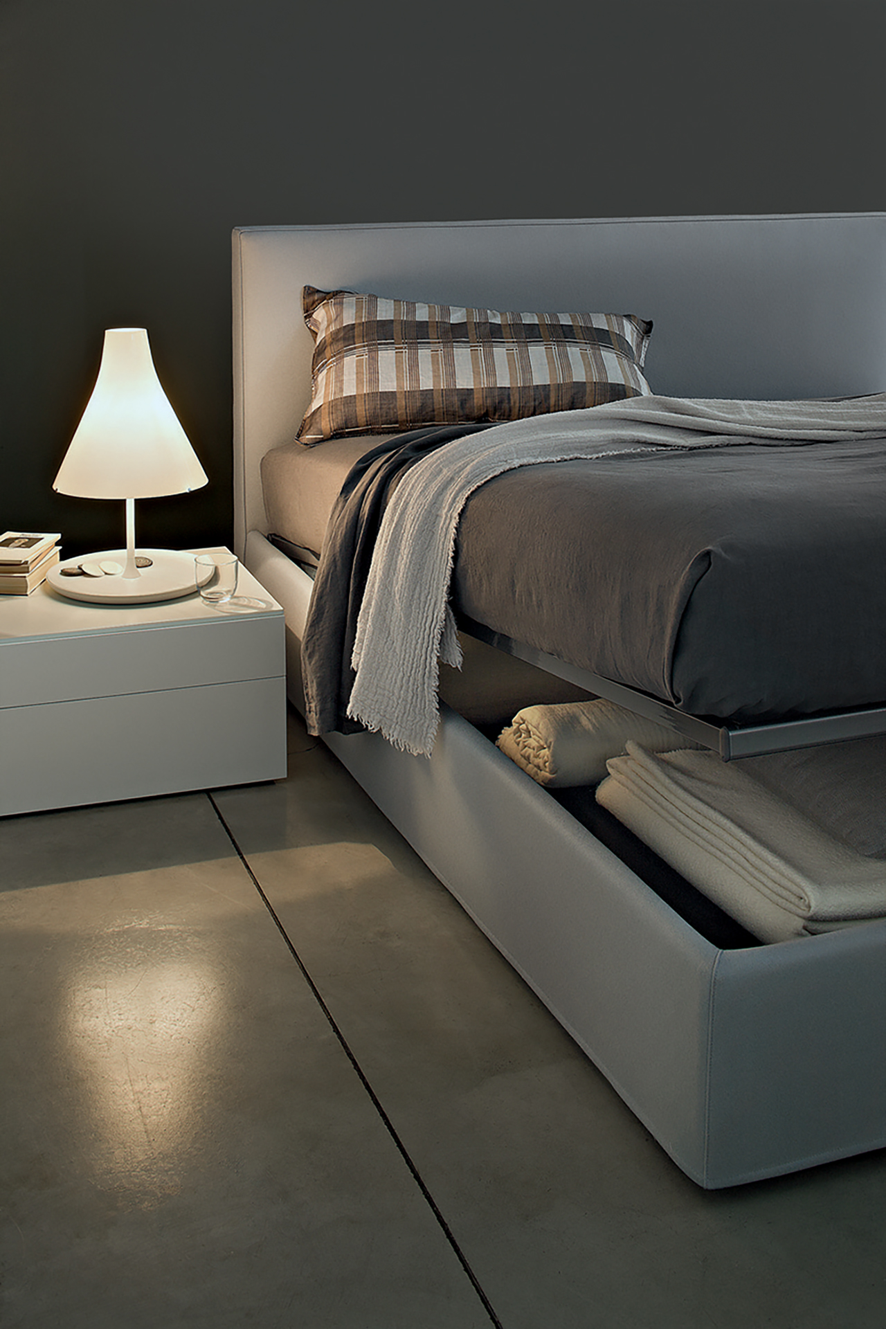 Rigorous and linear, Camille is a padded bed with removable cover in leather or fabric and precise stitching that surrounds the bed’s perimeter. The perfect piece for a classic and timeless bedroom - available in four widths with optional storage unit which is revealed by lifting the bed’s mesh.