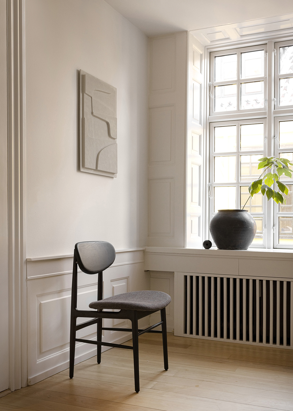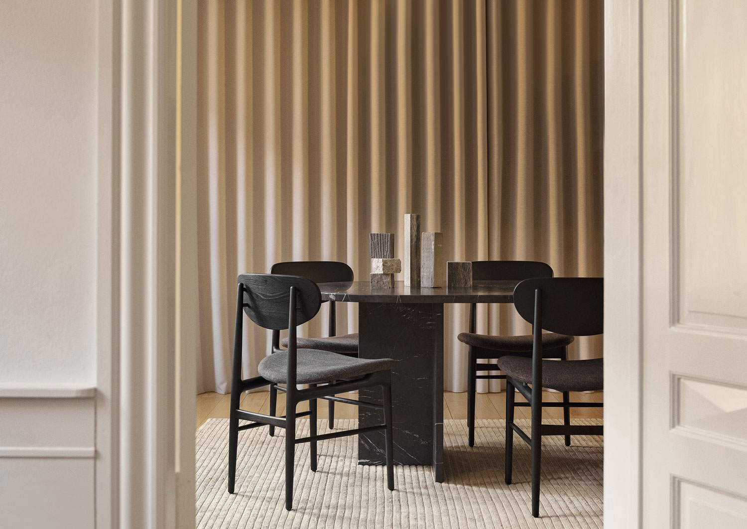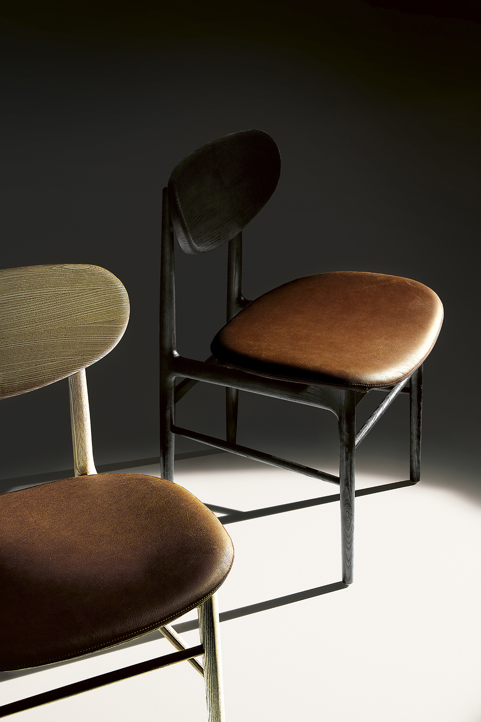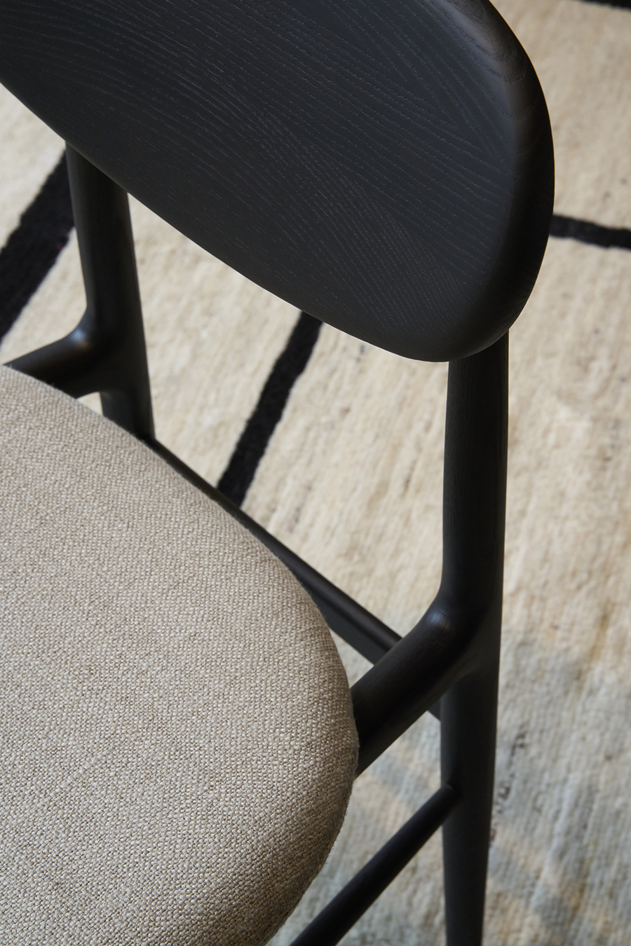 The Fred dining chair blends meticulous craftsmanship with mid-century Italian style, featuring a solid wood backrest and flexible upholstered seat for unexpected comfort and elegant minimalism.