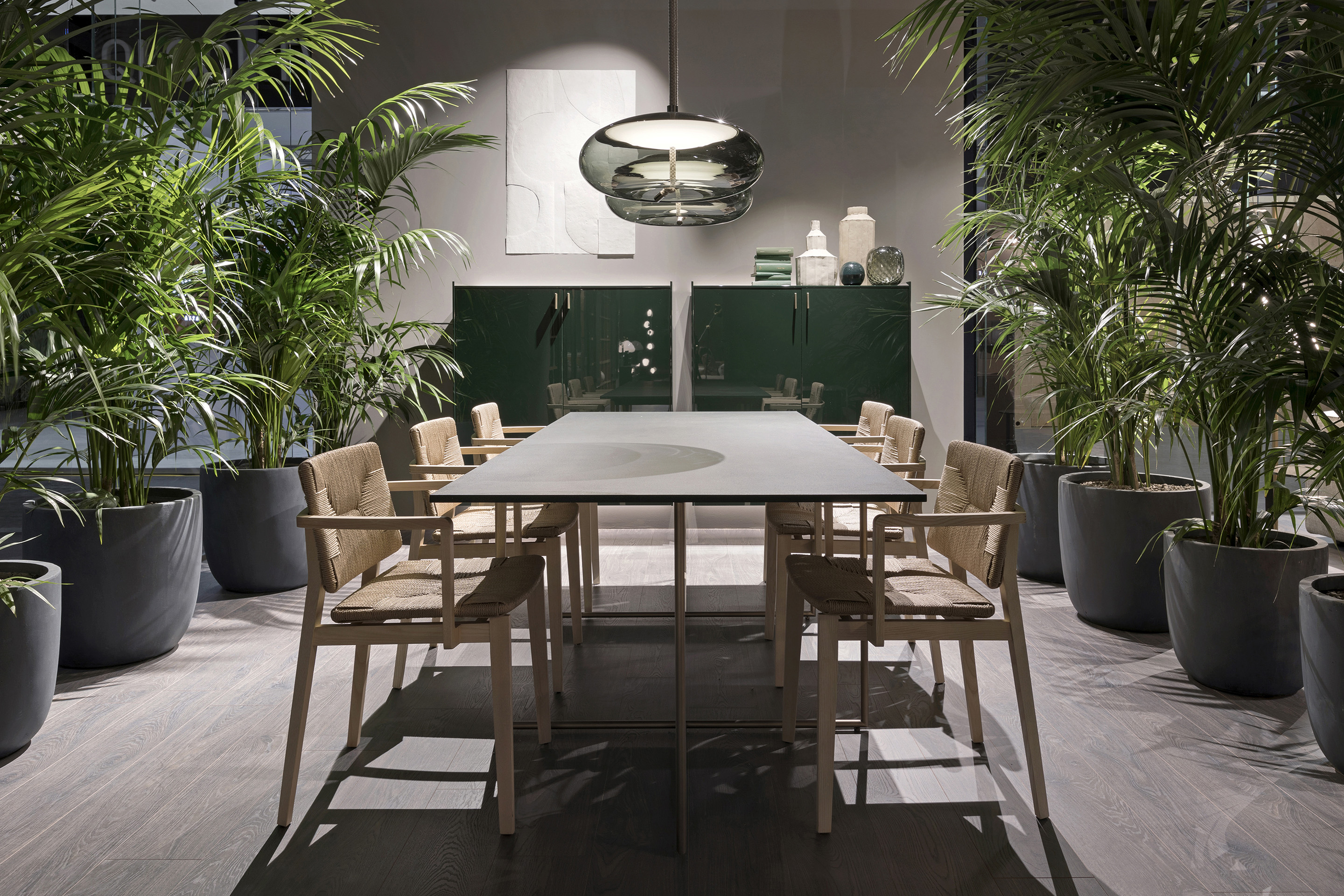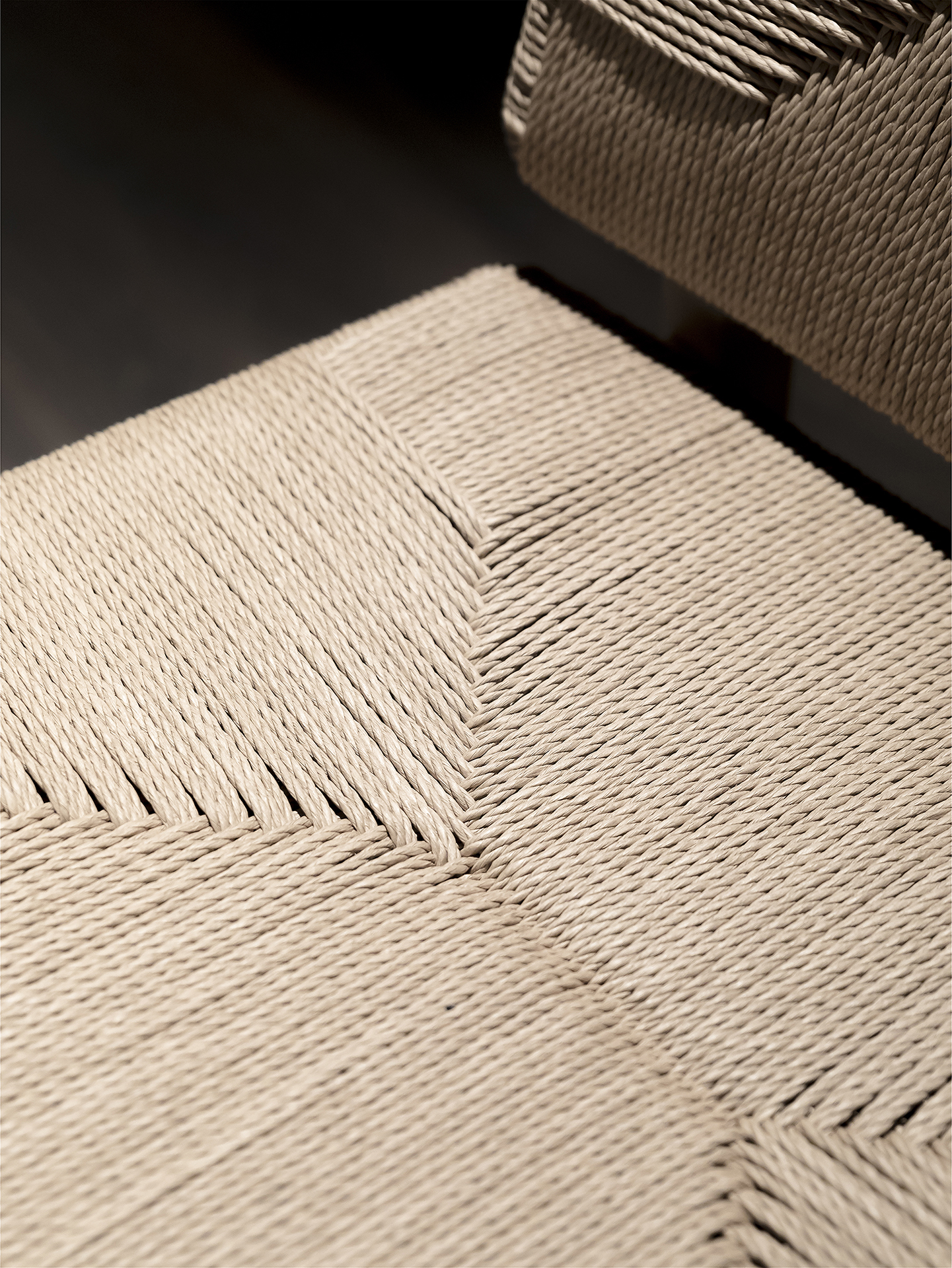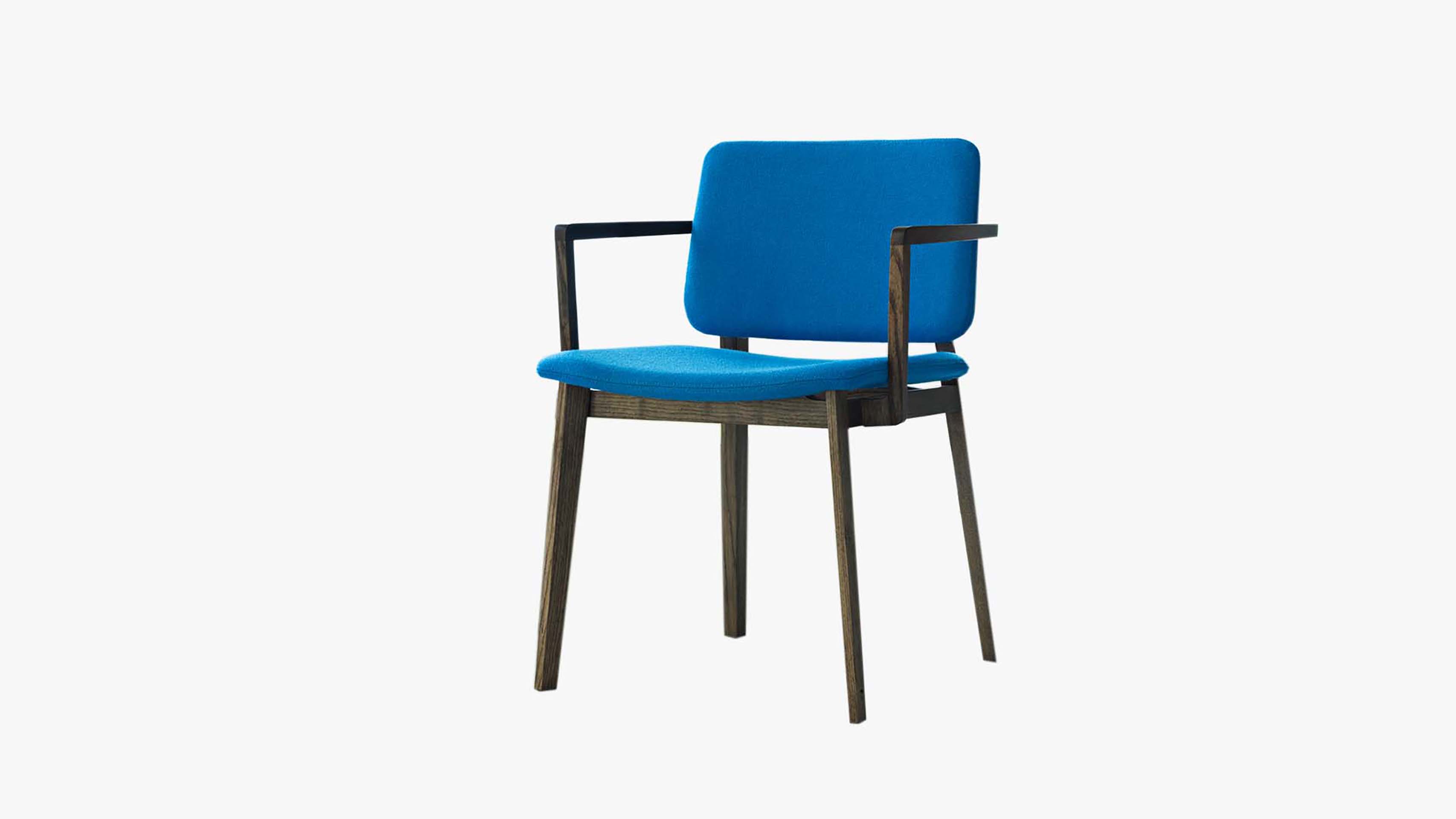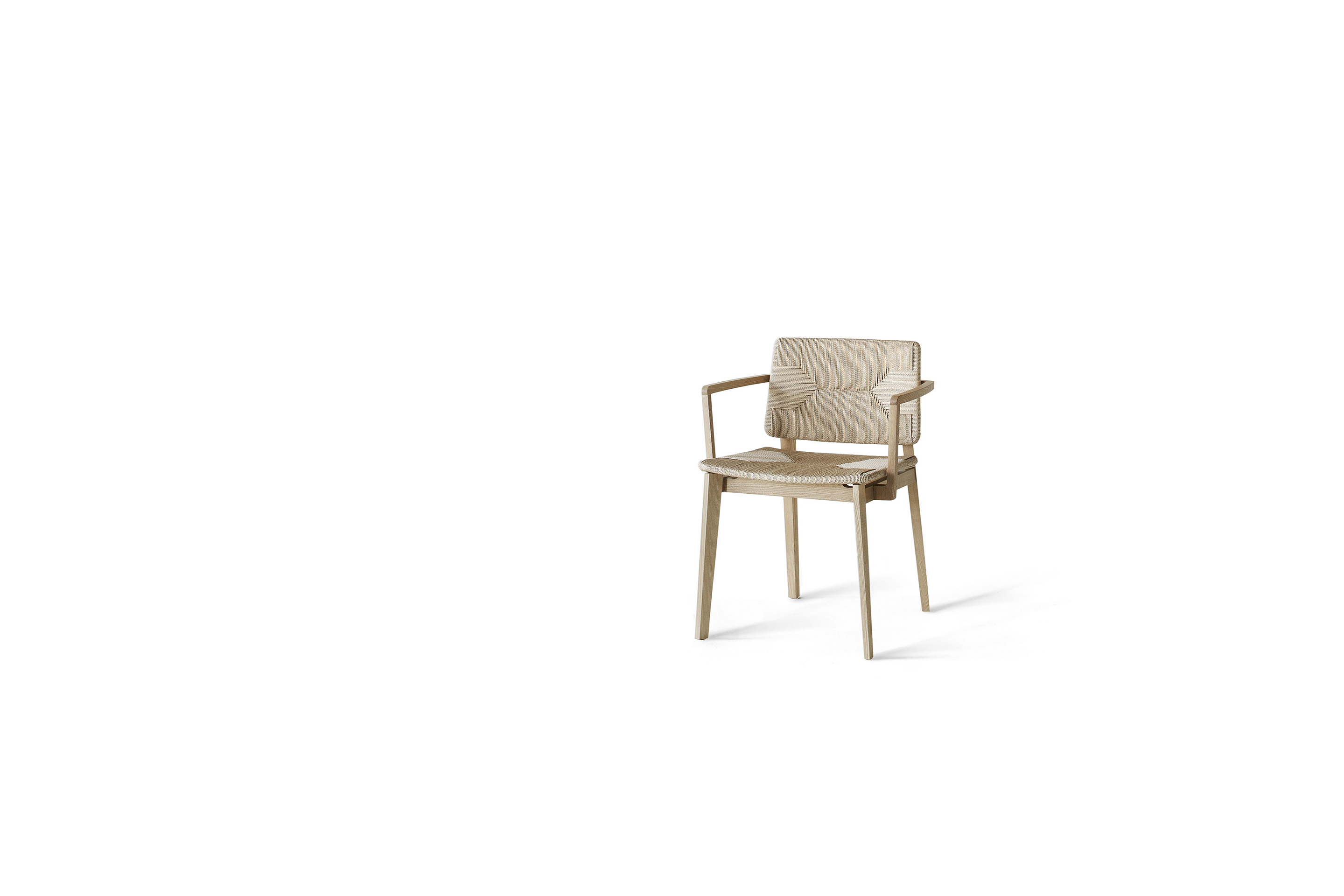 The rigorous design of the Hati chair creates a linear yet warm-looking seat. Available in numerous variants: chair or armchair, with backrest and seating in fabric, leather, eco-leather, twine or entirely in wood.