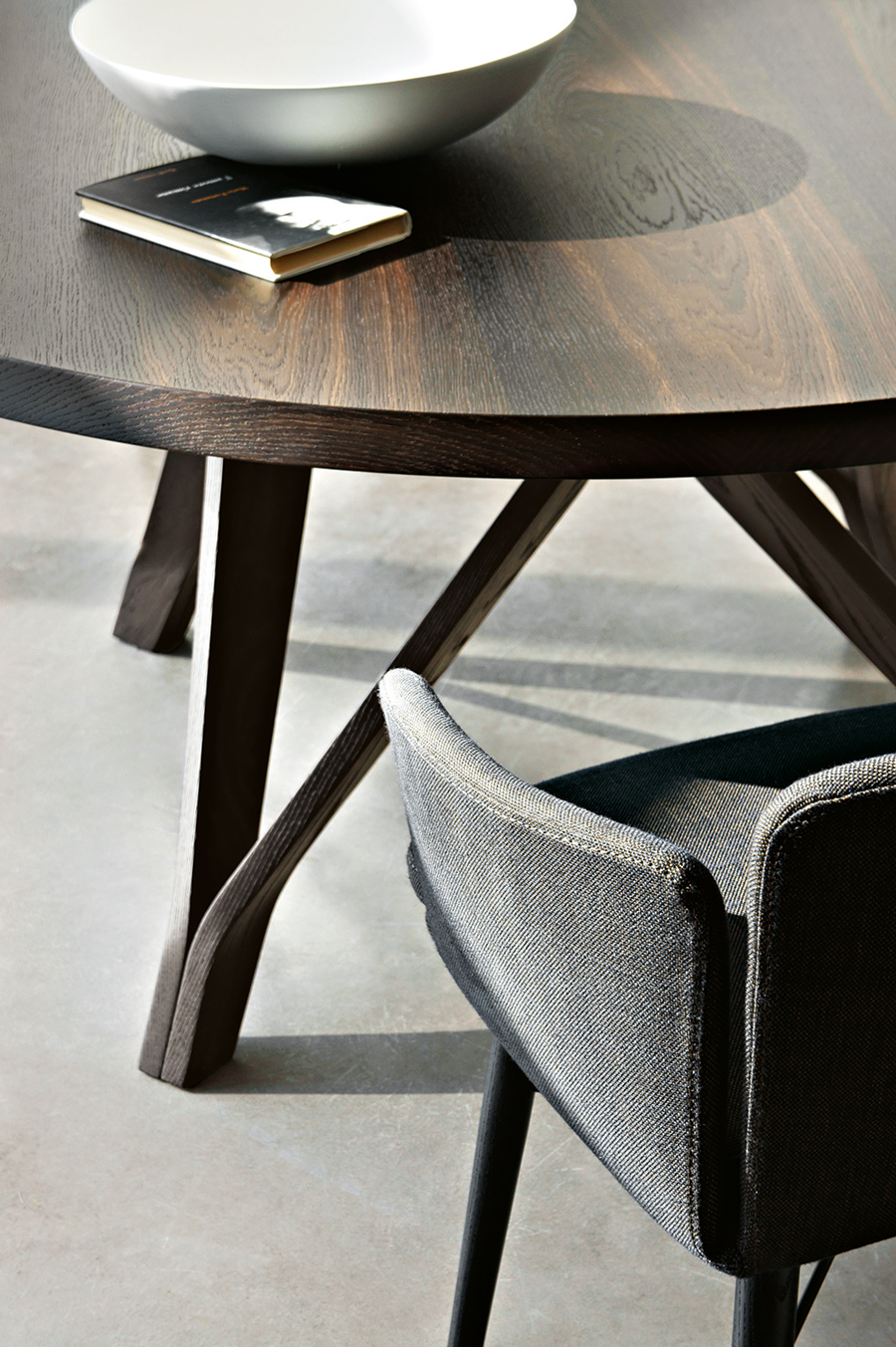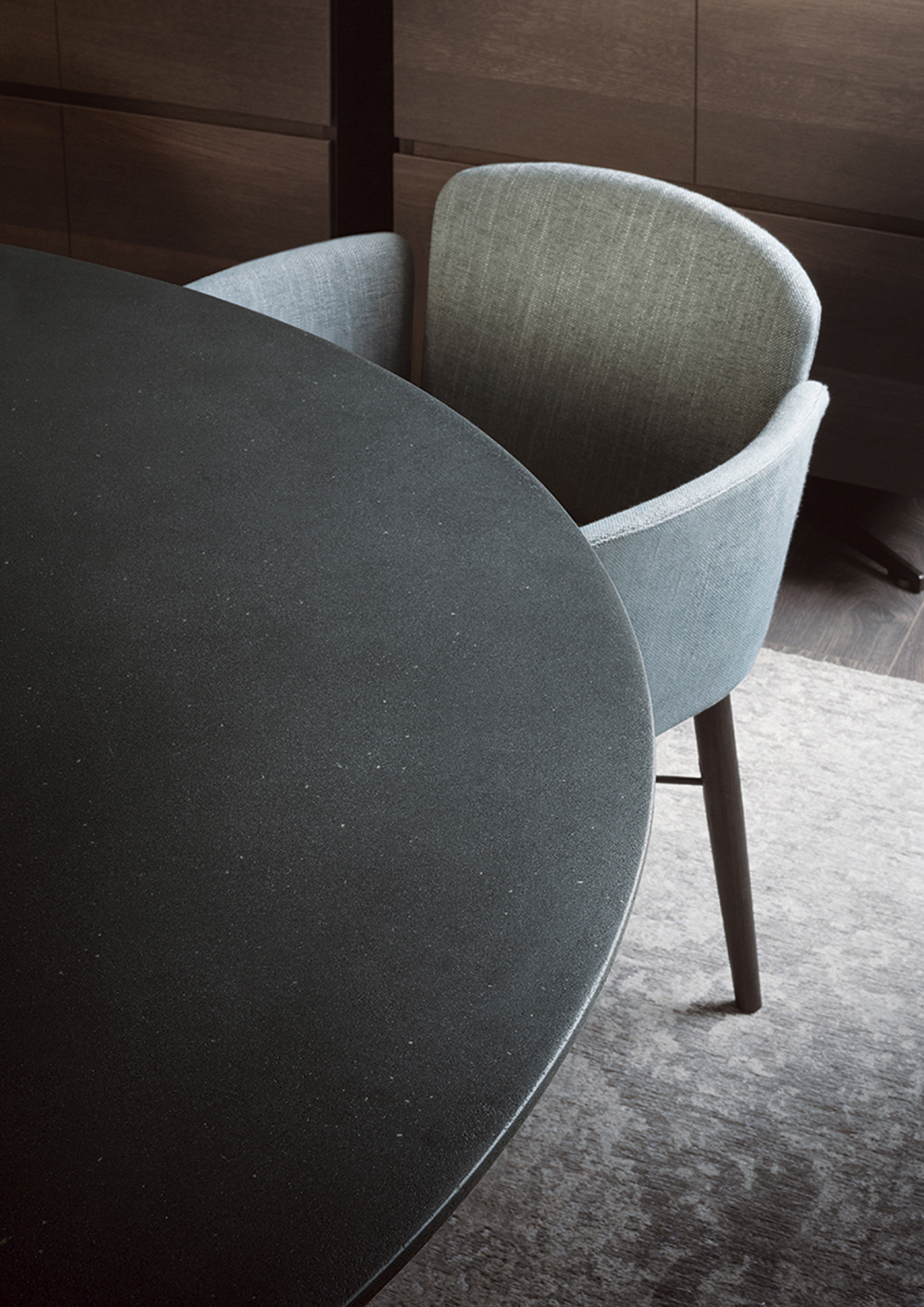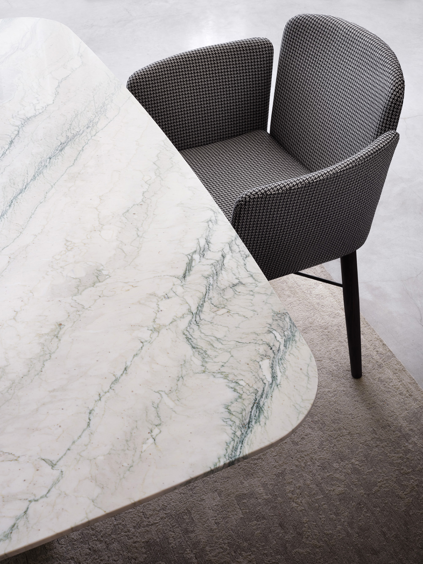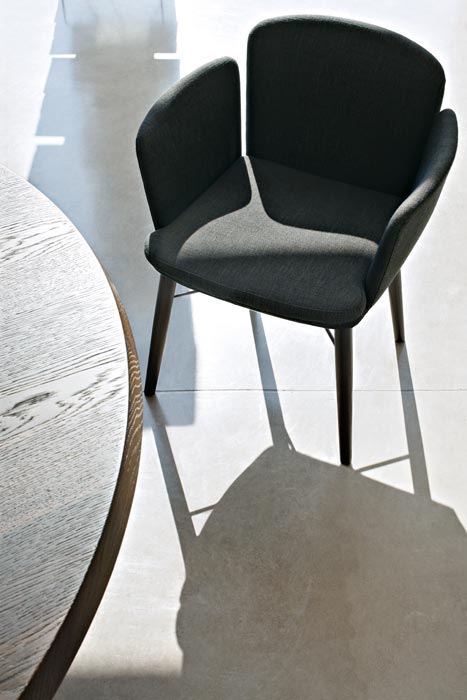 Elegant and refined, with a timeless allure, it stands out for the solid wood structure and cosy and harmonious forms of the seat proposed with leather upholstery with busted out stitching that underscore Lema’s tailoring approach. The comfortable padding adds to the softness.
