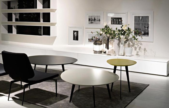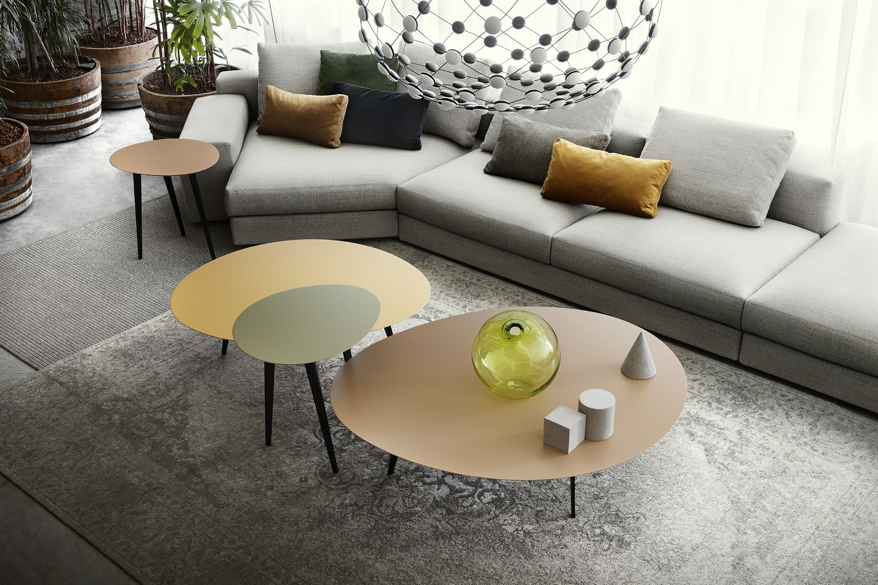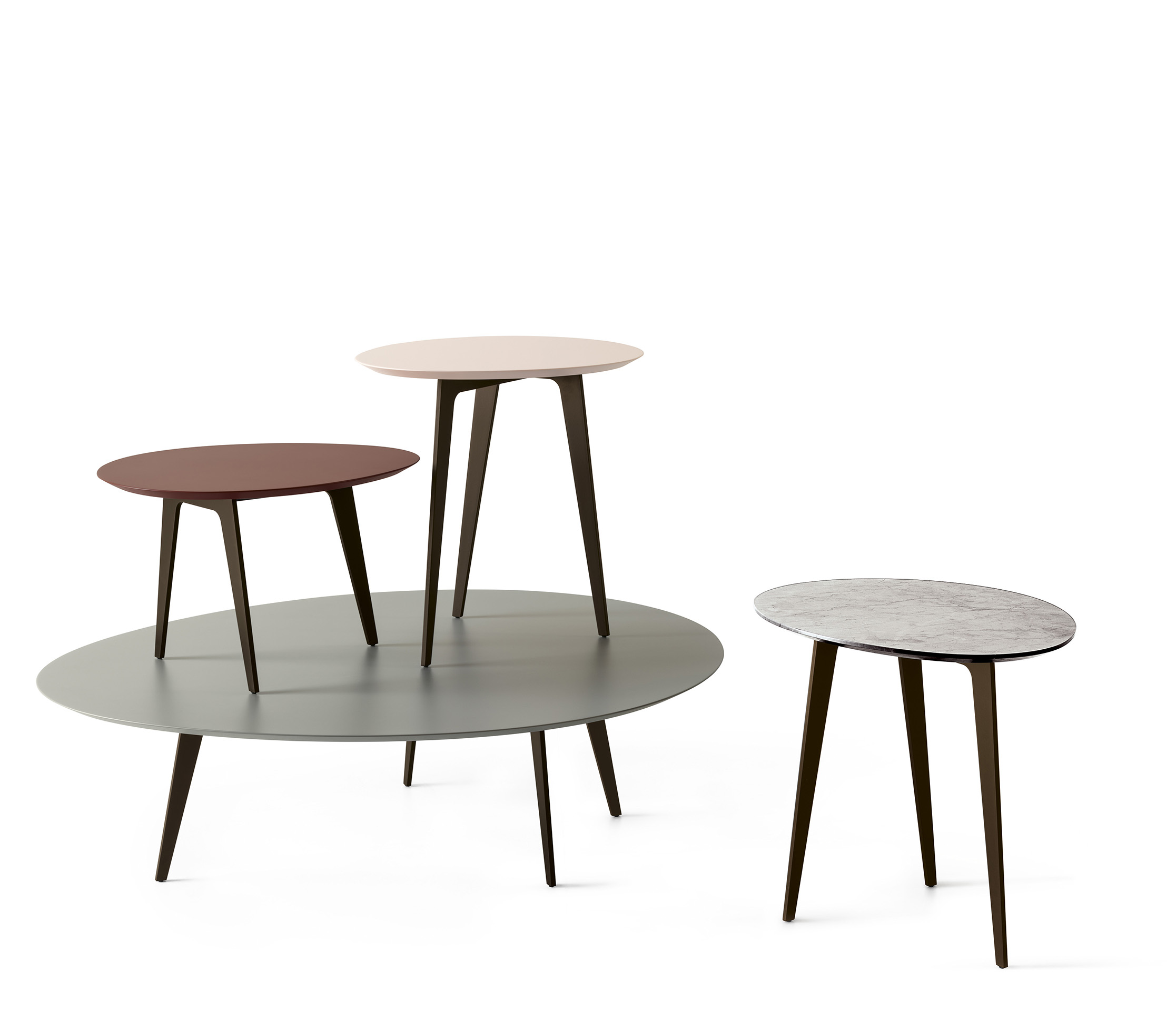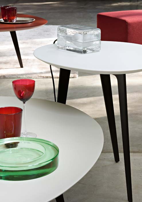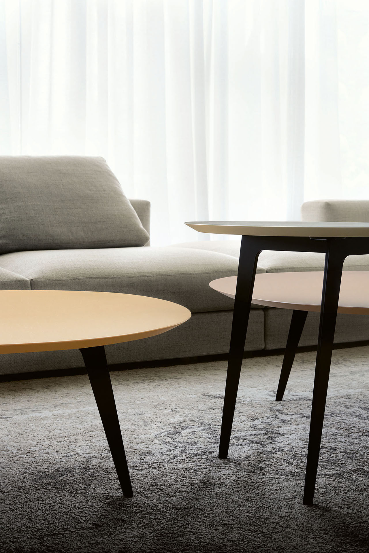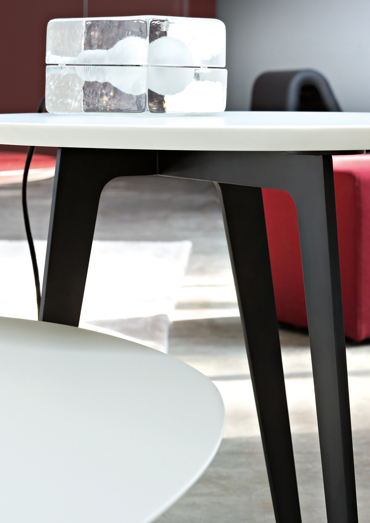 Lacquered wood petals rest gently on a metal structure creating a lightweight, 50s touch of design. The lacquered table top is available in over 40 colours from Lema’s collection, in 2 heights and 4 dimensions. The Flowers table can also be used alone or joined.