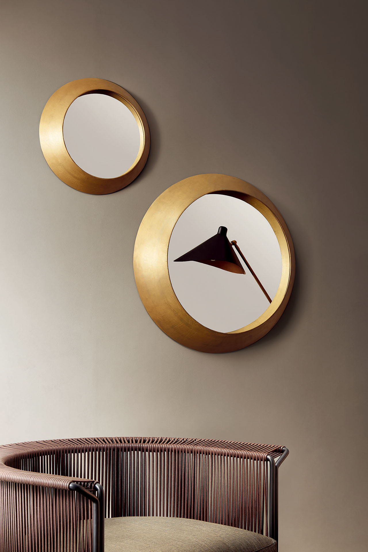 Designed by Andrea Mancuso, Oculus is a mirror inspired by poetic language that is based on the sense of irony and surprise. It goes beyond its basic function. Oculus is a sculptured object that amazes the viewer who is reflected in it. The enigmatic shape consists of a sphere section that has a circular opening with the mirror nestling inside. The perception of its shape varies according to the viewpoint, creating a hypnotic play of reflections.