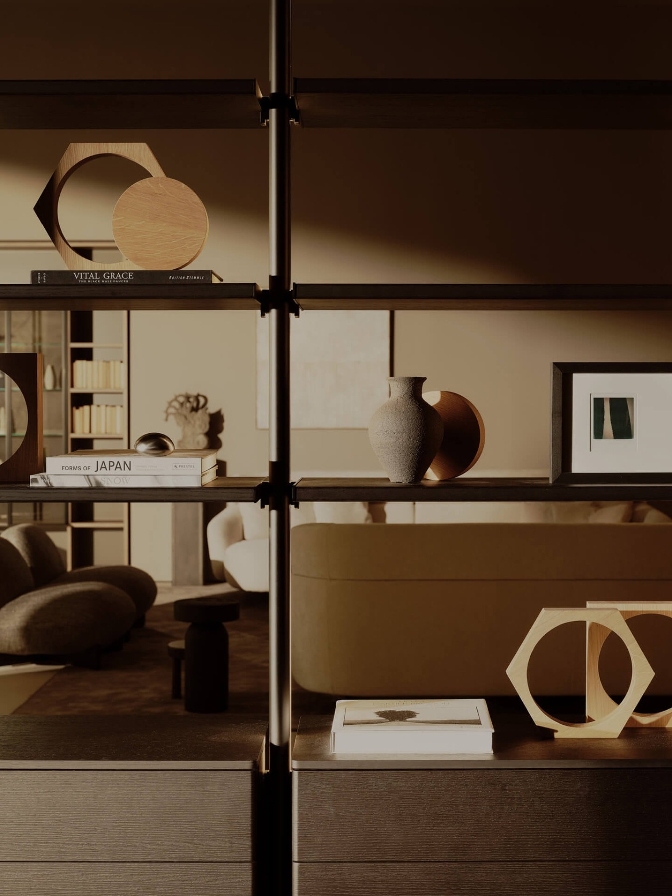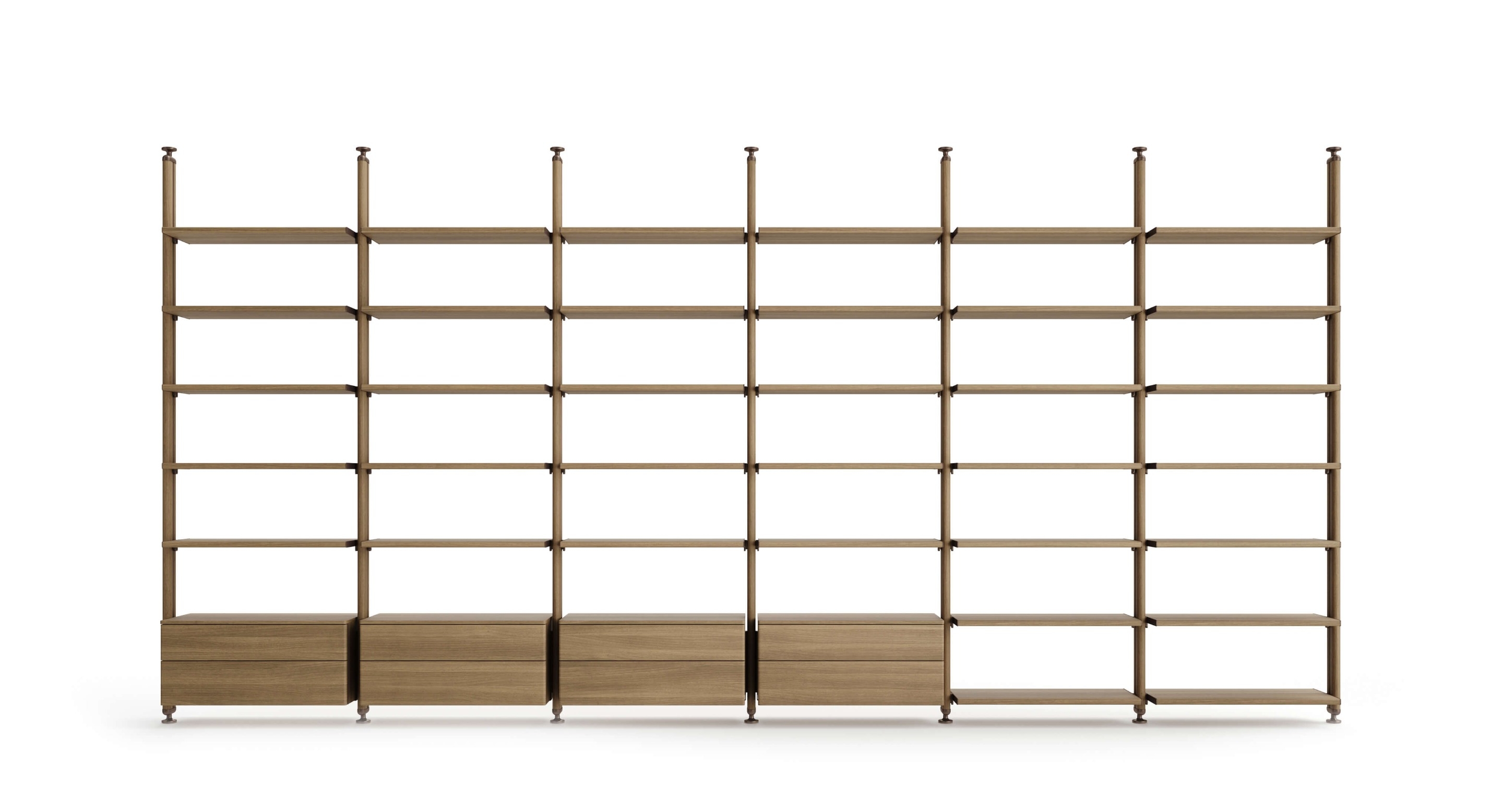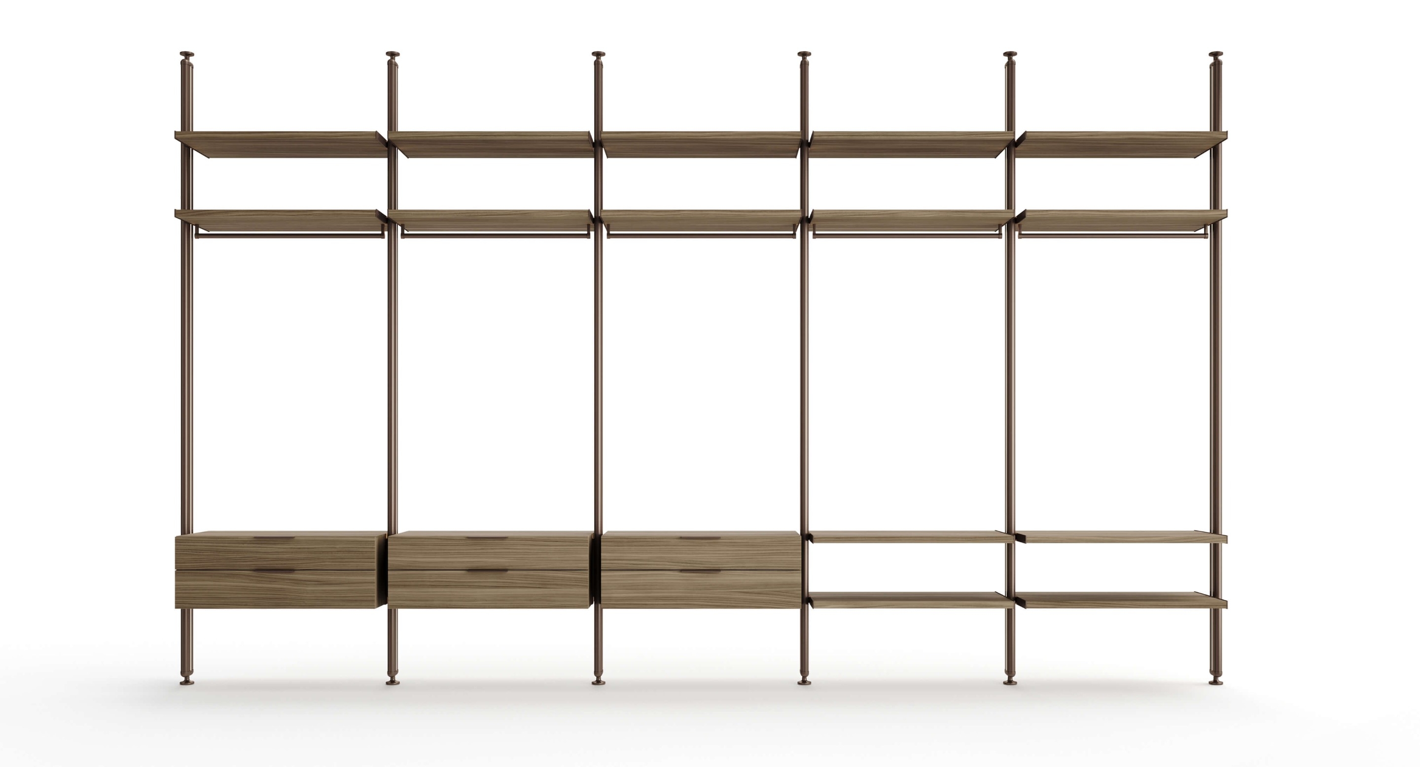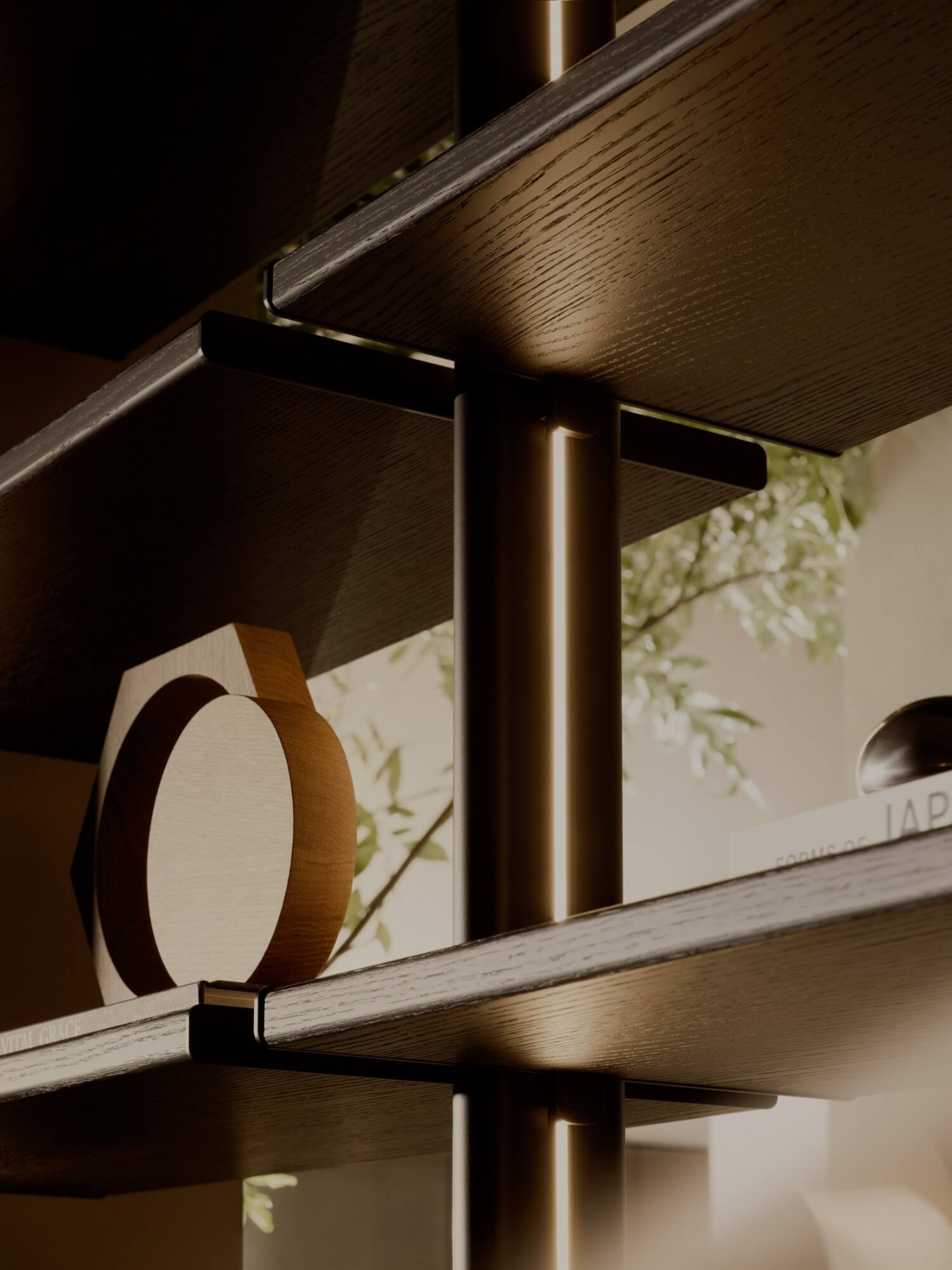 L25 is a sleek freestanding system that combines modular shelving and storage with minimalist design. Its vertical aluminium uprights create a dynamic, lightweight structure, adaptable in both floor-to-ceiling and floor-to-wall setups. Perfect for living or bedroom spaces, L25 integrates seamlessly with the Selecta system and VentiTre wardrobe, ensuring visual harmony and practical storage.