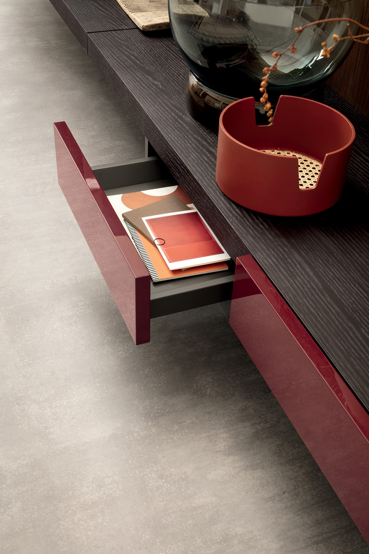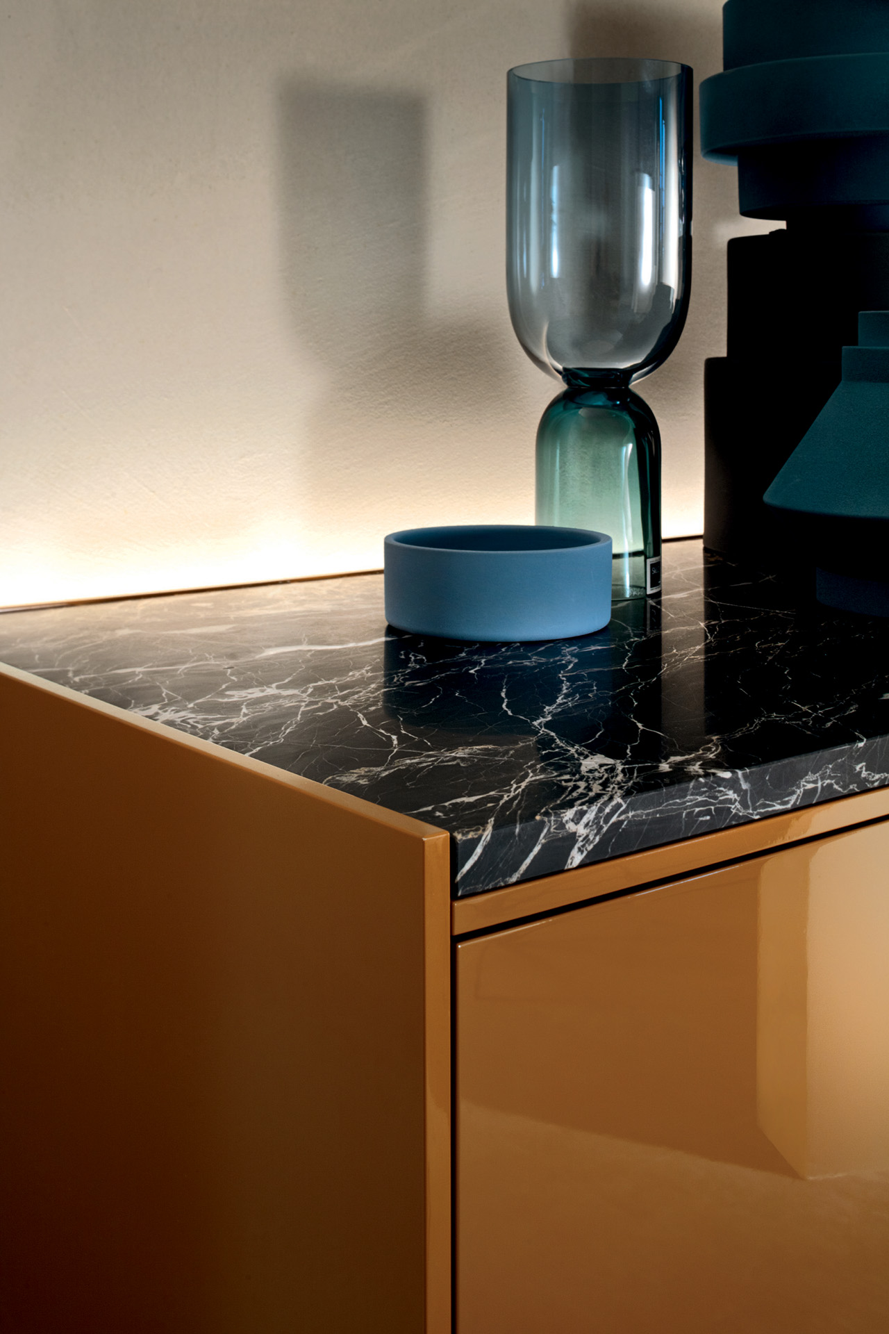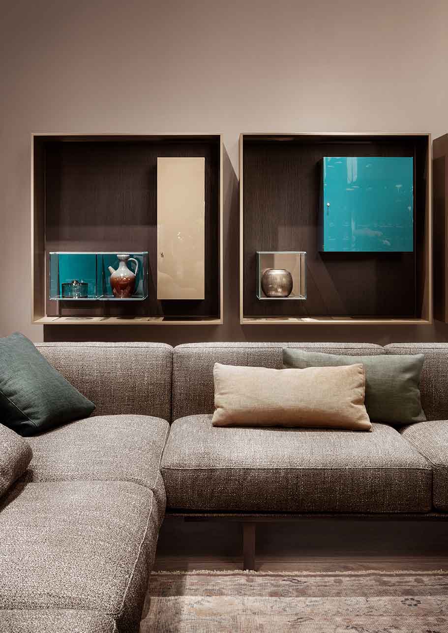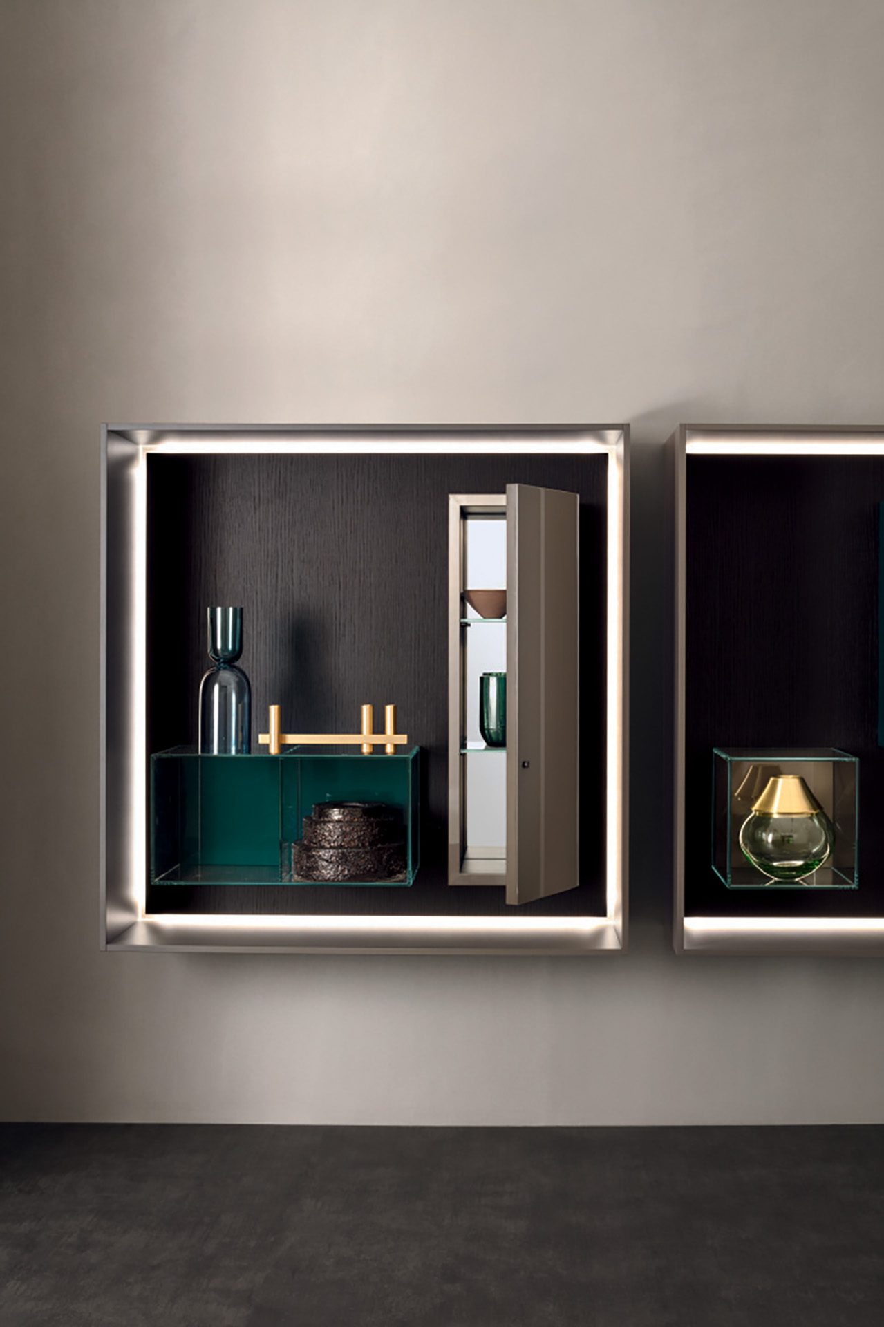 Designed by David Lopez Quincoces, the LT40 System is a modular collection of storage and wall elements available in four configurations: freestanding, wall-mounted, suspended, and the textured W Line. It includes a variety of components—benches, media units, aluminium-framed shelves, marble tops, and built-in LED lighting—offering extensive customisation. The LT_FRAME units add graphic impact with mosaic-like compositions framed in six predefined layouts. With a wide palette of finishes including wood, glass, lacquer, and stone, LT40 brings tailored elegance to modern living.
