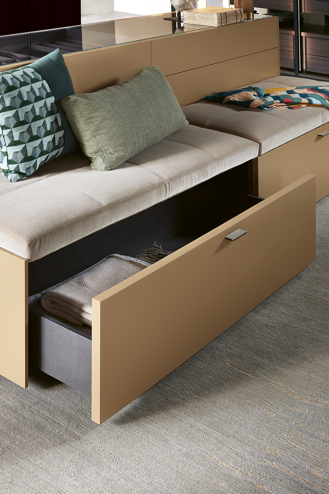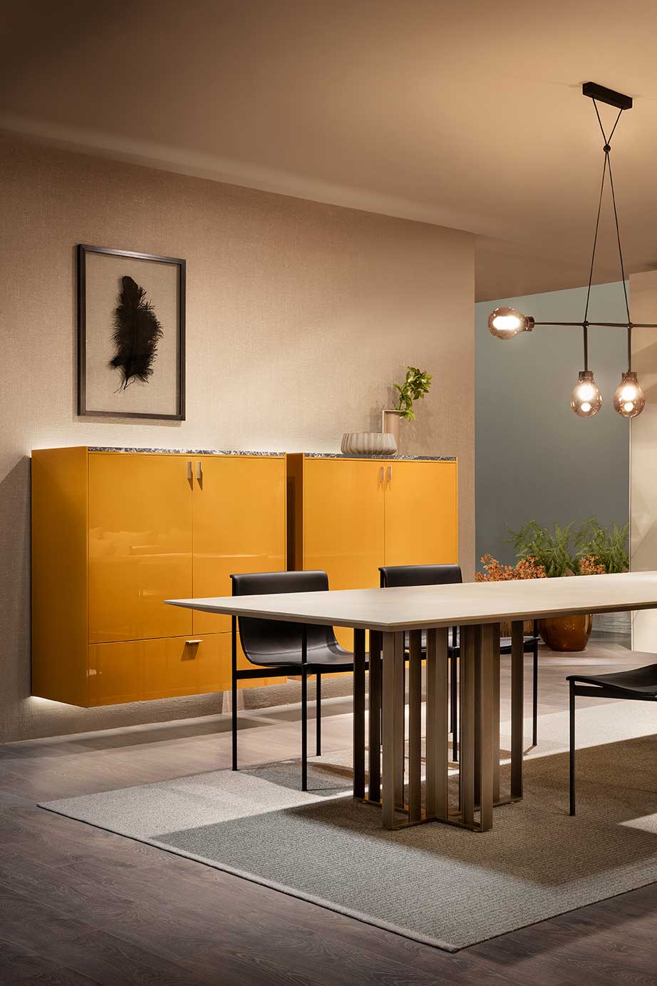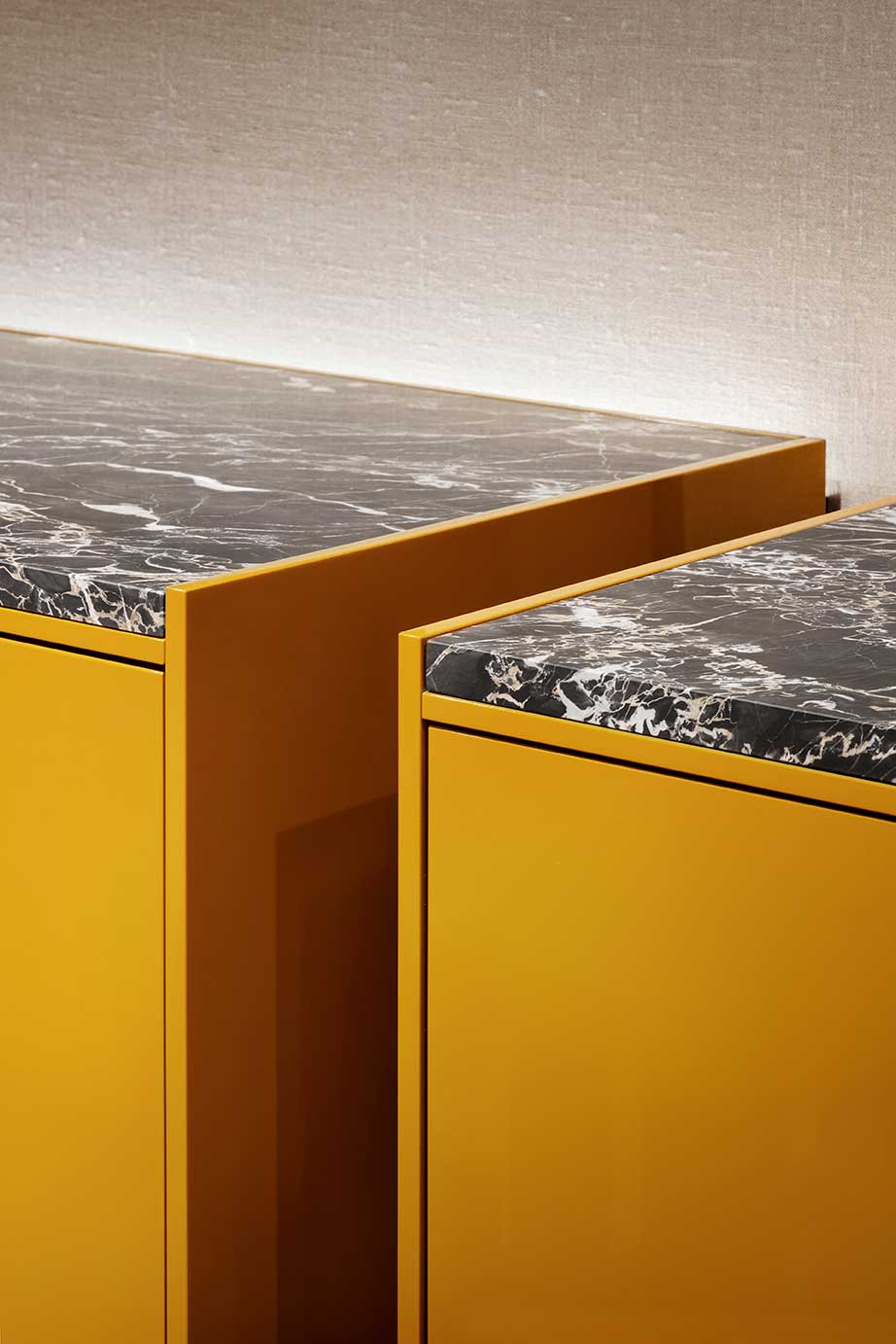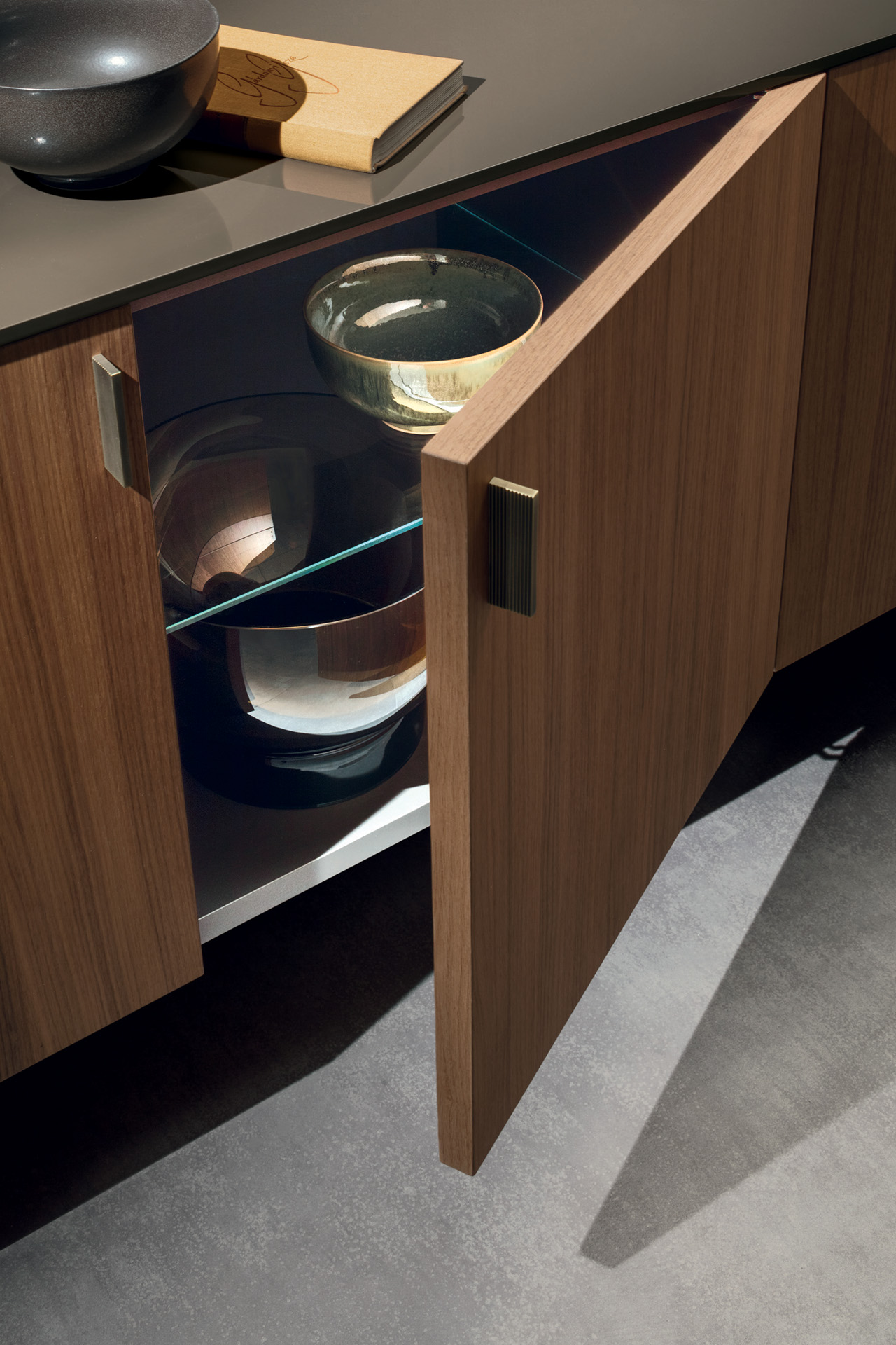 Designed by David Lopez Quincoces, the LT40 System is a modular collection of storage and wall elements available in four configurations: freestanding, wall-mounted, suspended, and the textured W Line. It includes a variety of components—benches, media units, aluminium-framed shelves, marble tops, and built-in LED lighting—offering extensive customisation. The LT_FRAME units add graphic impact with mosaic-like compositions framed in six predefined layouts. With a wide palette of finishes including wood, glass, lacquer, and stone, LT40 brings tailored elegance to modern living.