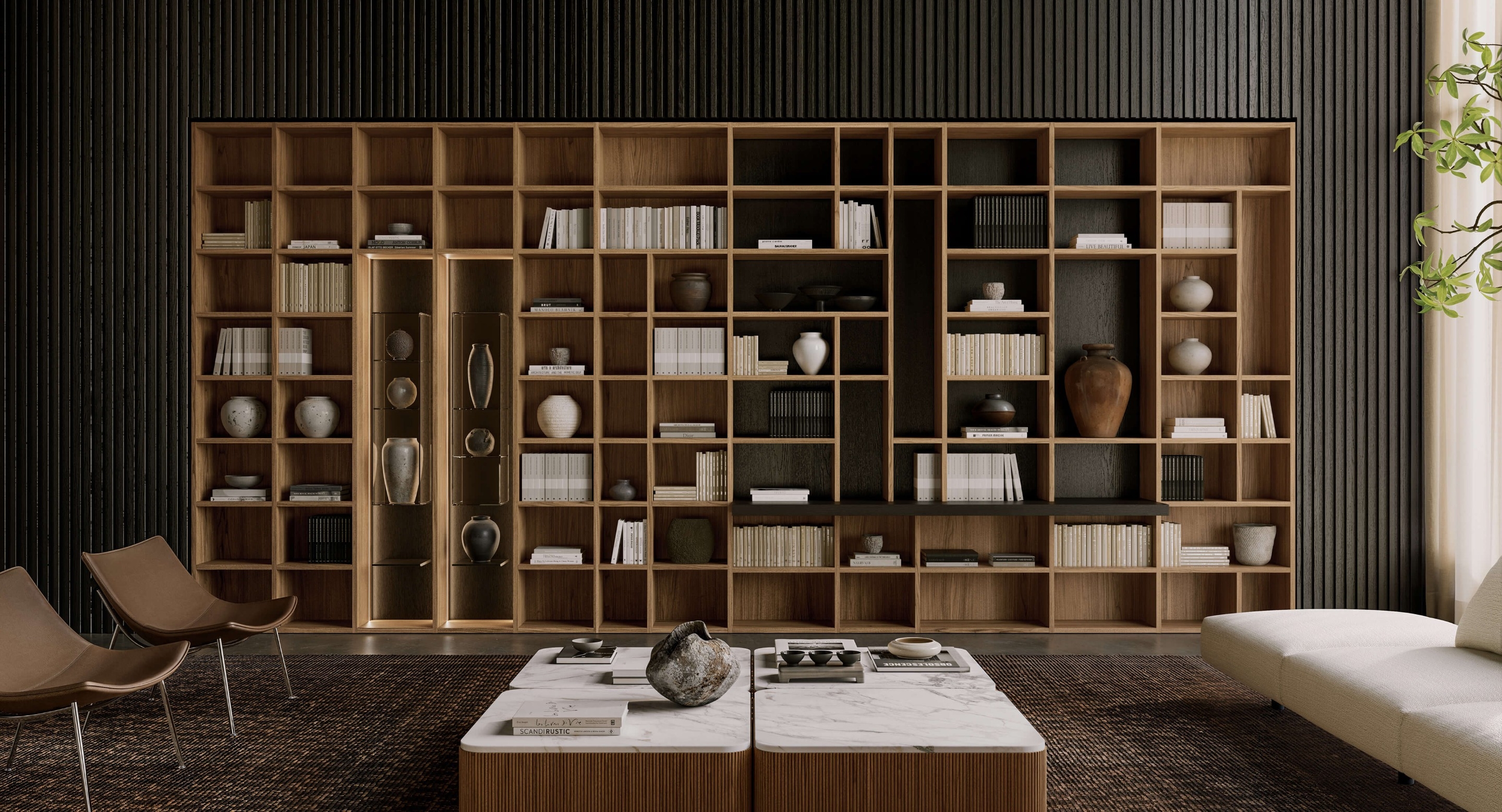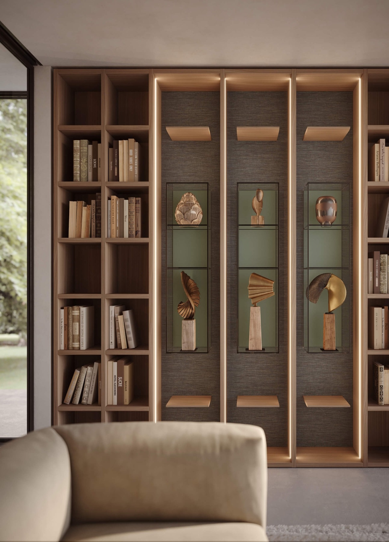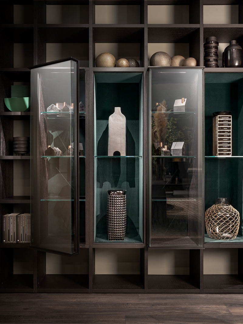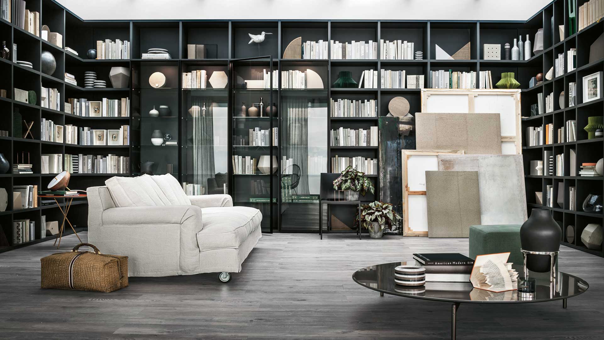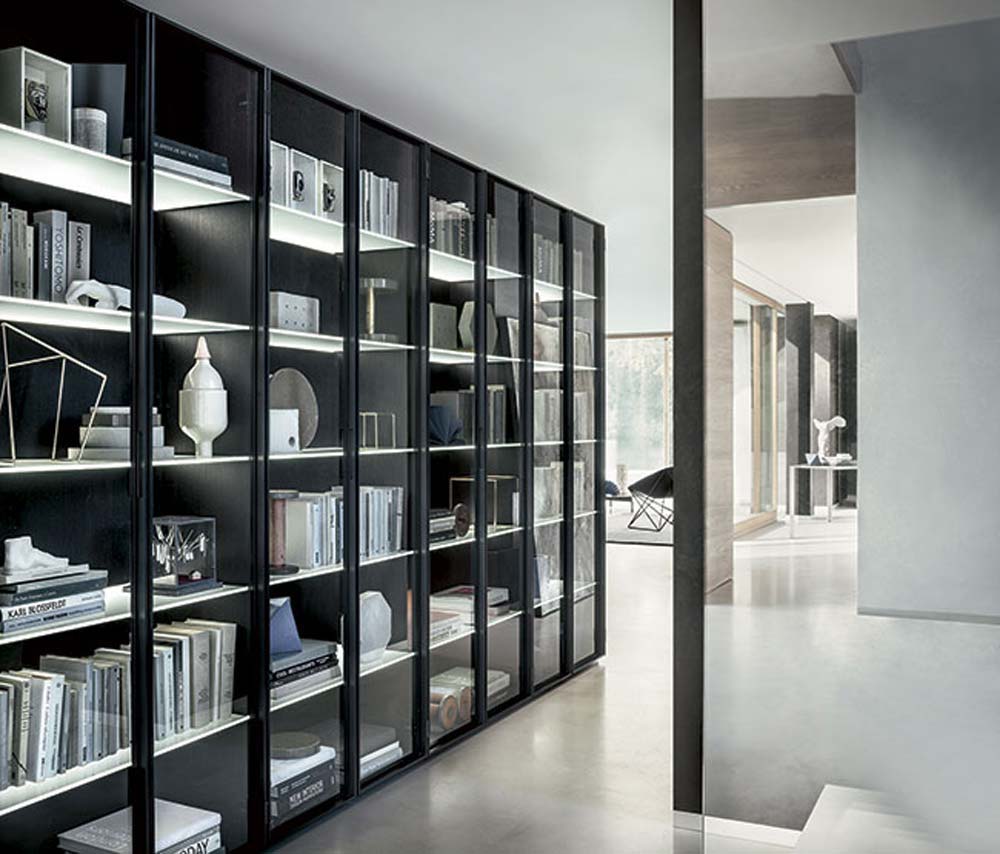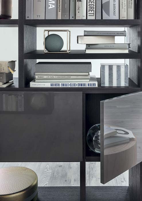 Selecta is the evolution of the first Italian freestanding system, designed by Lema in 1978 and continues its evolution over thirty years later. Bookcase par excellence, Selecta was the first product to turn itself into an actual ad hoc product that fully exploited cutting-edge corporate mechanization processes. Service and transit spaces, double-height rooms, attics, space under staircases do not represent restrictions but opportunities. The compositional possibilities are virtually endless: doors and containers can be added to the open shelves for a more varied and comprehensive use.