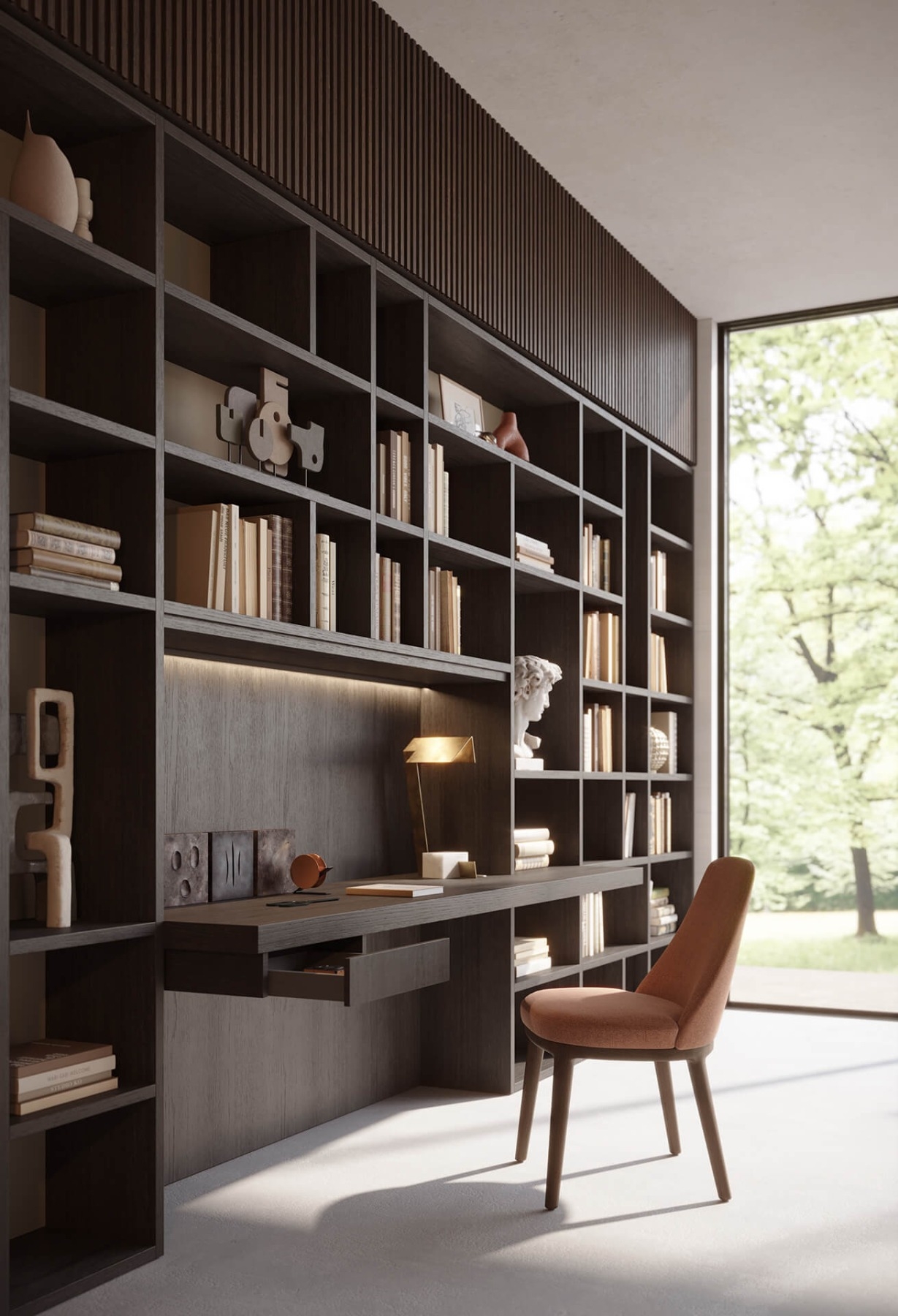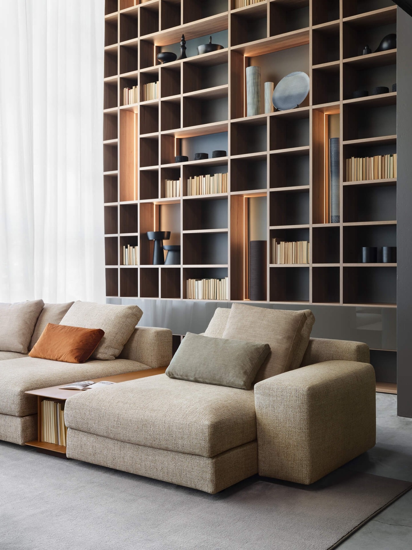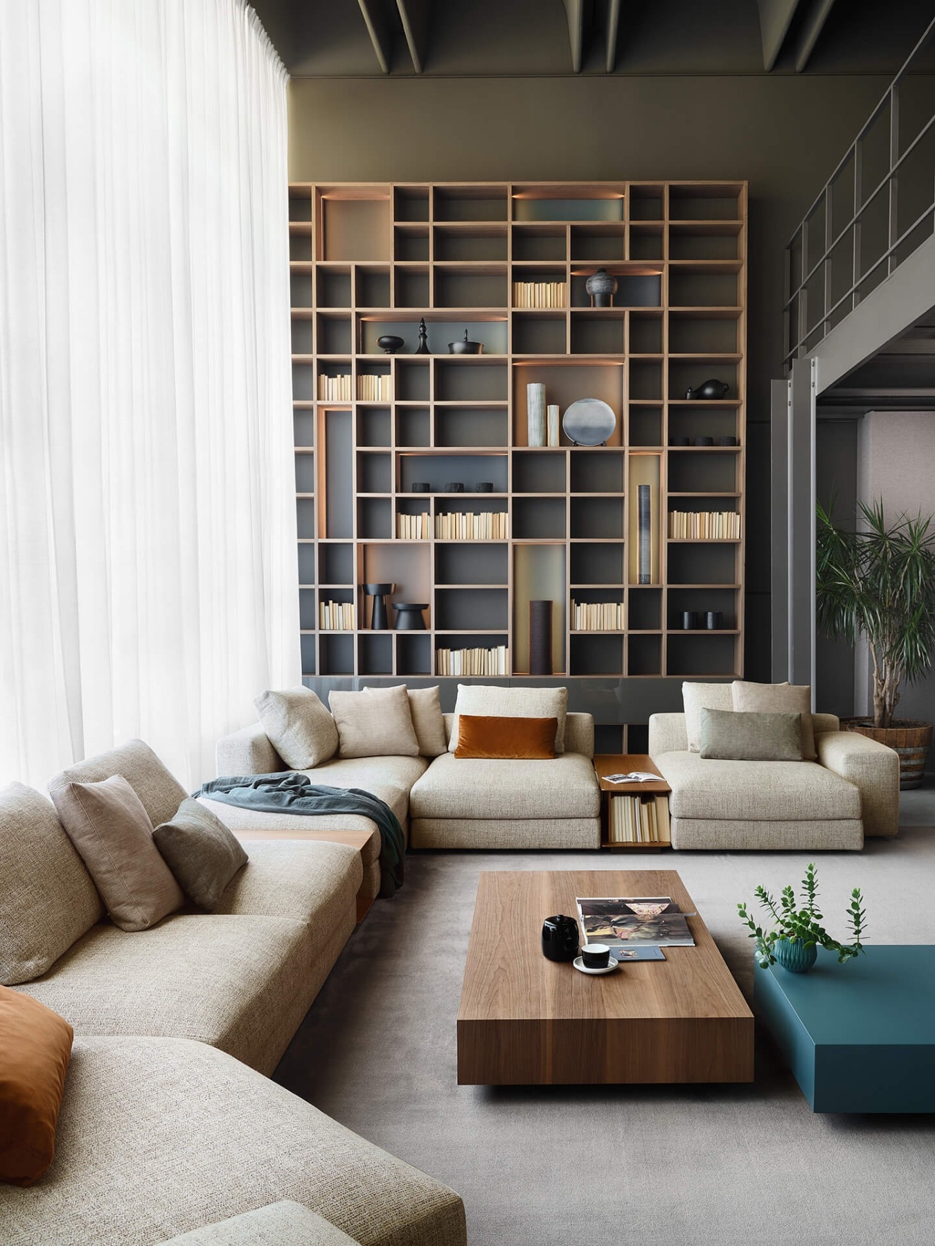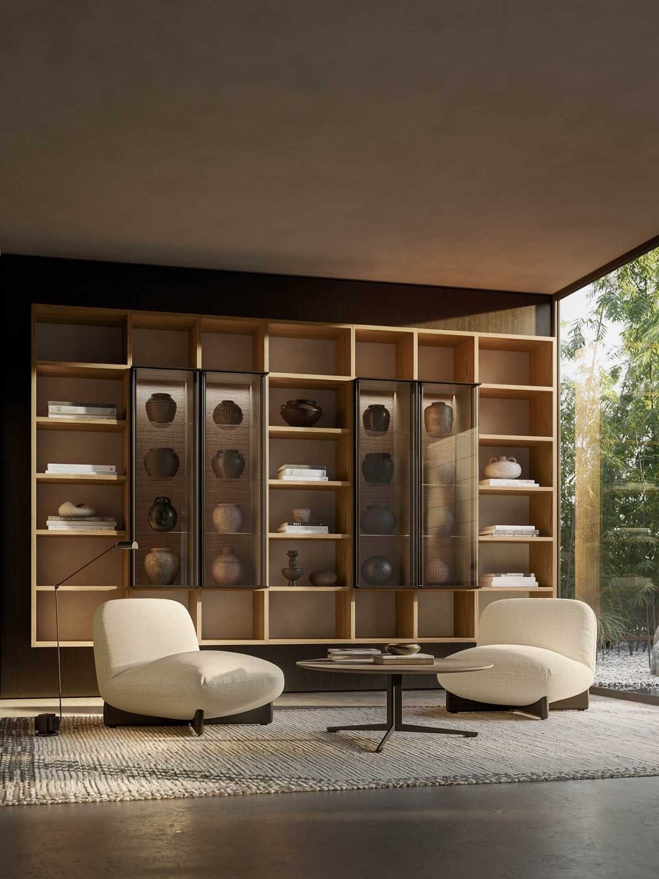 Selecta is the evolution of the first Italian freestanding system, designed by Lema in 1978 and continues its evolution over thirty years later. Bookcase par excellence, Selecta was the first product to turn itself into an actual ad hoc product that fully exploited cutting-edge corporate mechanization processes. Service and transit spaces, double-height rooms, attics, space under staircases do not represent restrictions but opportunities. The compositional possibilities are virtually endless: doors and containers can be added to the open shelves for a more varied and comprehensive use.