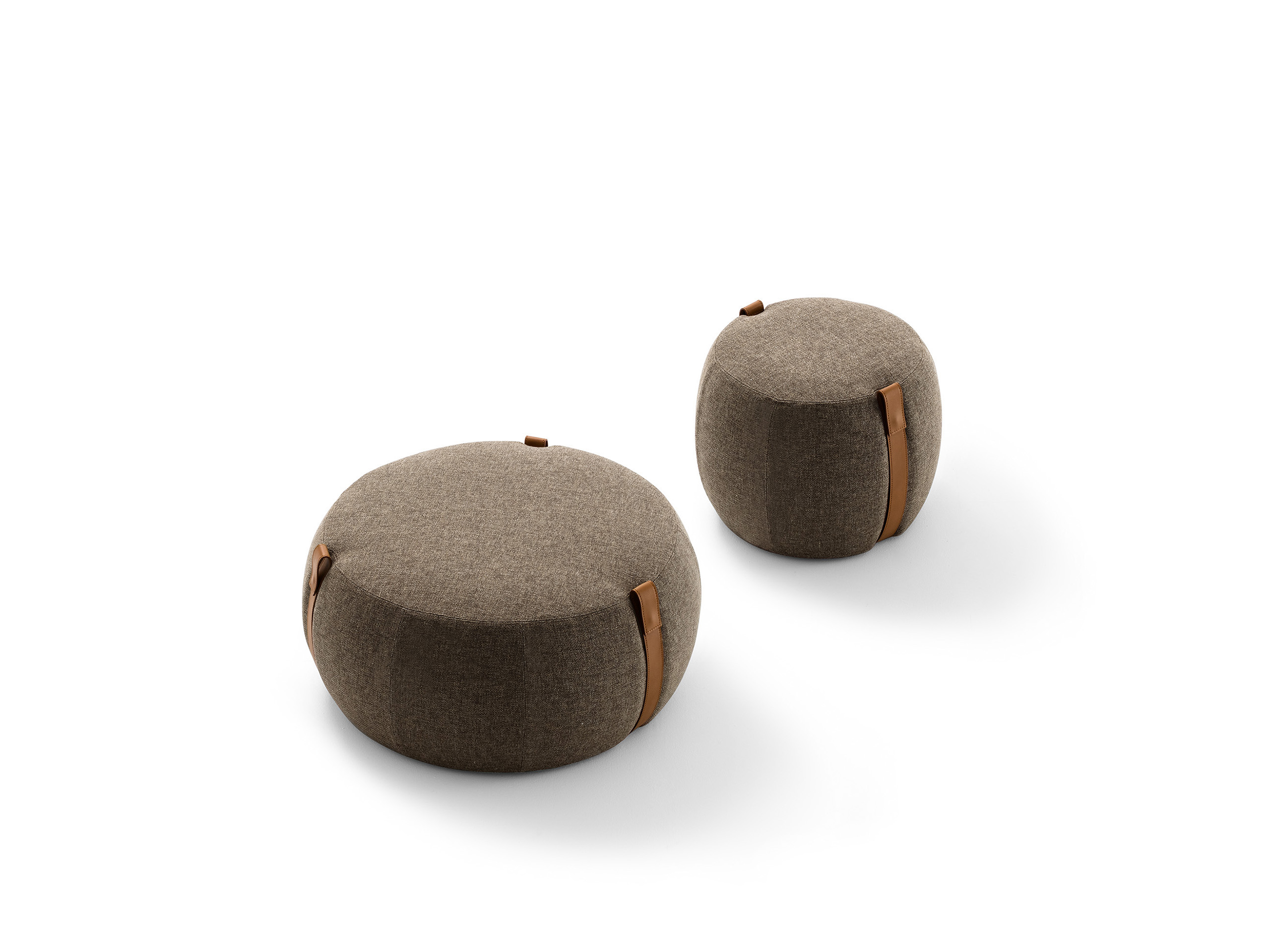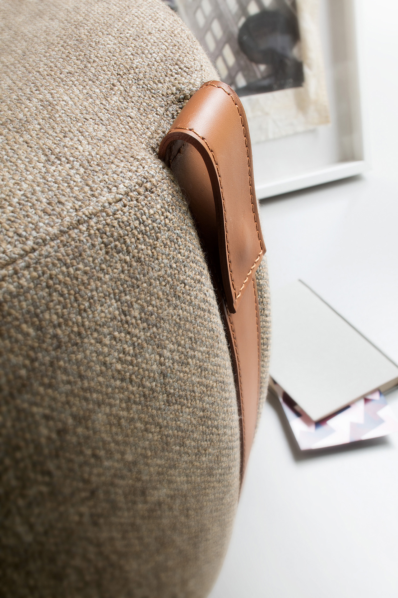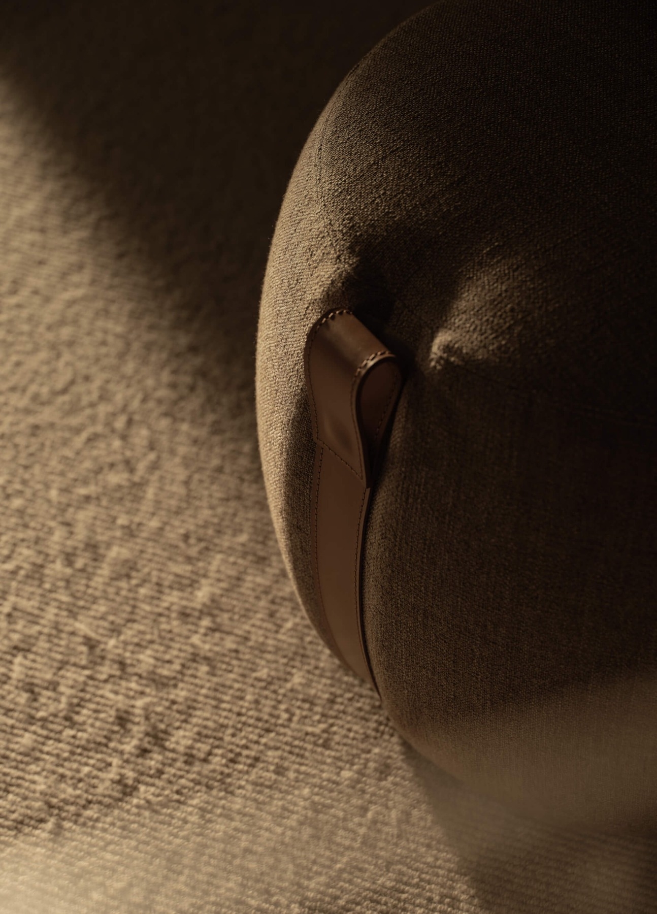 The Notch pouf influenced by the charm of modern nomadism is available in two sizes. Notch stands out for its soft fabric seat and aged natural leather handled straps – perfect for the home and contract spaces.