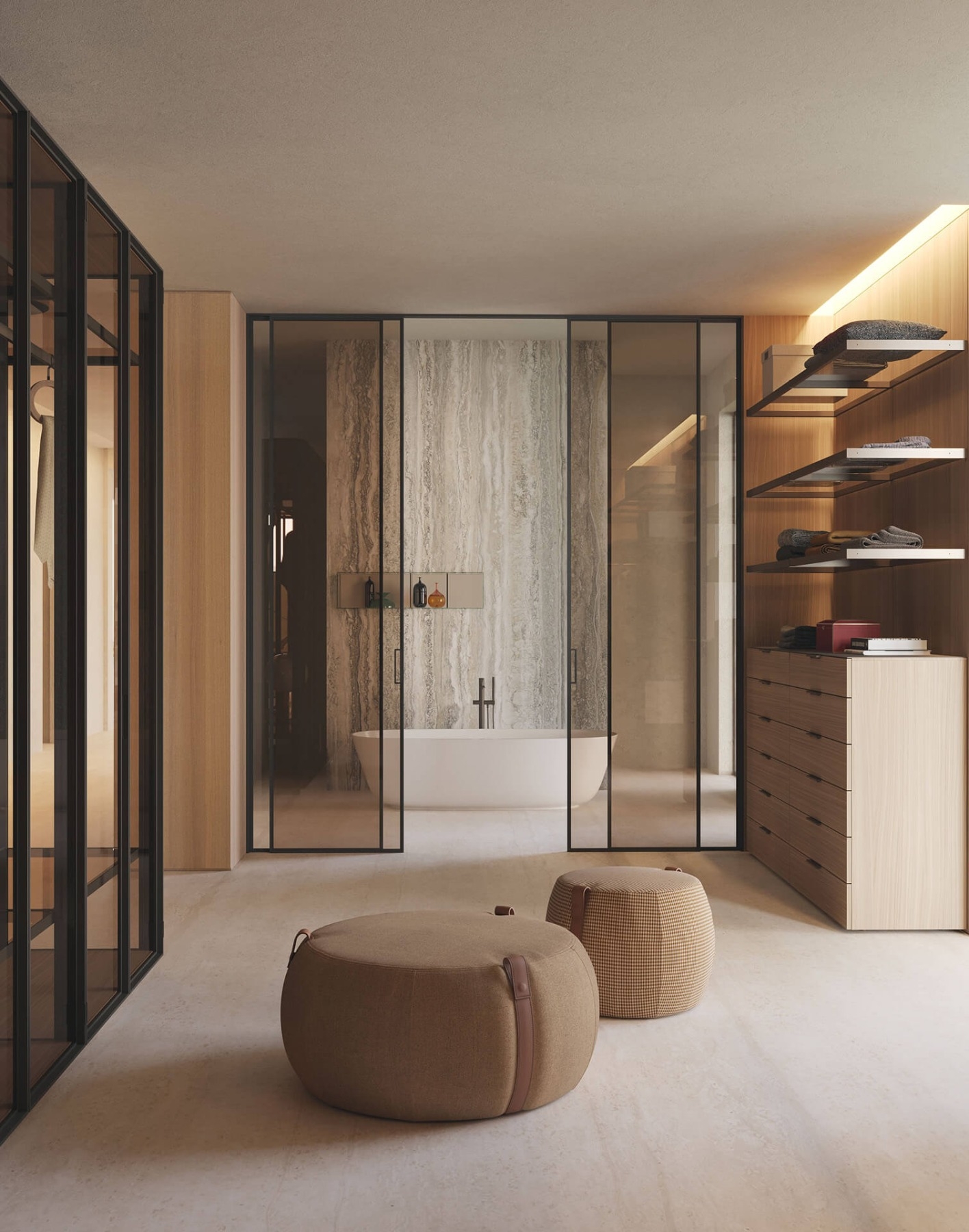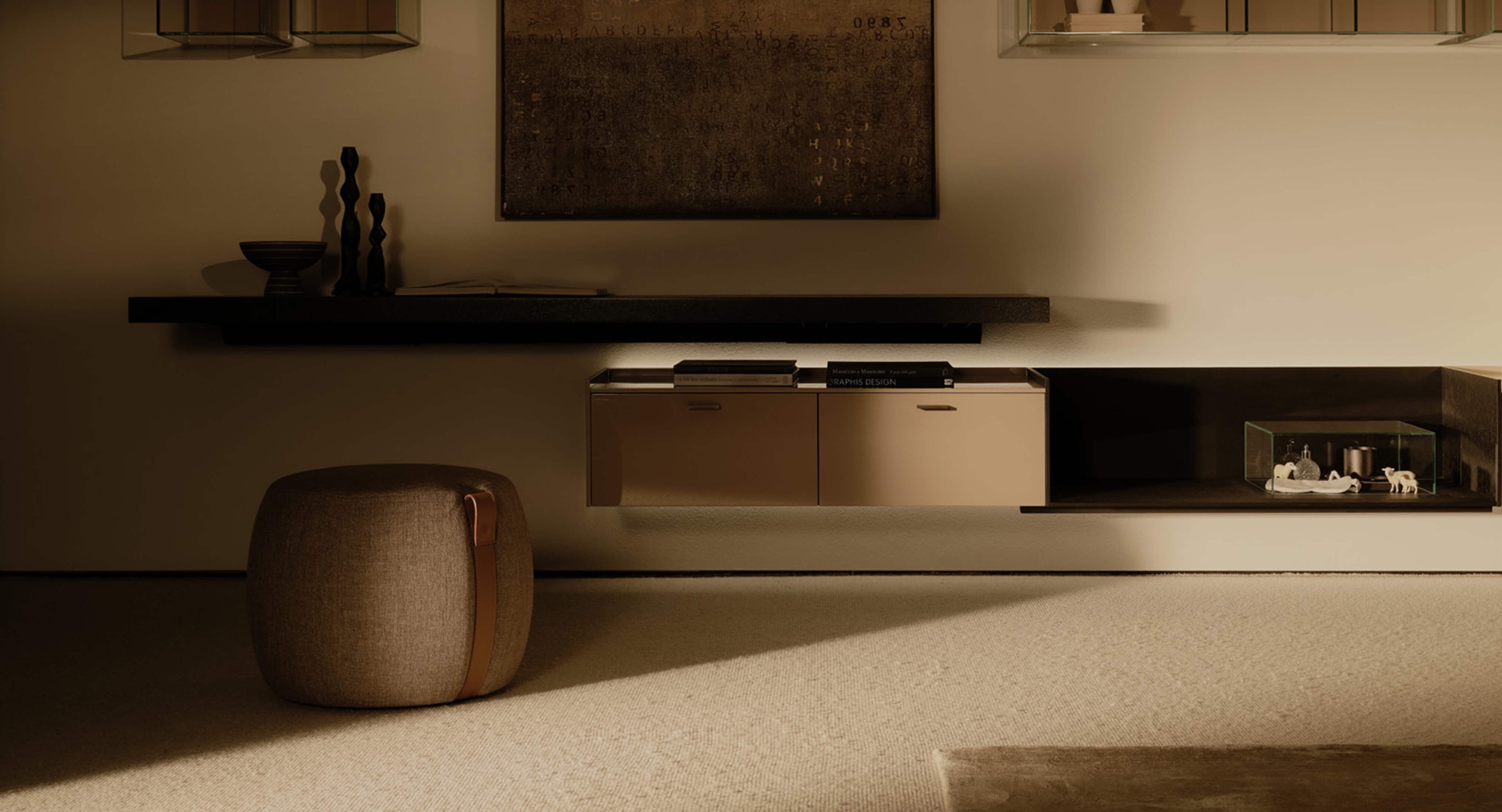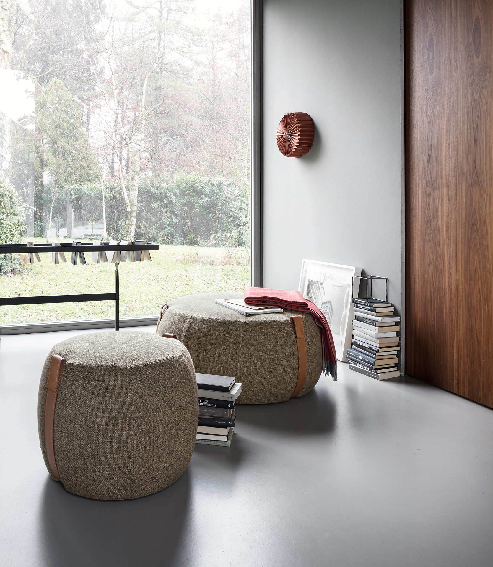 The Notch pouf influenced by the charm of modern nomadism is available in two sizes. Notch stands out for its soft fabric seat and aged natural leather handled straps – perfect for the home and contract spaces.