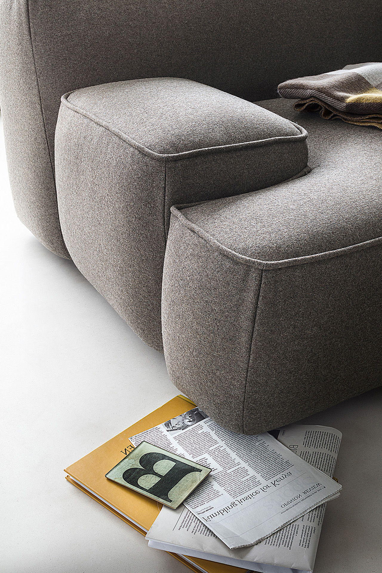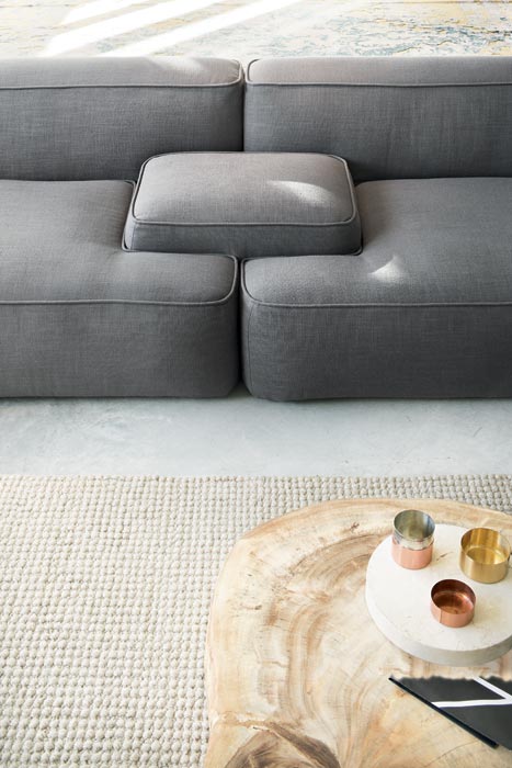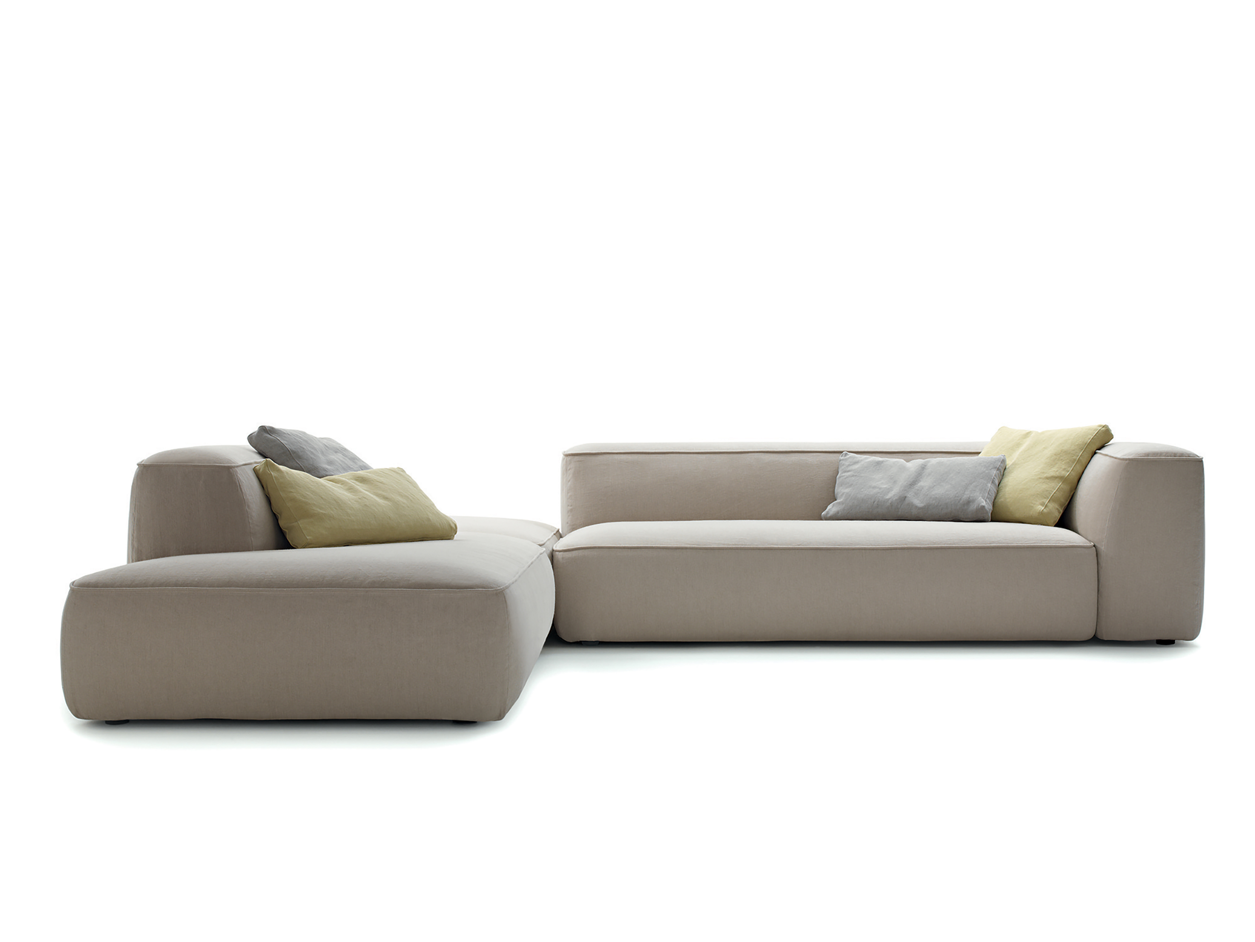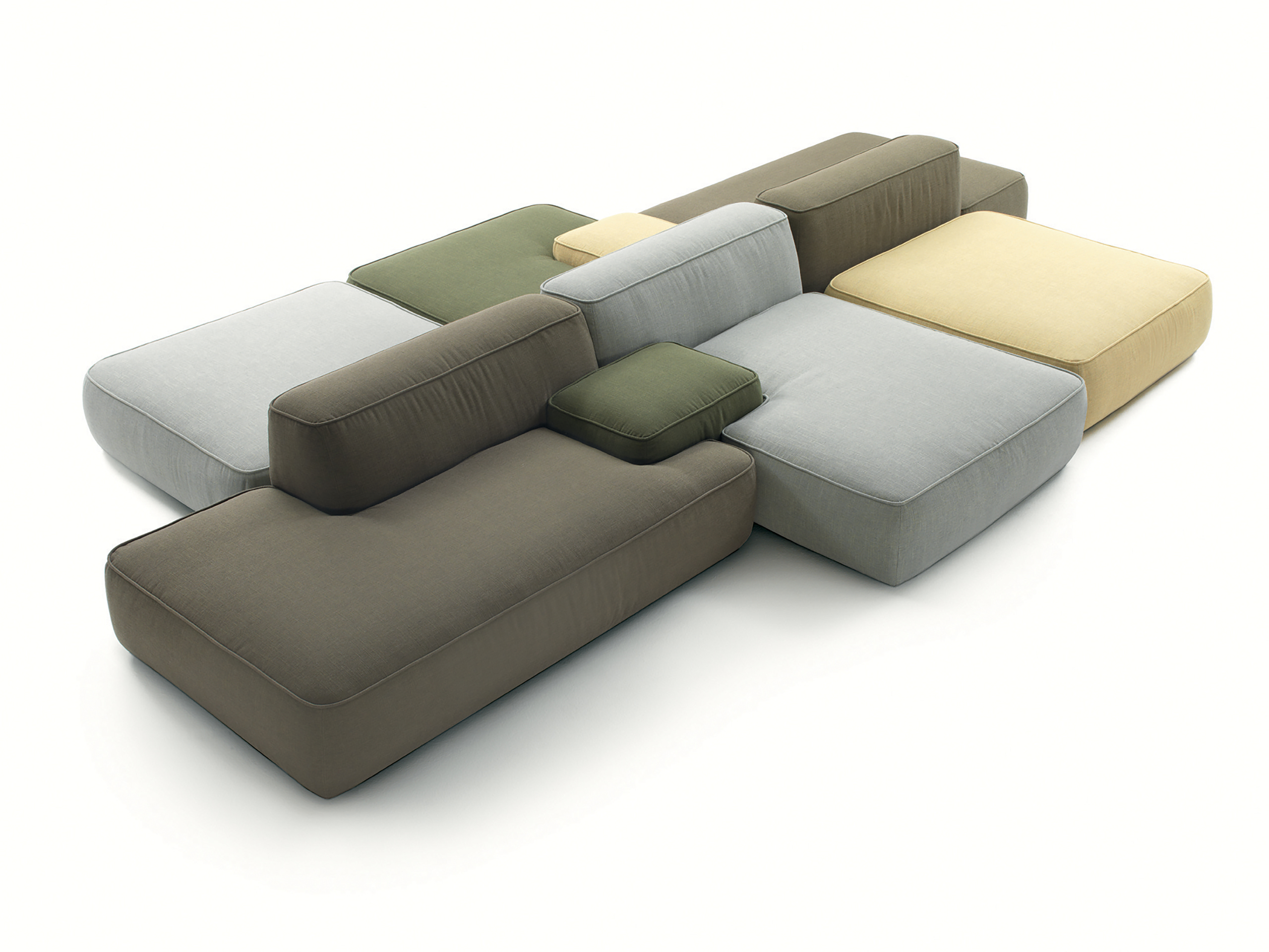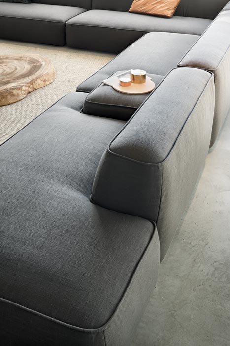 Cloud is a sofa designed as a big unit combining free and organic shapes with matched or opposing modules which offers an original solution for domestic living. Cloud has countless compositions with three different types of arm, different sizes, shapes and heights. Mix colours, in different fabrics and textures to obtain a unique sofa.