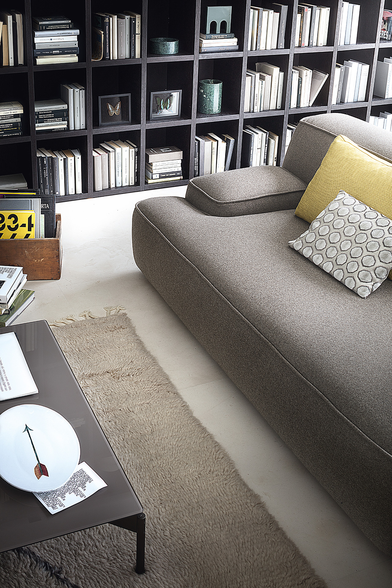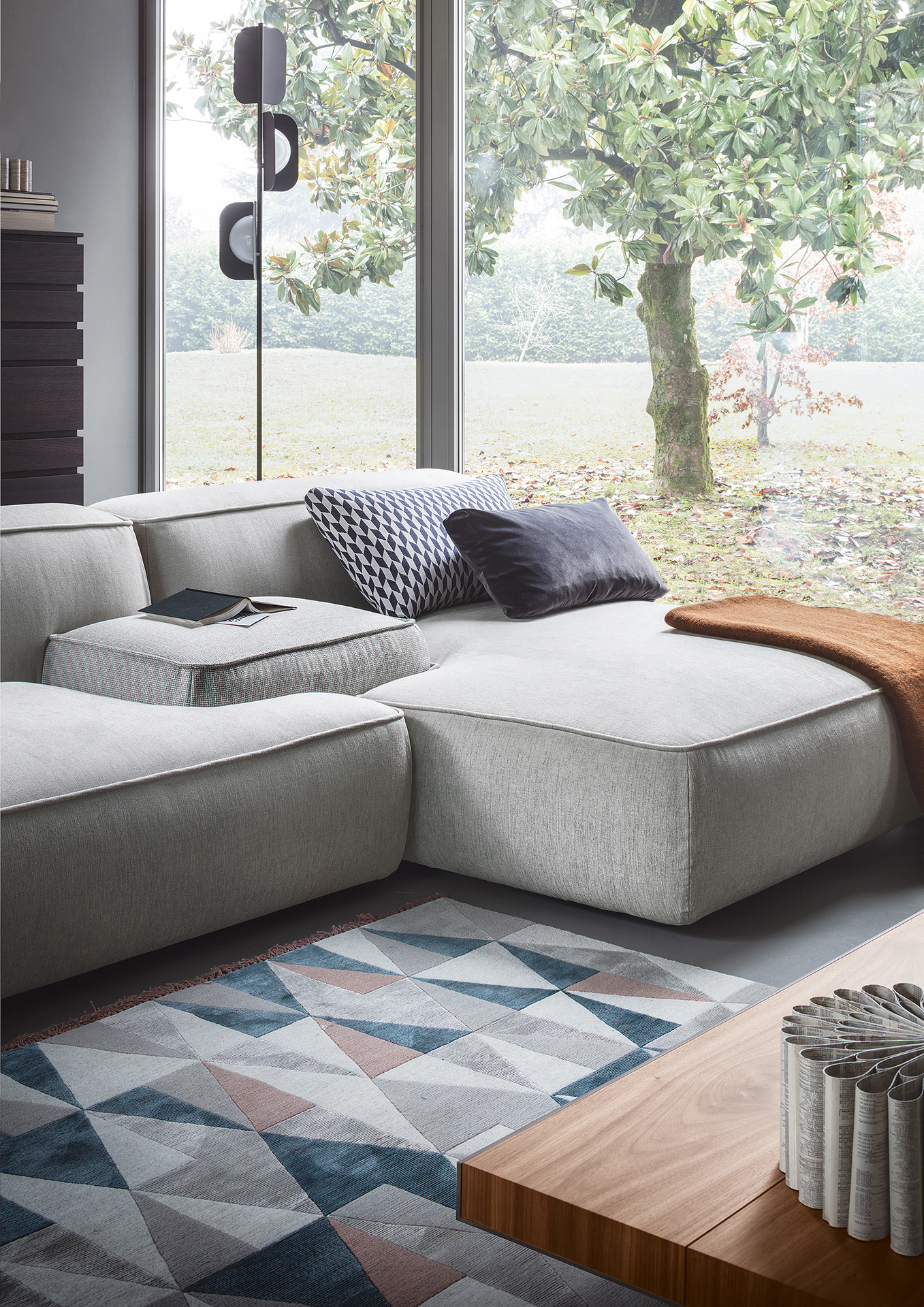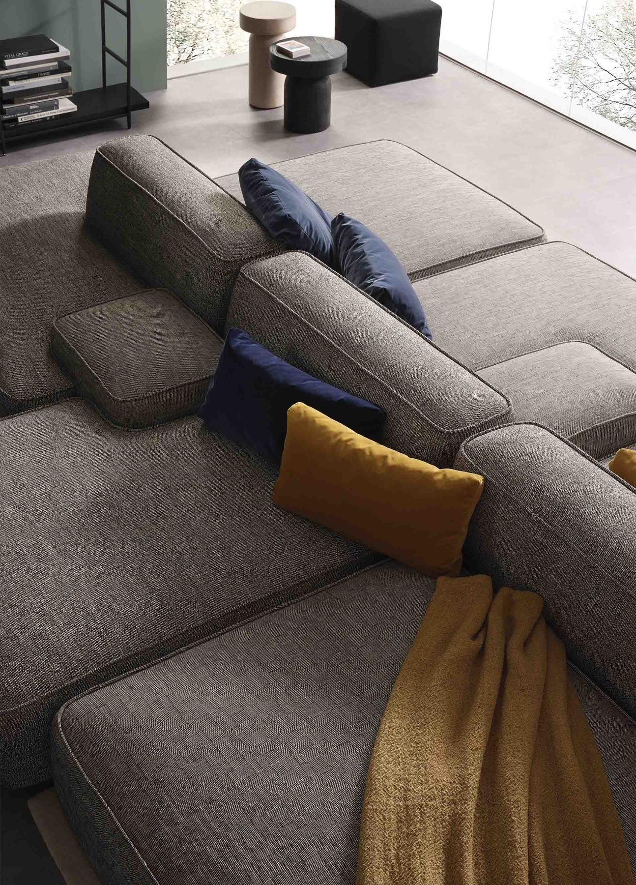 Cloud is a sofa designed as a big unit combining free and organic shapes with matched or opposing modules which offers an original solution for domestic living. Cloud has countless compositions with three different types of arm, different sizes, shapes and heights. Mix colours, in different fabrics and textures to obtain a unique sofa.