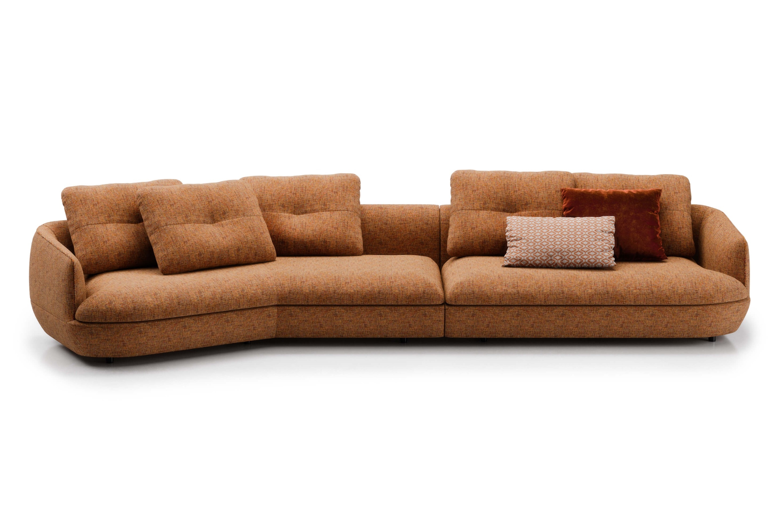 Mirea is a sculptural, modular sofa defined by soft curves, ergonomic comfort, and refined craftsmanship. Its wave-like silhouette rests on a high, tapered base, creating an airy presence. With plush, supportive cushions and customisable upholstery in Lema’s wide fabric and leather range, Mirea blends elegance, comfort, and flexibility for contemporary living spaces.