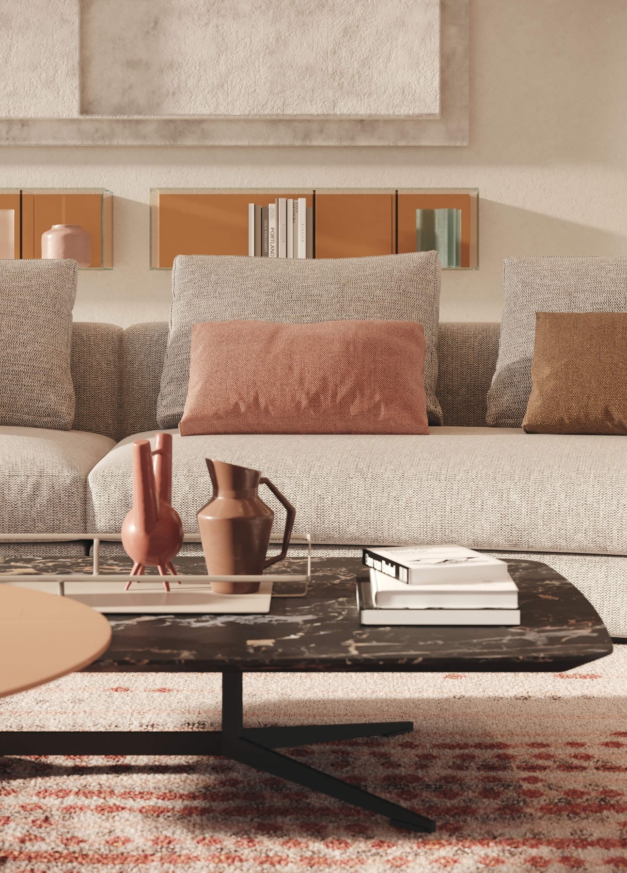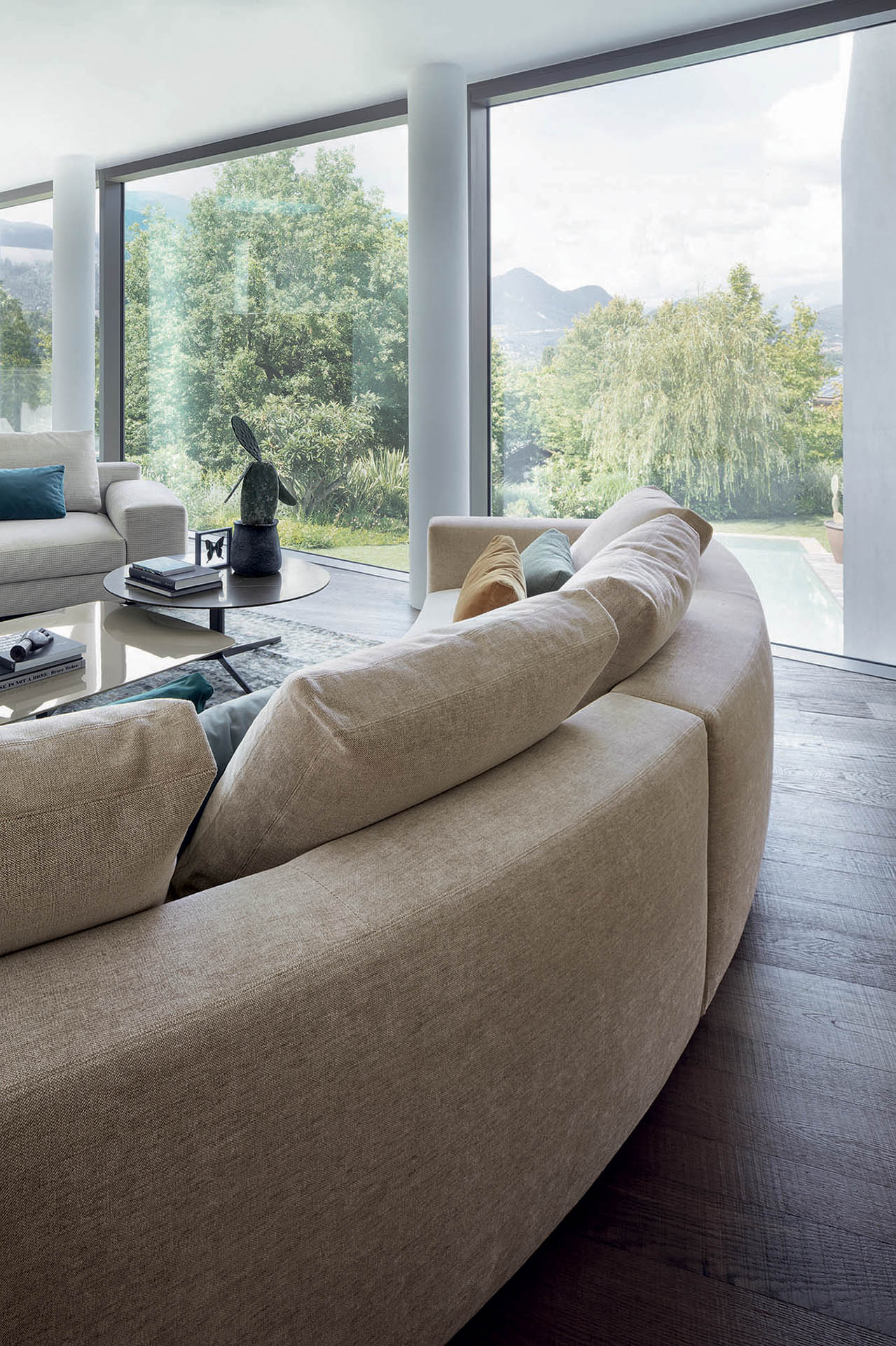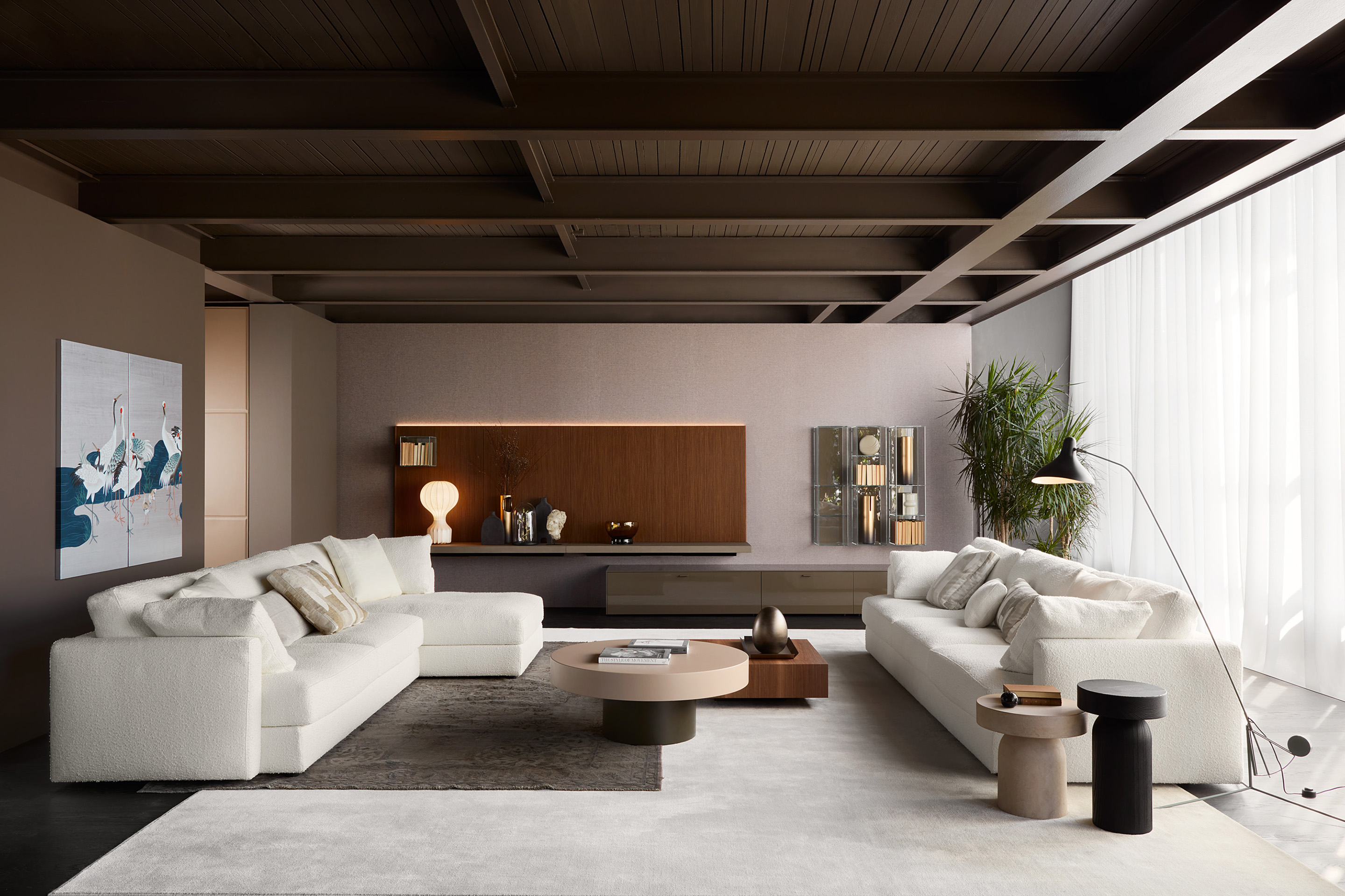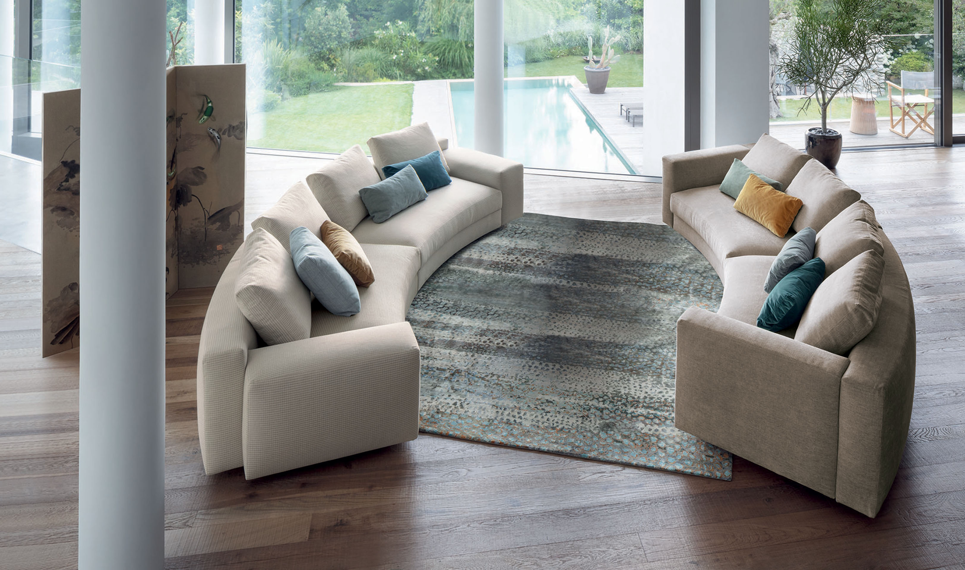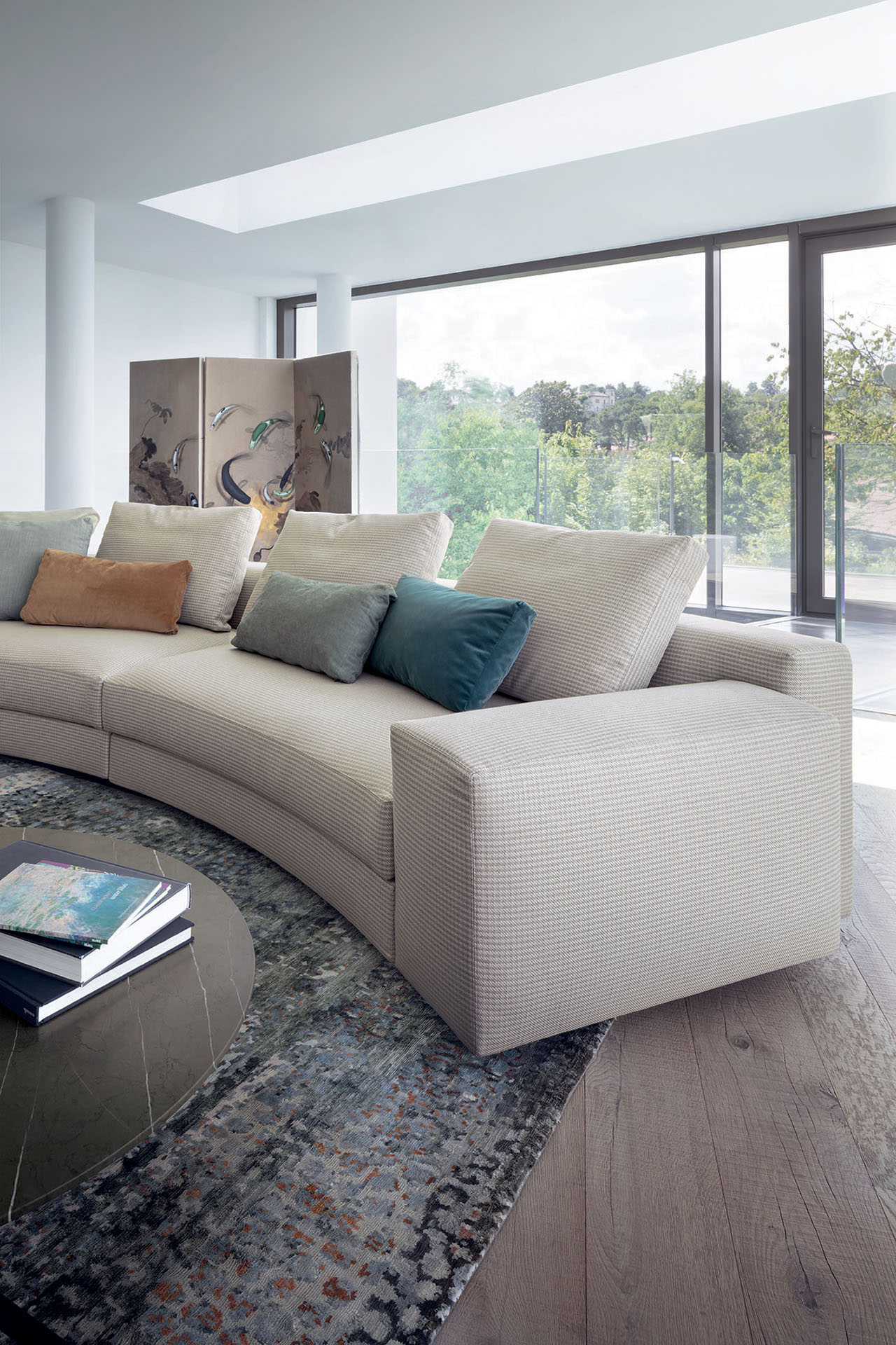 Venise is a versatile seating system designed for both relaxation and social gatherings, emphasizing elegant design and customizable configurations with varied seat depths and armrest types.