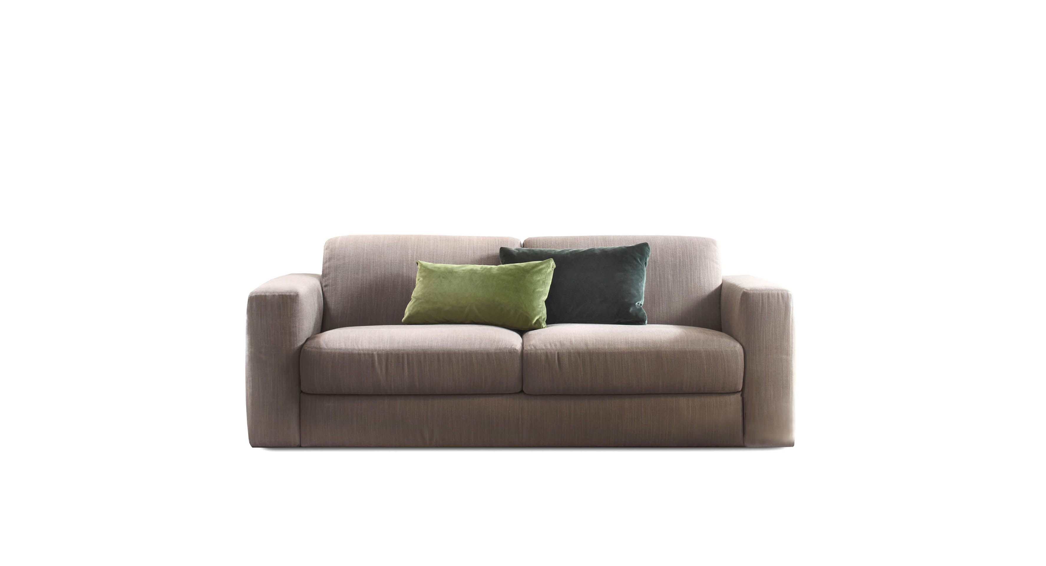 The Yaki sofa bed features a clever mechanism that easily transforms it into a double bed with a slatted base and comfortable mattress—no need to remove bulky cushions. It also includes a handy pocket in the back for storing pillows.