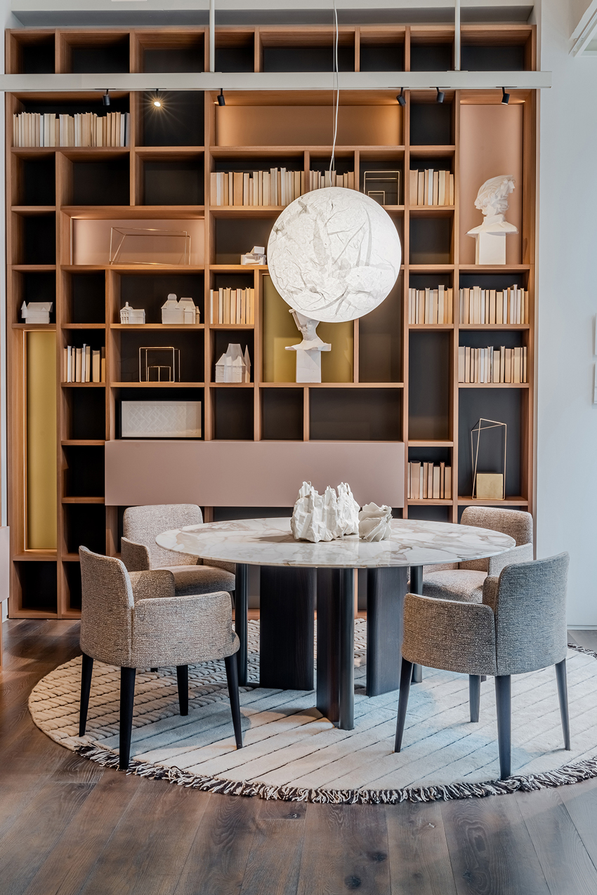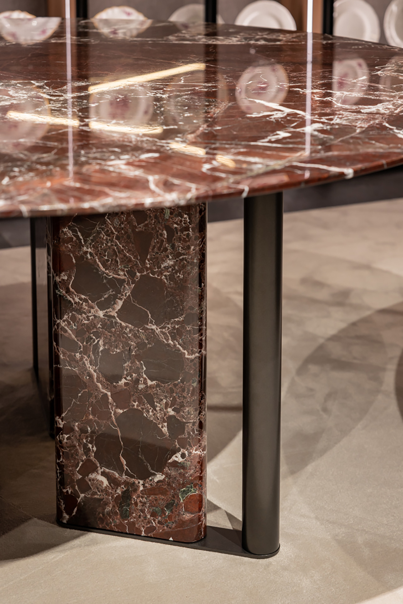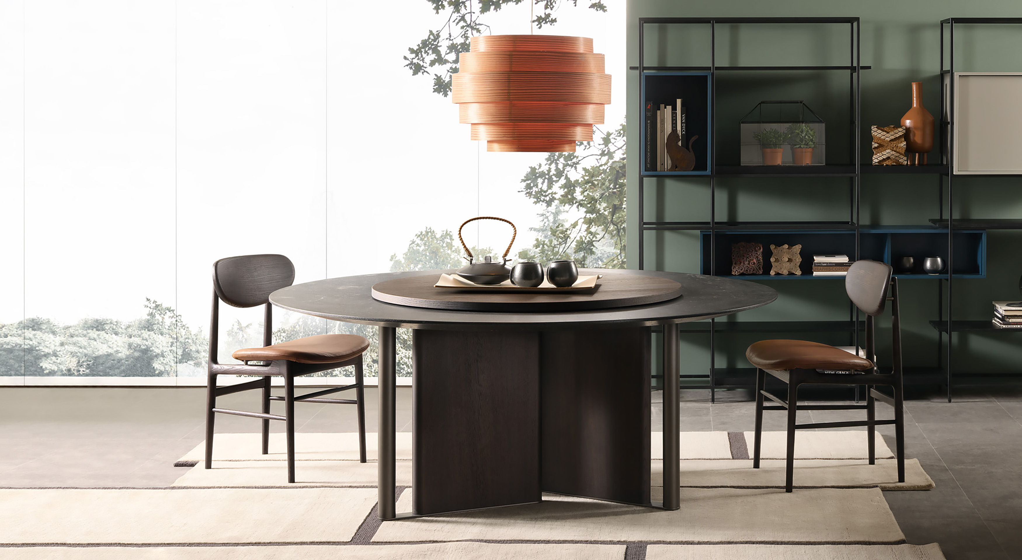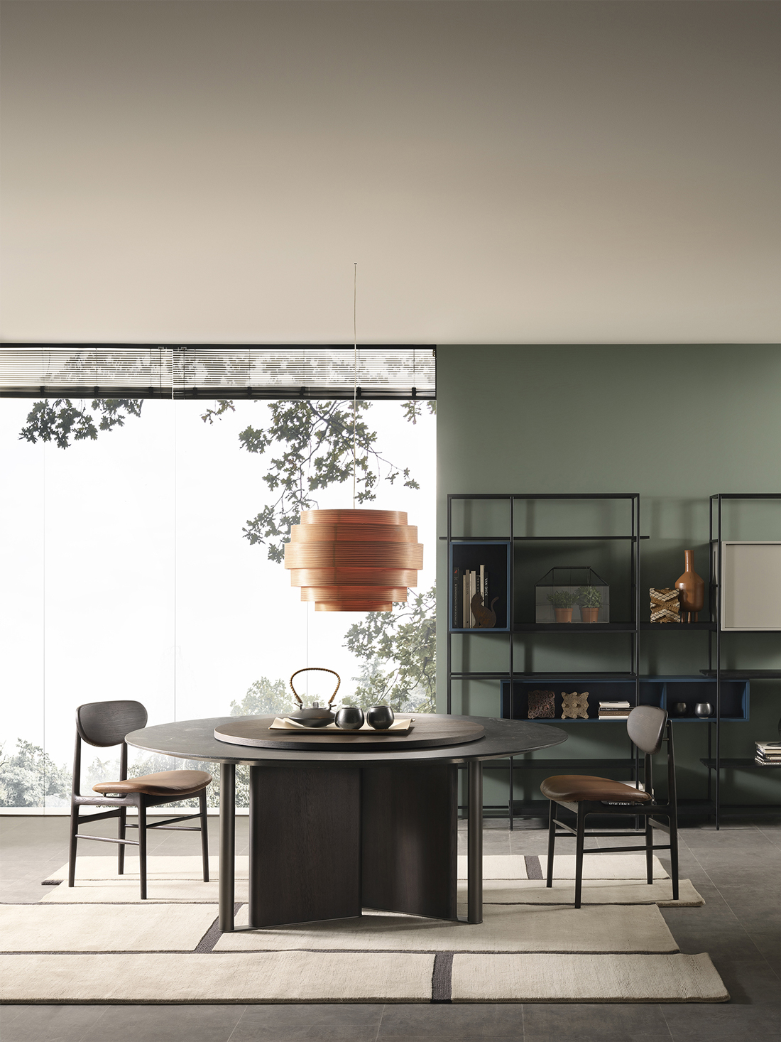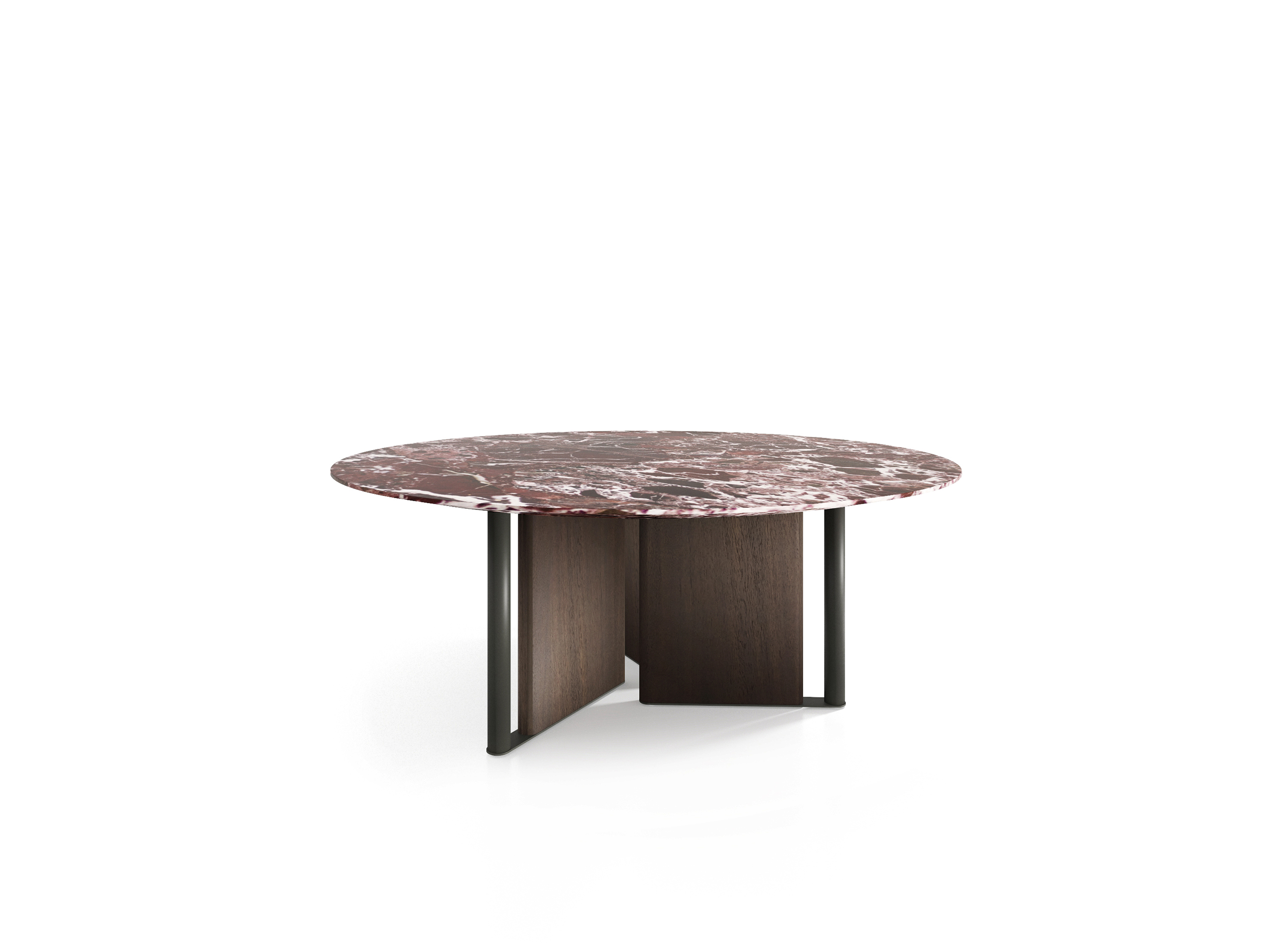 In-Between is a striking table with a base featuring alternating elements that create a sense of space, adding dimensionality and lightness to the living area with its round top.