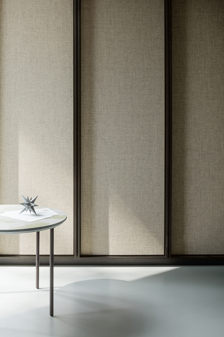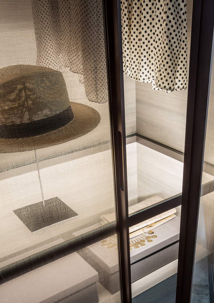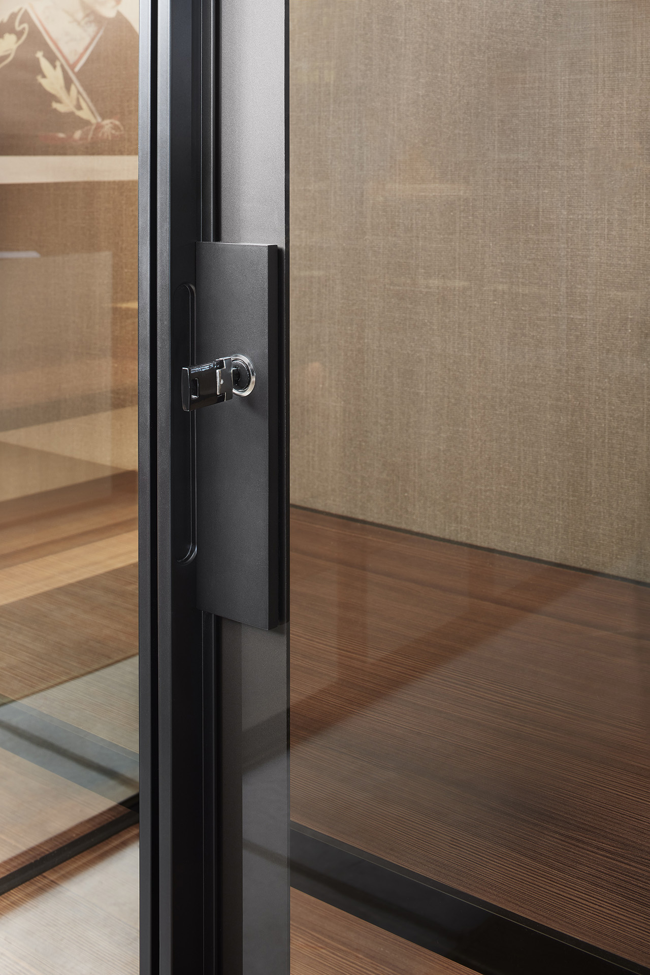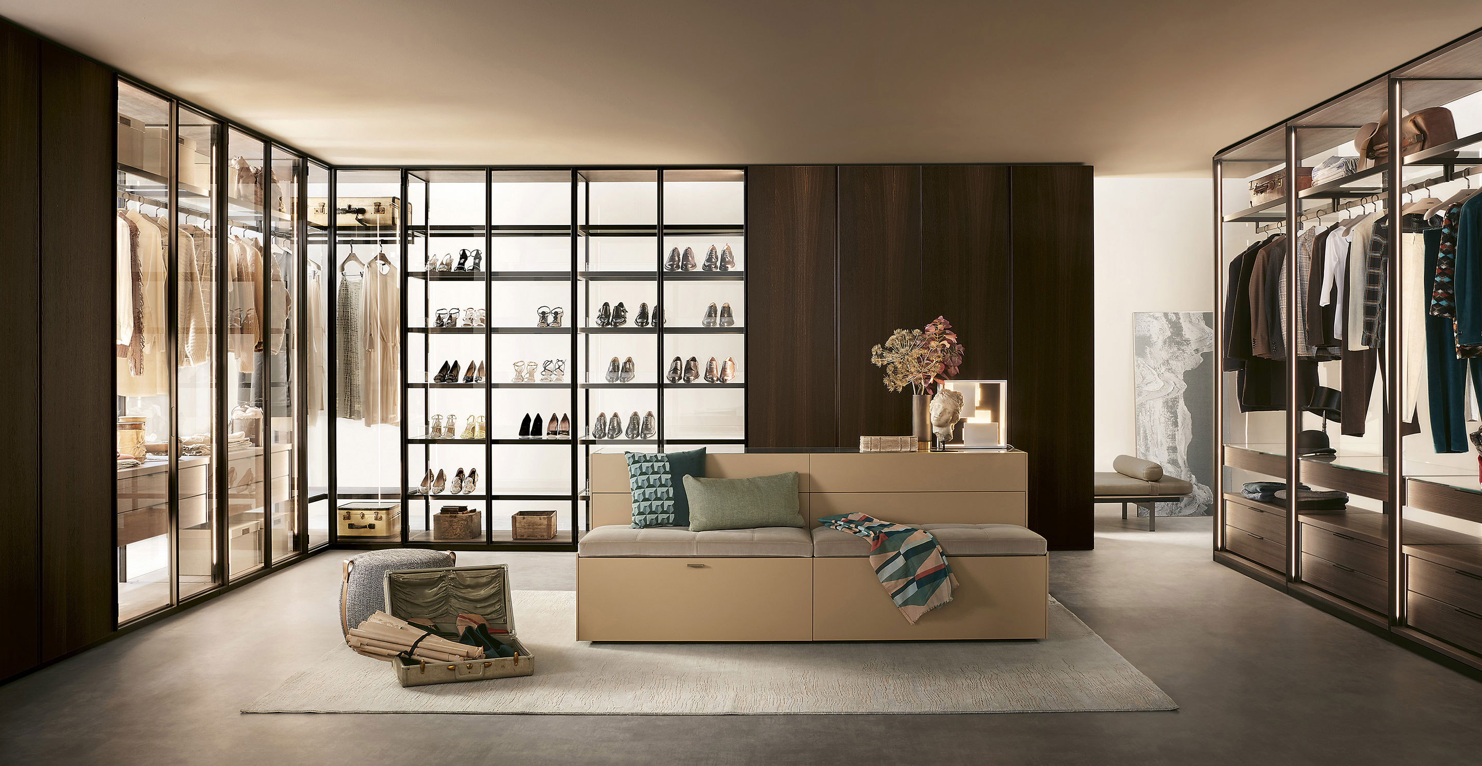 TThe Dandy Armadio al Centimetro by Officinadesign Lema offers versatile modularity and style for home wardrobes. The hinged door version features a metal frame and a wide selection of panels, including transparent, grey smoke, bronzed, and coloured lacquered glass, fabric-serigraphed bronzed glass, mirrors, bronze mirrors, light hide, and decorative fabric-covered panels.