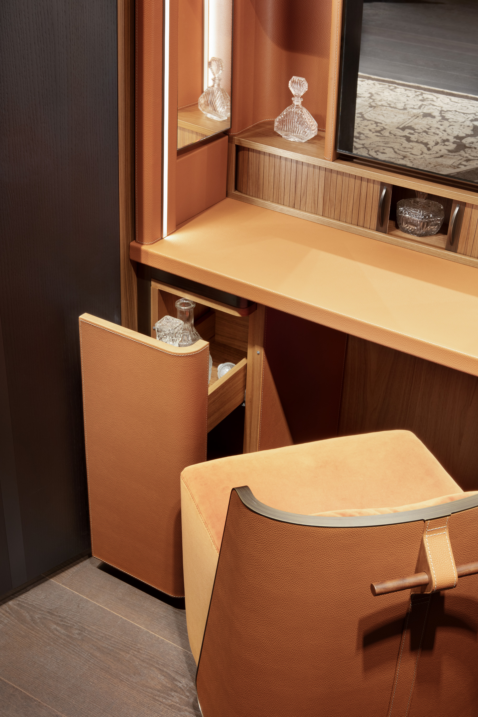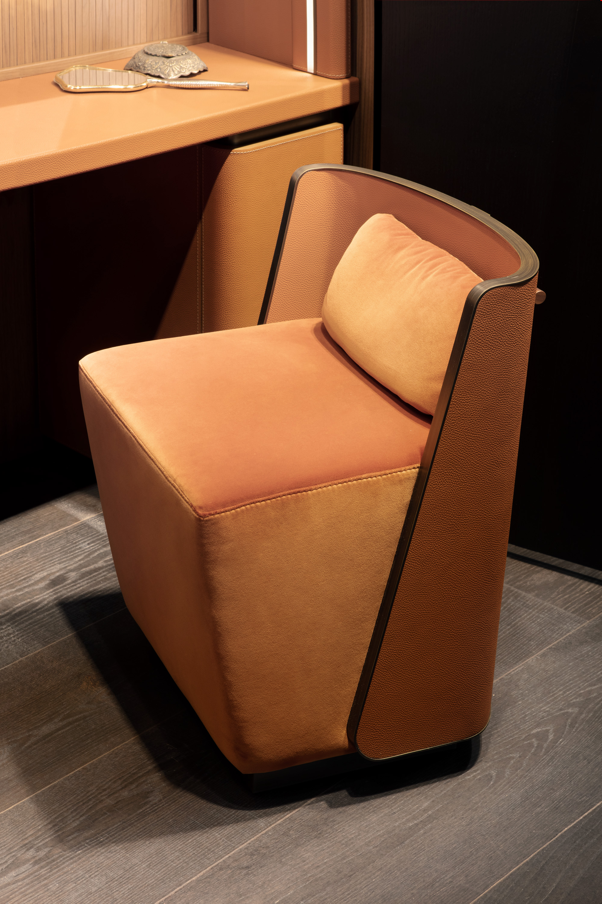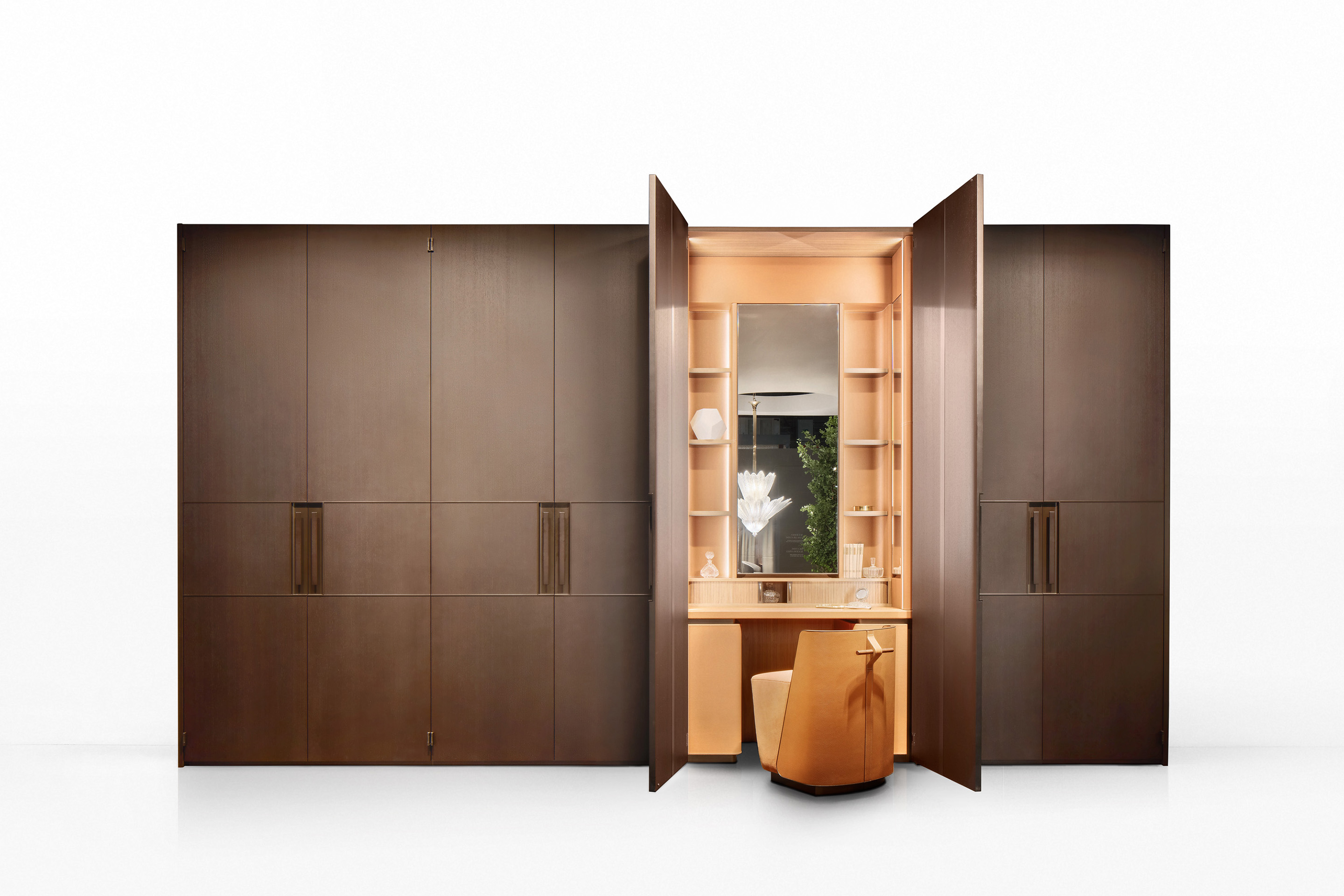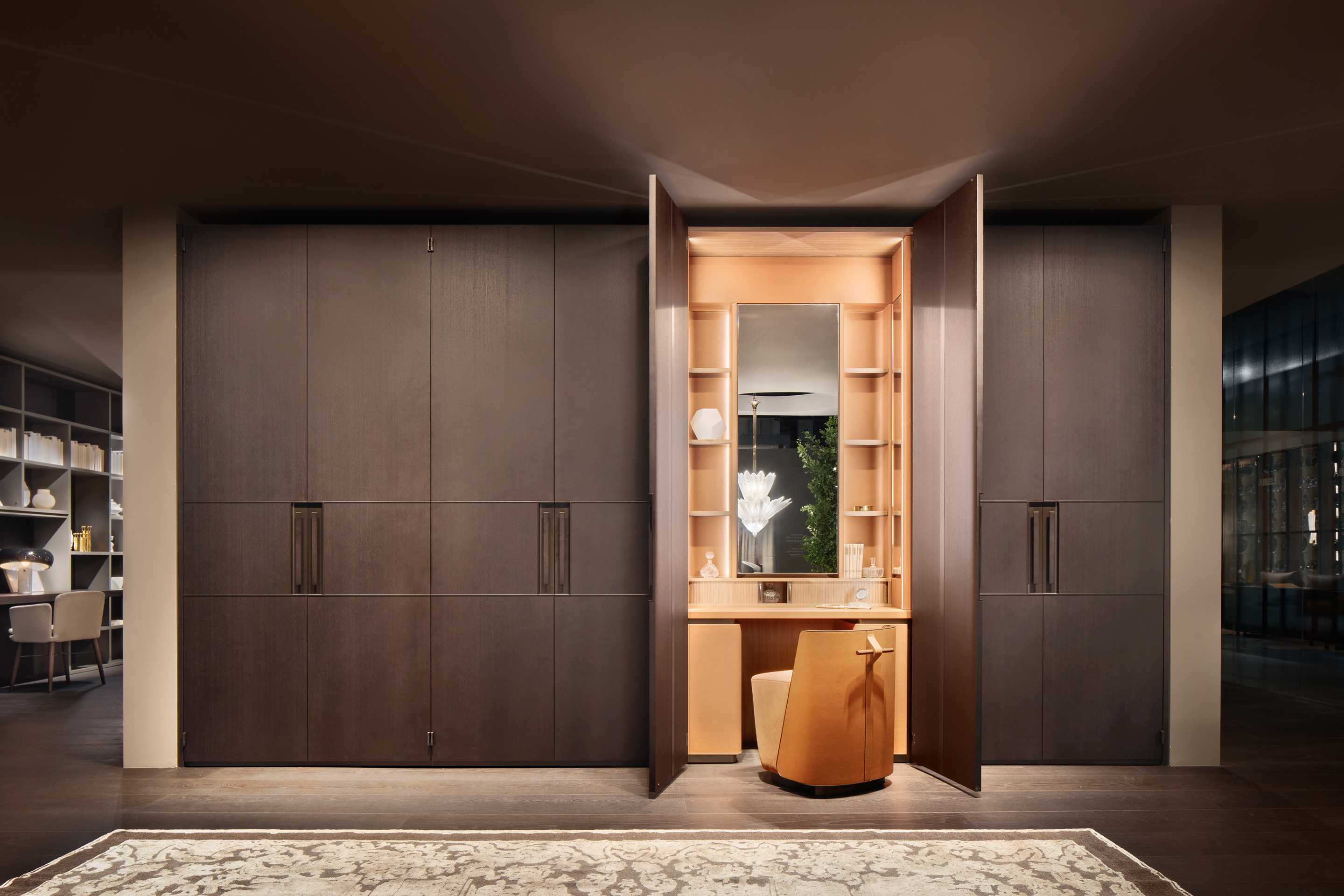 Designed by Steve Leung, Eureka is an elegant, feminine vanity that reinterprets classic charm through a contemporary lens. Seamlessly integrating with the “Armadio al Centimetro” range, it brings refined aesthetics to the sleeping area. Customisable in every detail, Eureka offers a personal, intimate space that blends discreet glamour with sophisticated lifestyle expression.