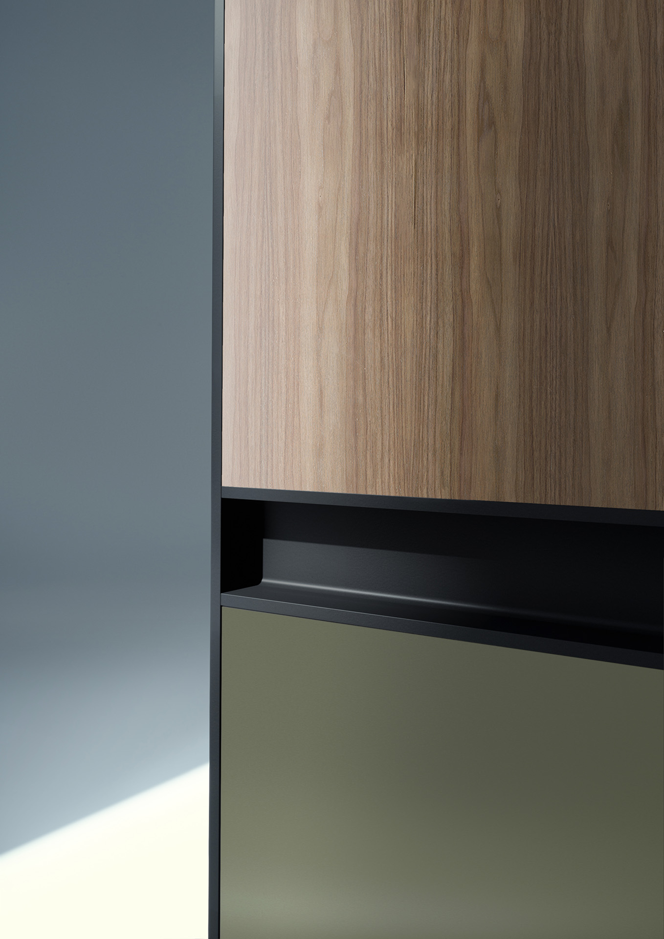 Its handle blends seamlessly into the design, subtly defining each surface. Inside, an array of custom storage solutions and integrated LED lighting bring form and function into perfect harmony.